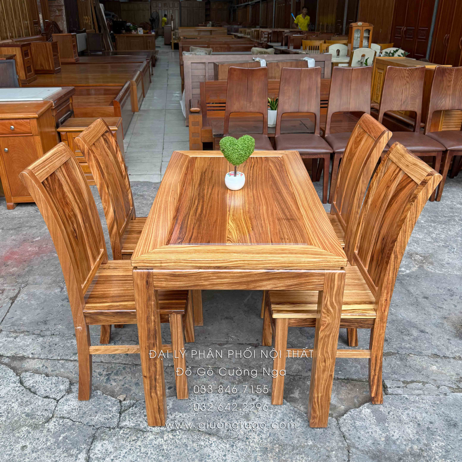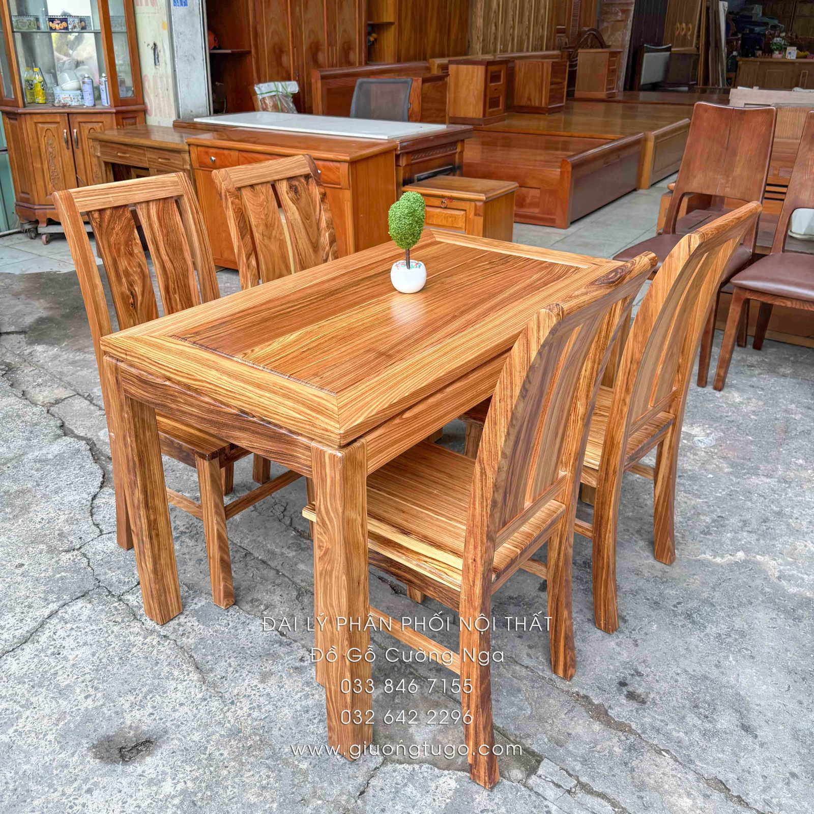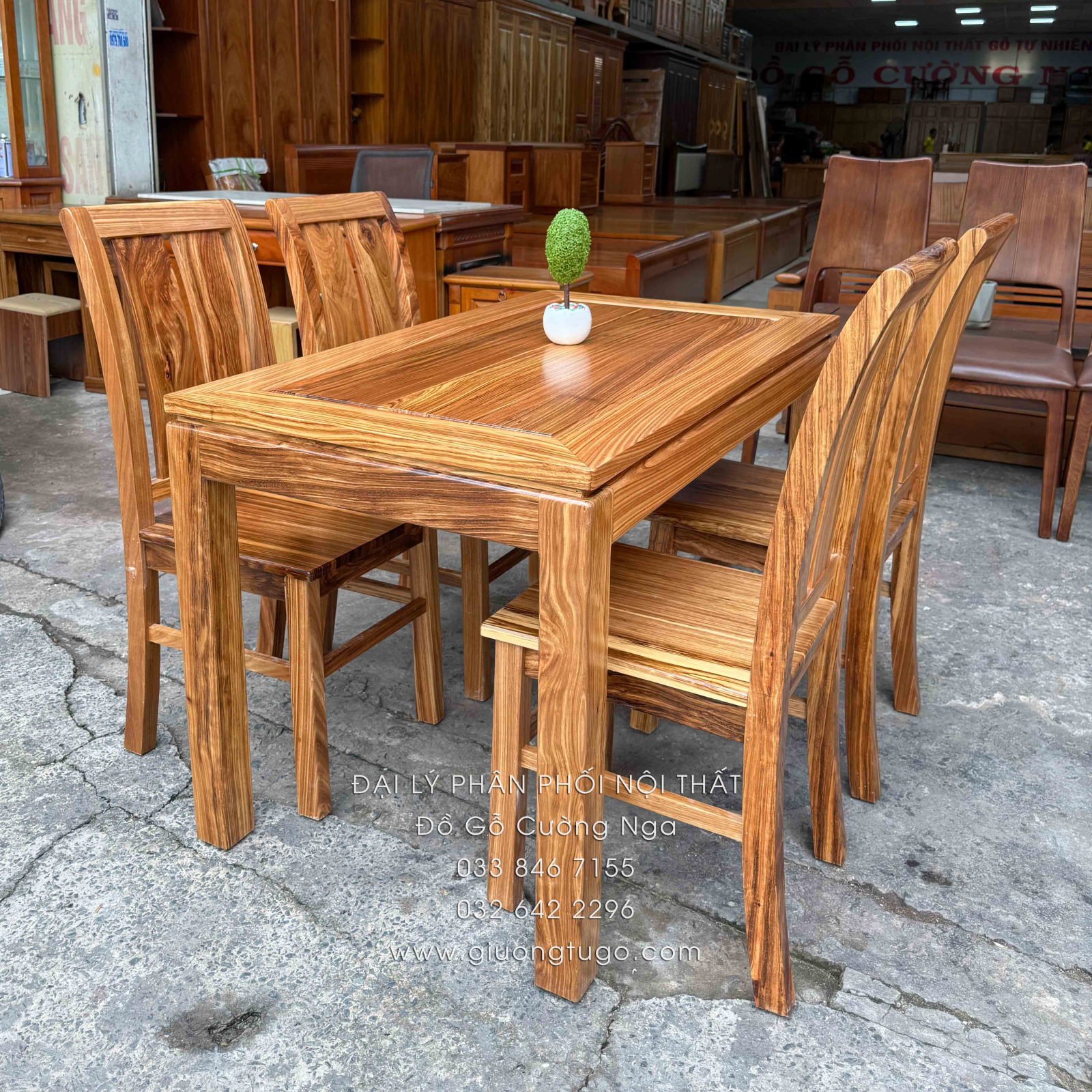 Bàn Ăn Gỗ Hương Xám 4 Ghế Lưng Tựa Cong