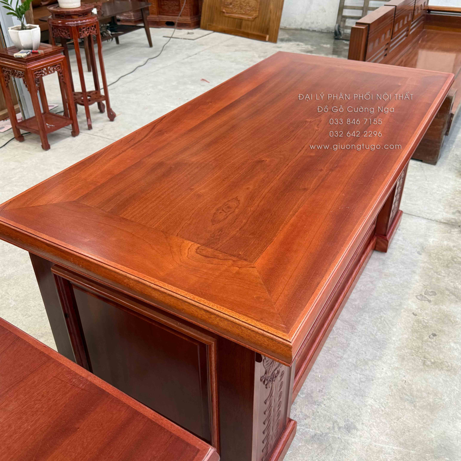 Bàn Làm Việc Giám Đốc Gỗ Xoan Đào 1m67 - Mặt Vuông Chạm