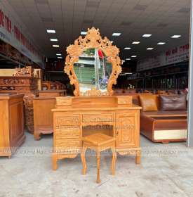 Bàn Phấn Trang Điểm Gỗ Gõ Đỏ Cao Cấp 1m1 Gương Hoa Hồng