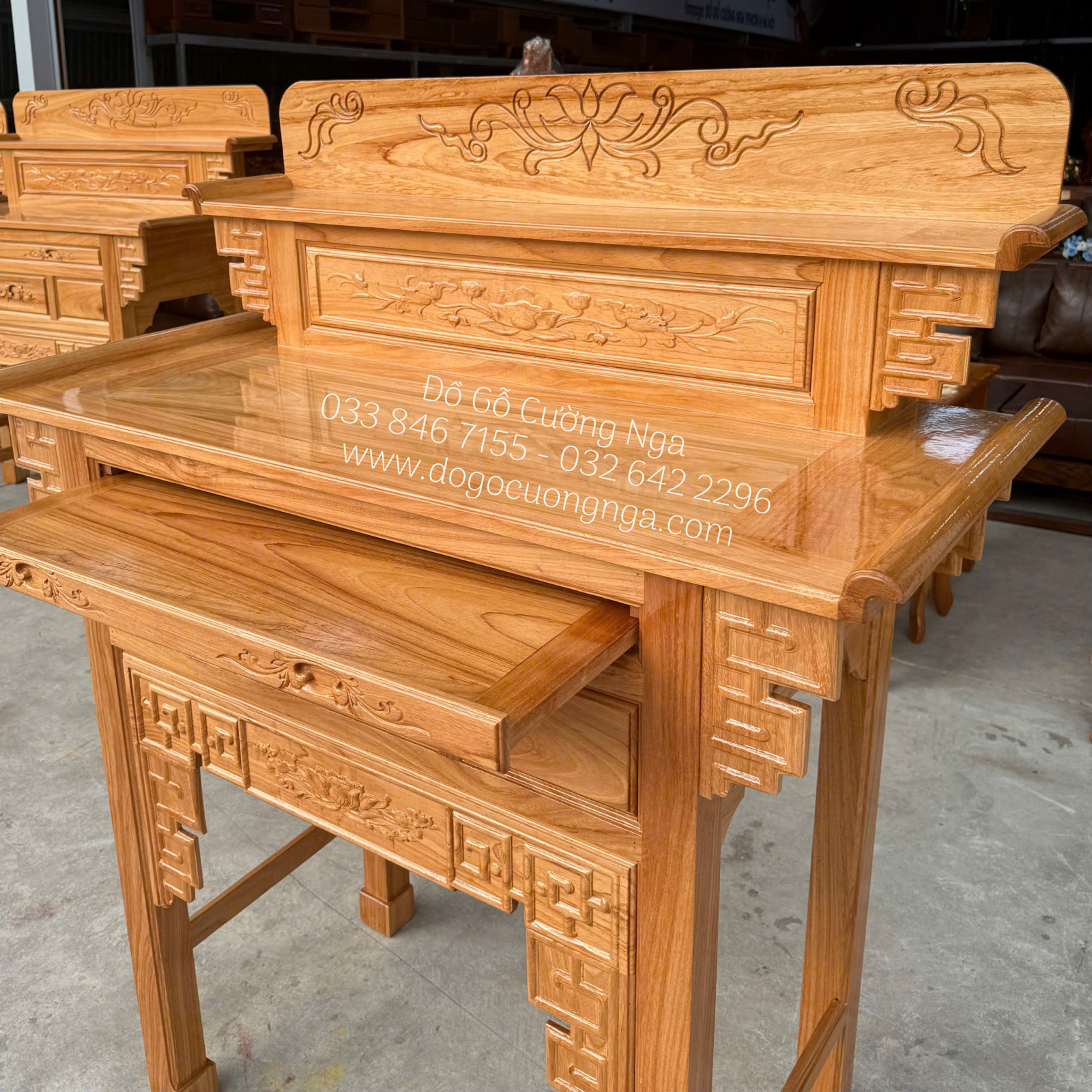 Bàn Thờ 2 Tầng Gỗ Gõ Đỏ 1m27 Chạm Khắc Hoa Văn Cao Cấp