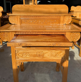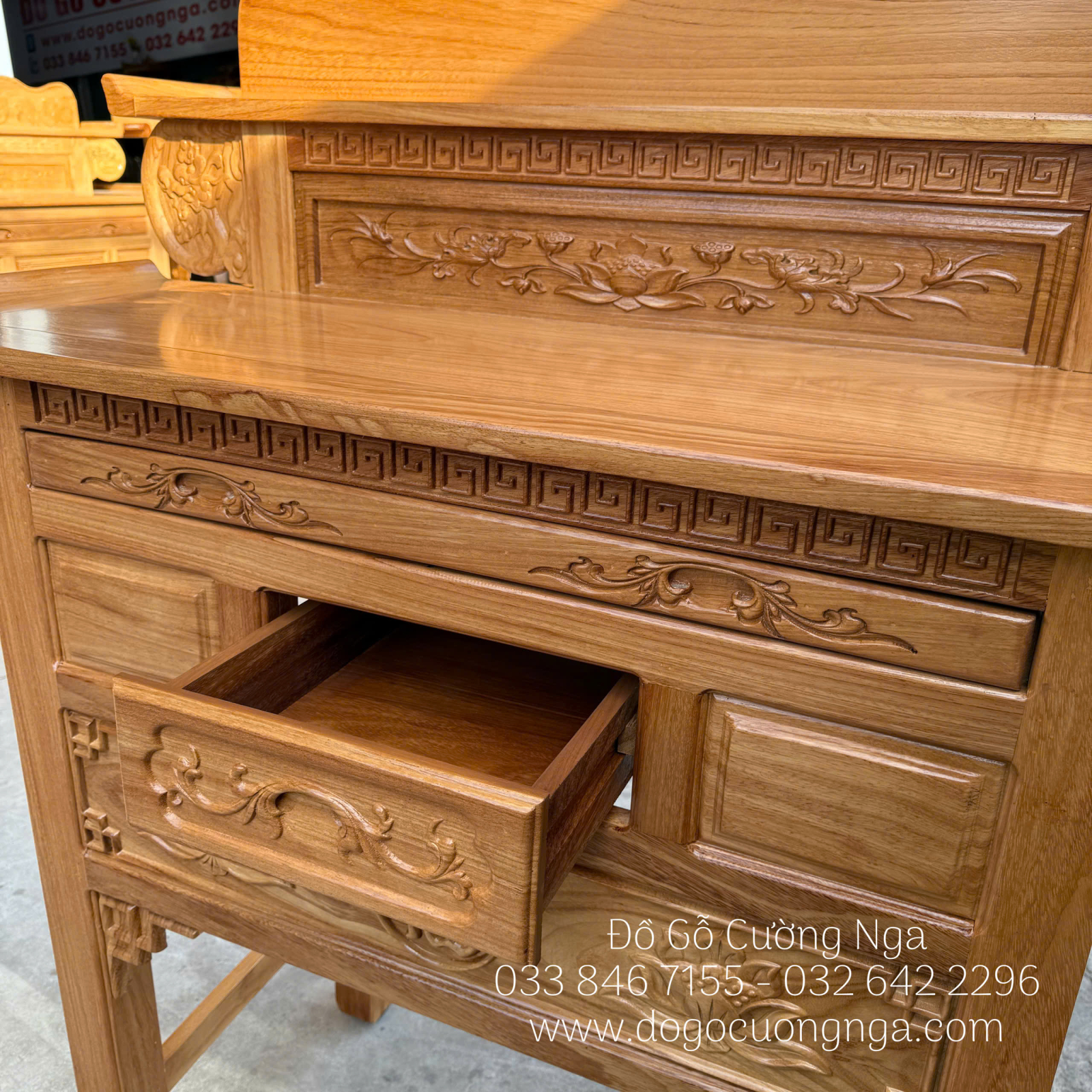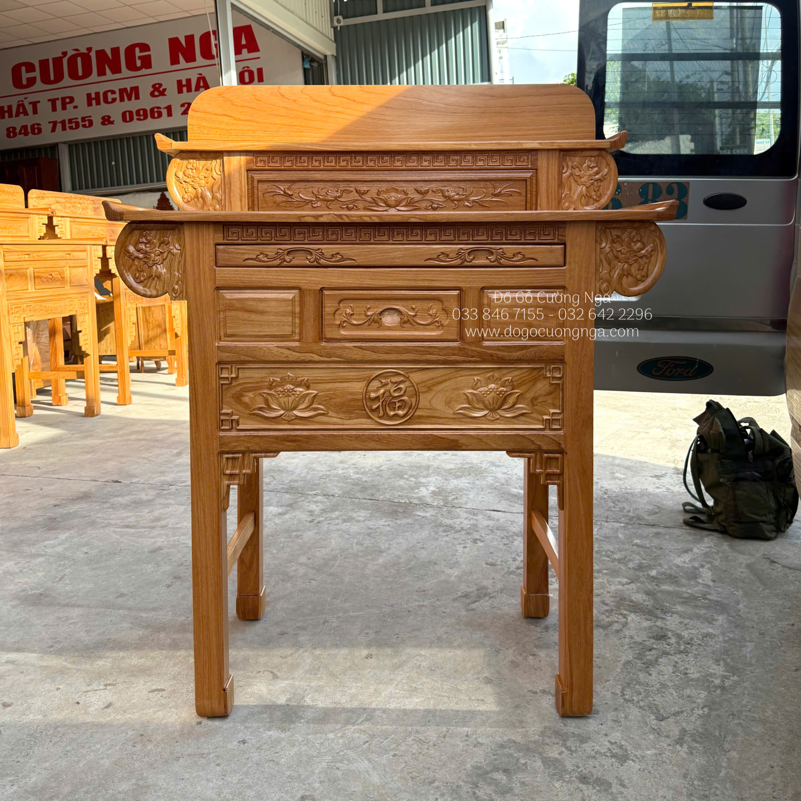 Bàn Thờ 2 Tầng Gỗ Gõ Đỏ 1m27 Chạm Sen - Chữ Phúc