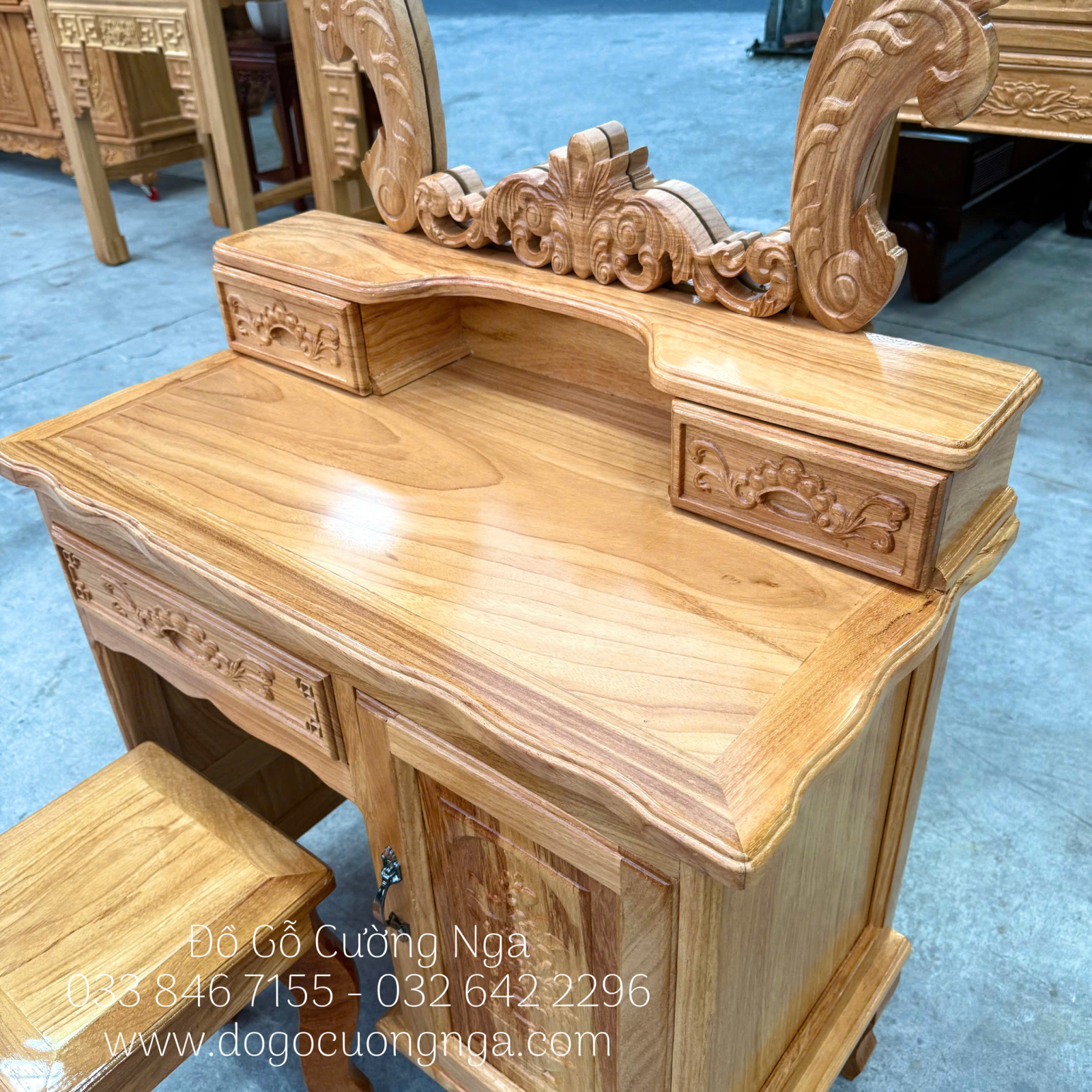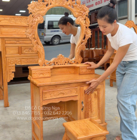Bàn Trang Điểm Gỗ Gõ Đỏ Tân Cổ Điển 80cm