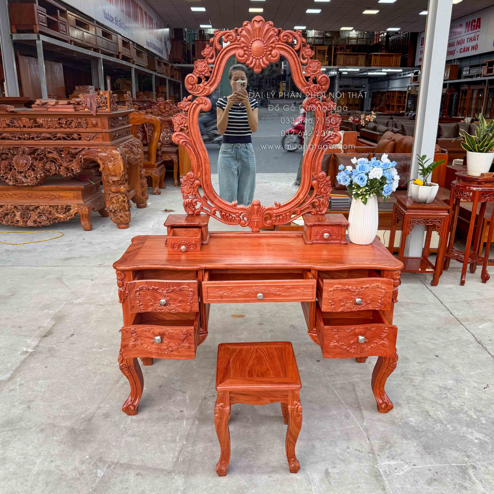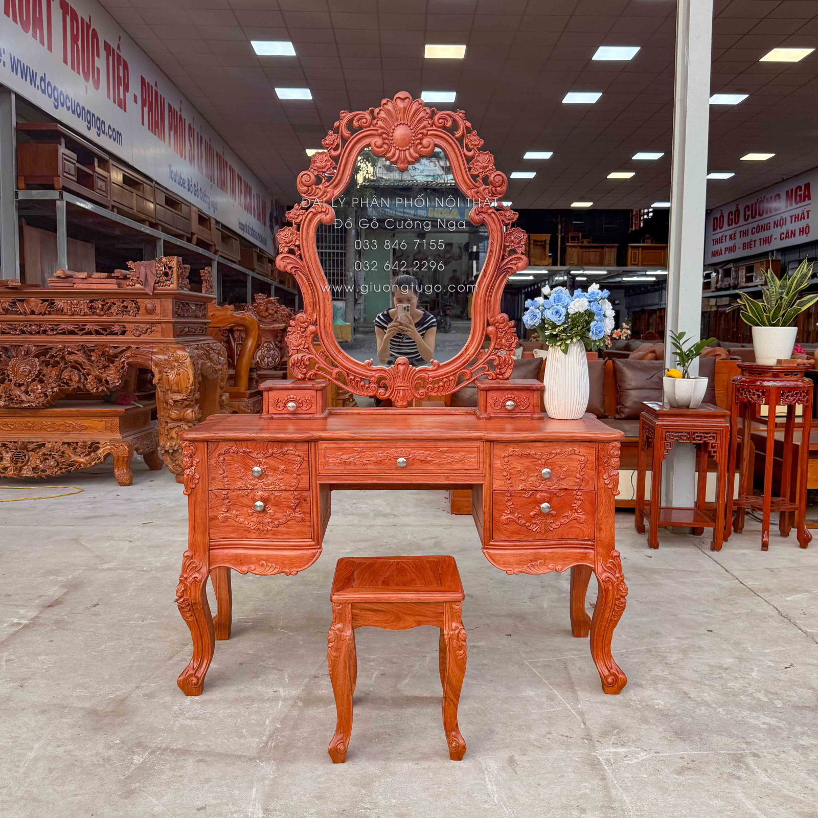 Bàn Trang Điểm Gỗ Hương Đá 1m2 Tân Cổ Điển Sang Trọng