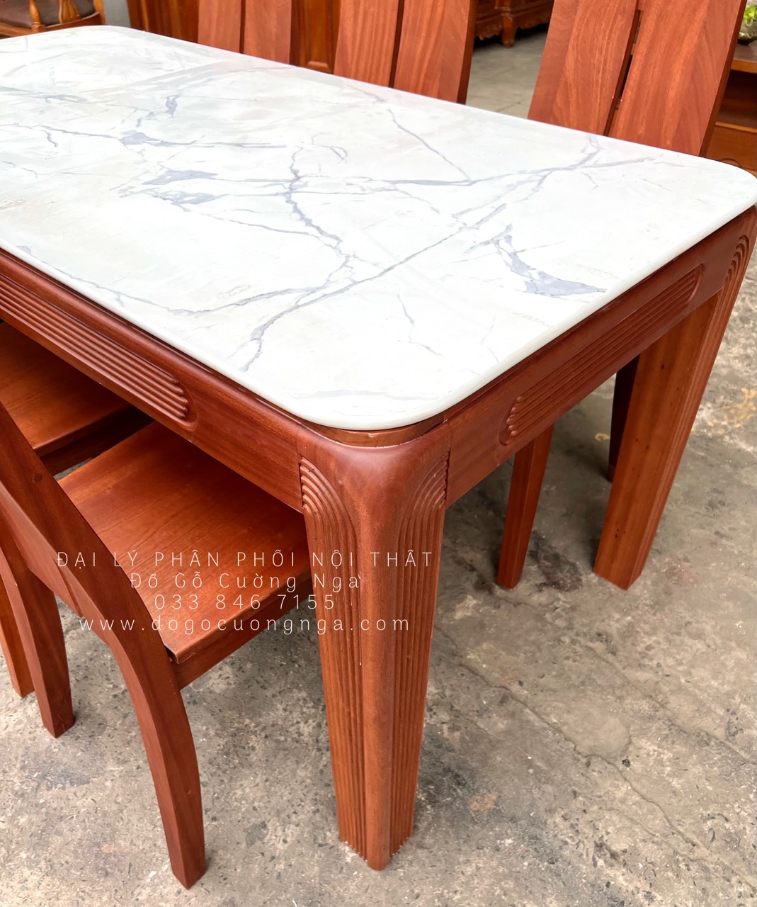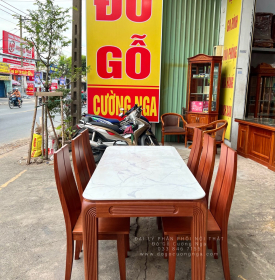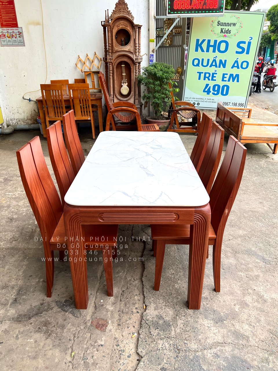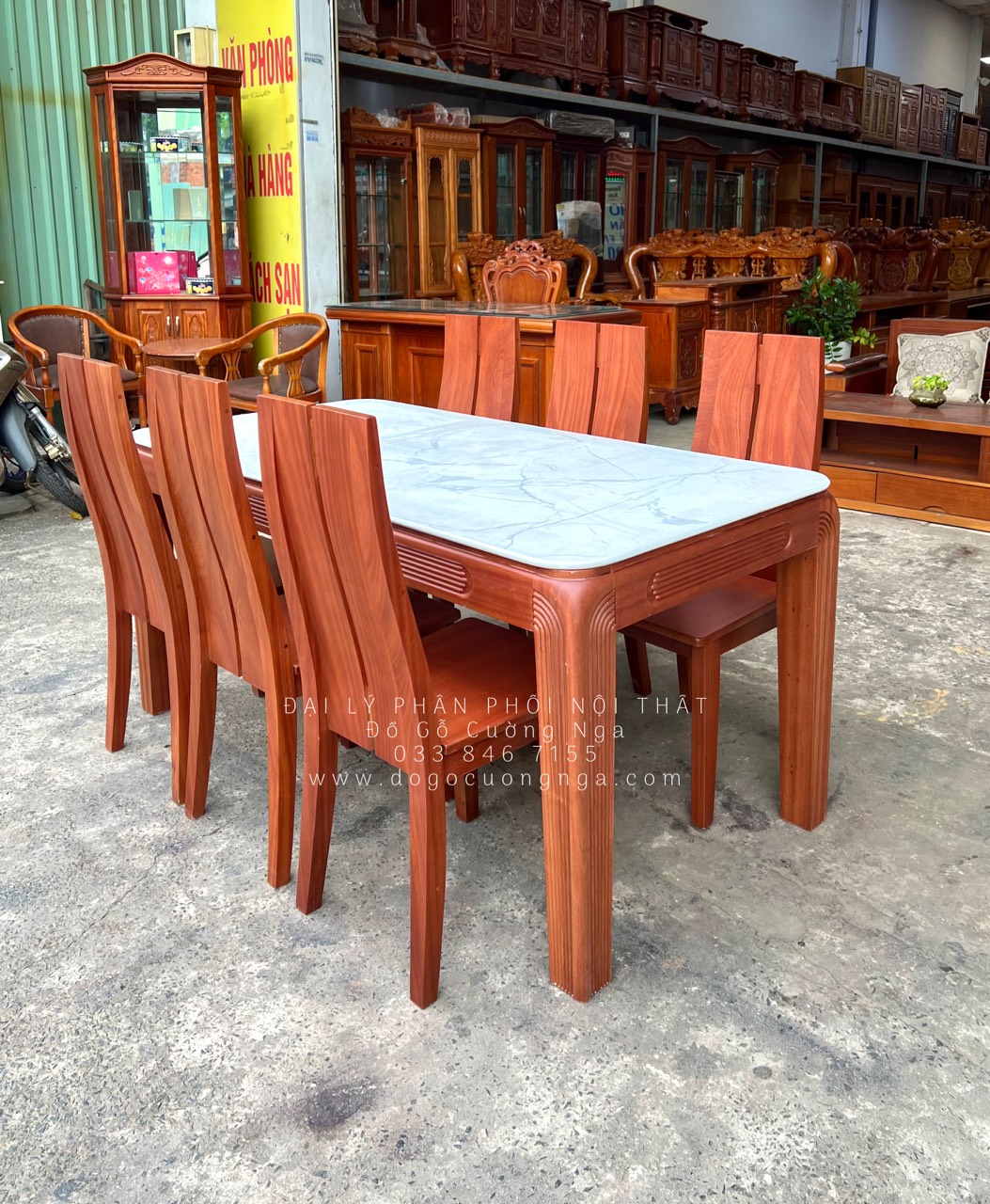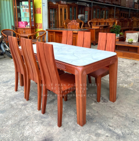 Bộ bàn ăn 6 ghế gỗ xoan đào mặt đá BG 035