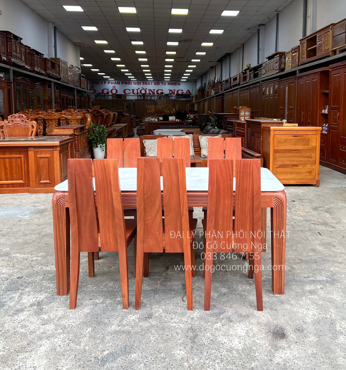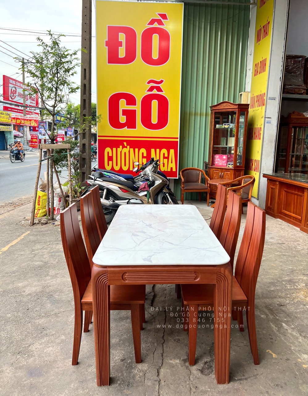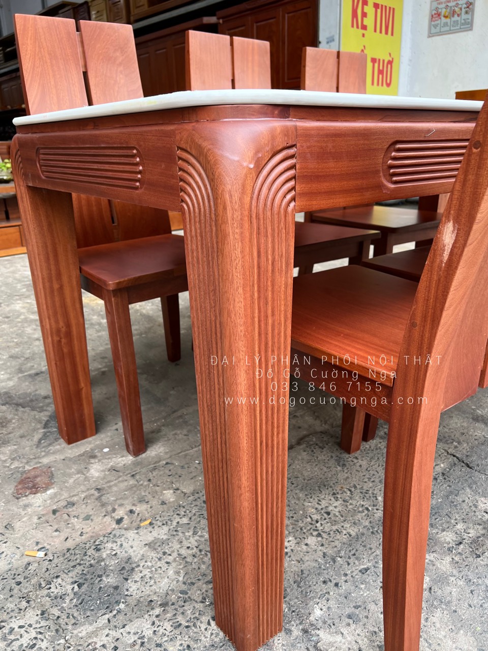 Bộ bàn ăn 6 ghế gỗ xoan đào mặt đá BG 035