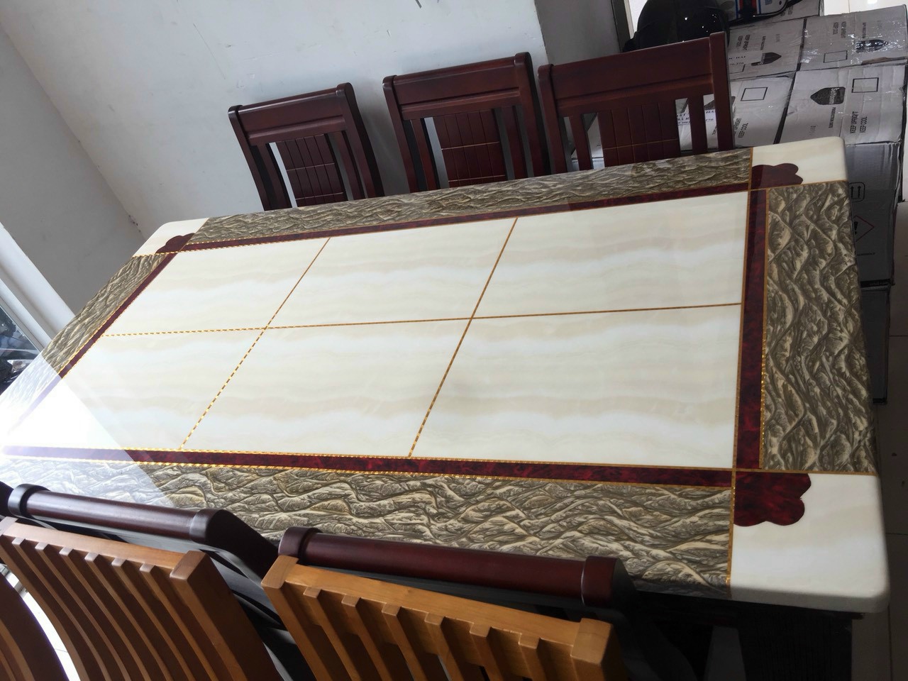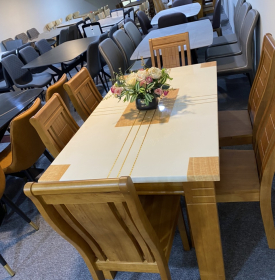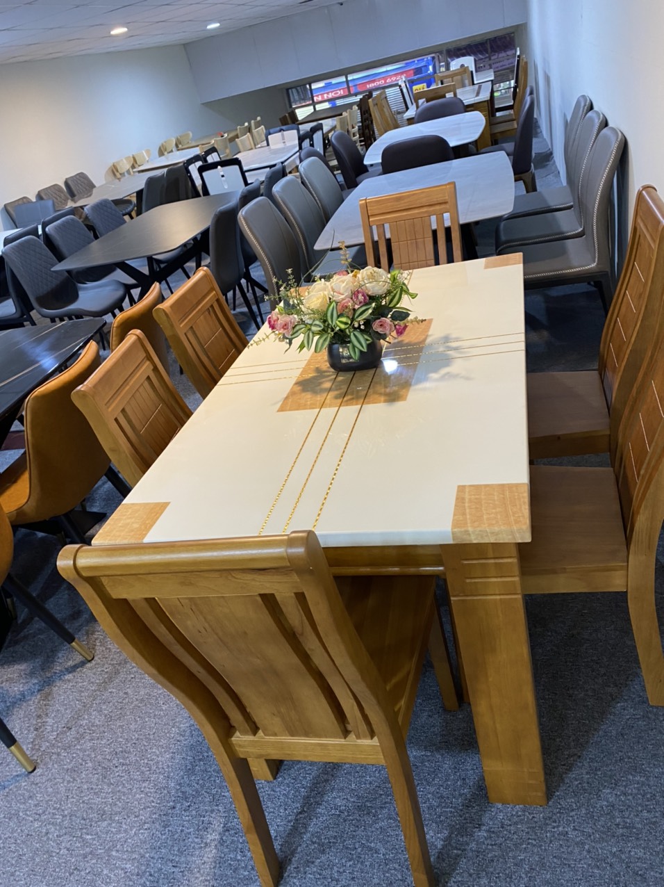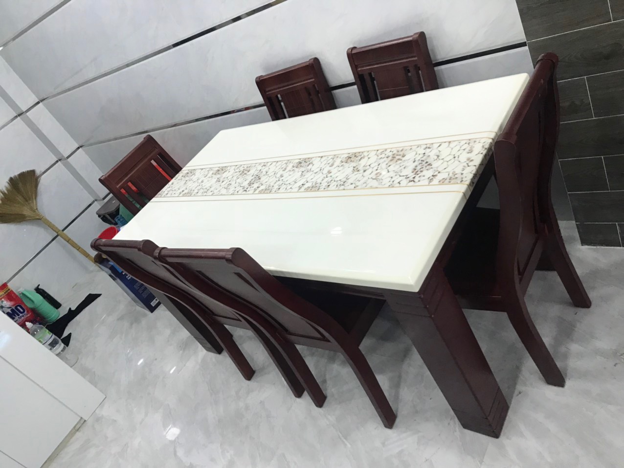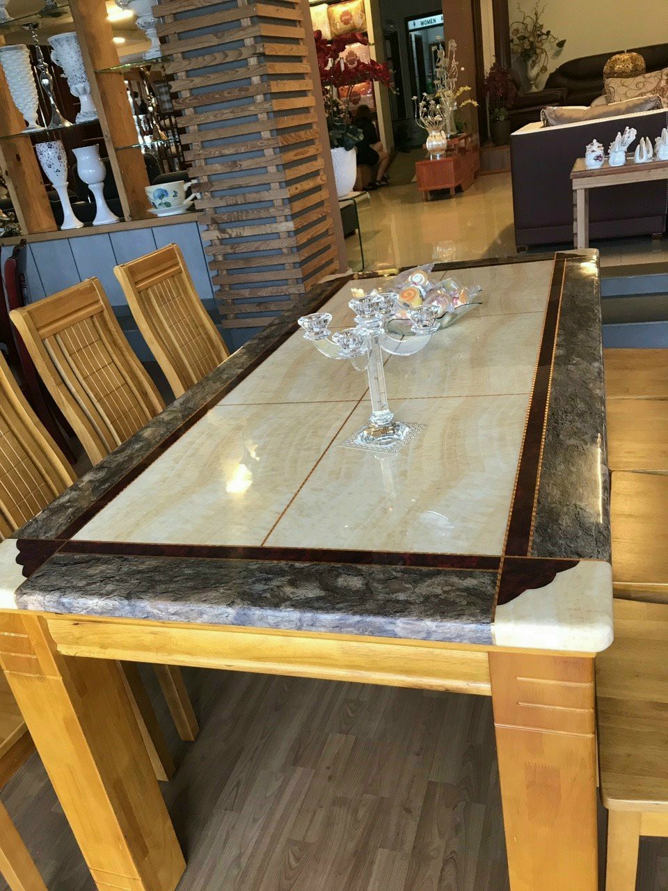 Bộ bàn ăn mặt đá 6 ghế - màu cánh gián đậm