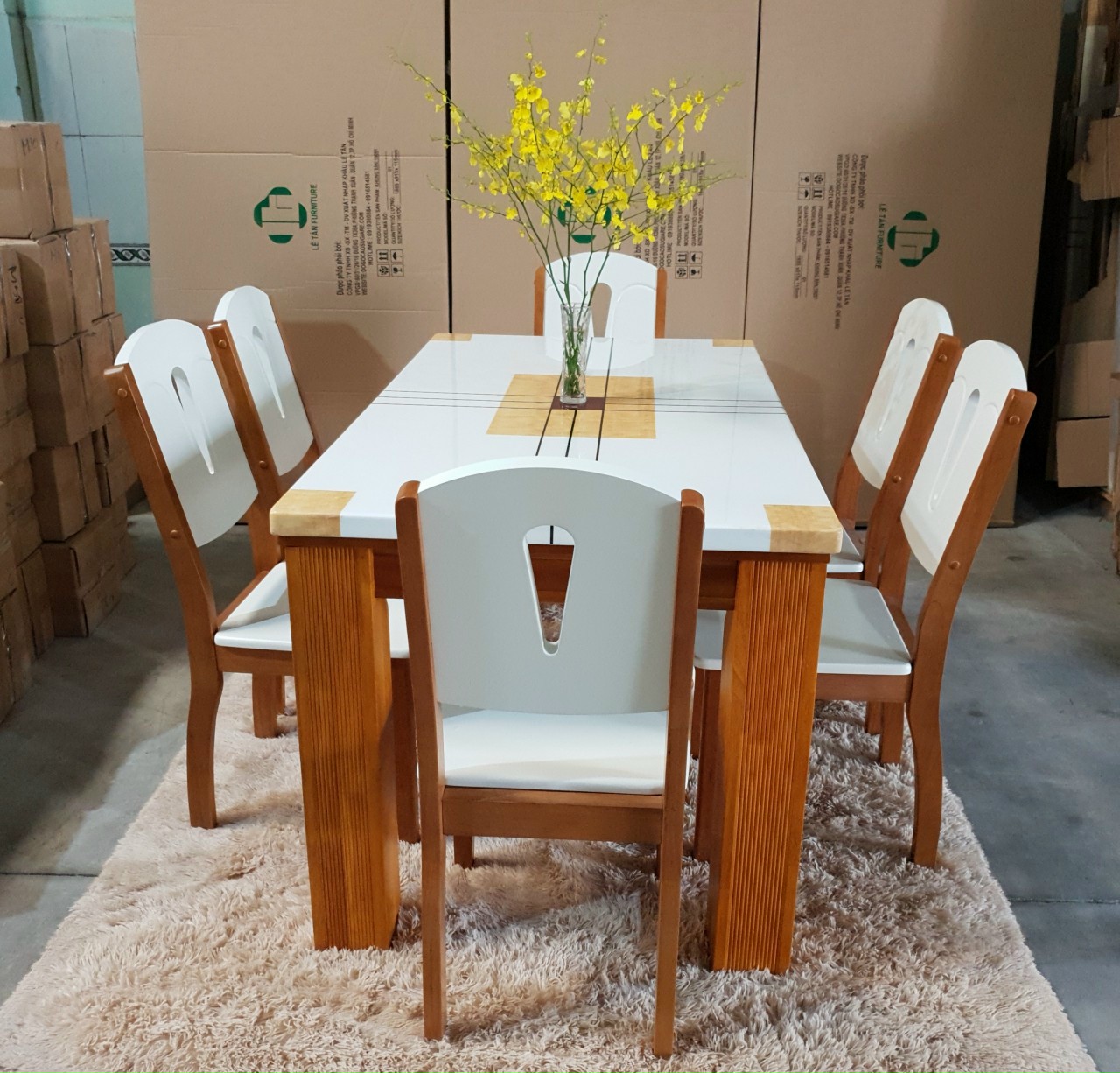 Bộ bàn ăn mặt đá 6 ghế cao cấp