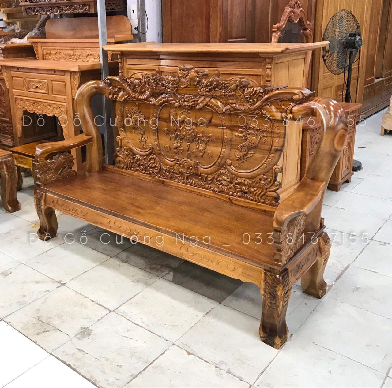 Bộ bàn ghế salon gỗ Tràm tay 12 chạm bát tiên bao gồm 1 ghế băng dài, 2 ghế đơn, 2 ghế đôn . Sản phẩm được lựa chọn từ những khối gỗ dày đặc mặt ghế mặt bàn làm liền tấm và nguyên khối giúp đảm bảo độ chắc chắn của sản phẩm, tạo nên một sản phẩm hoàn hảo, chịu lực tốt.