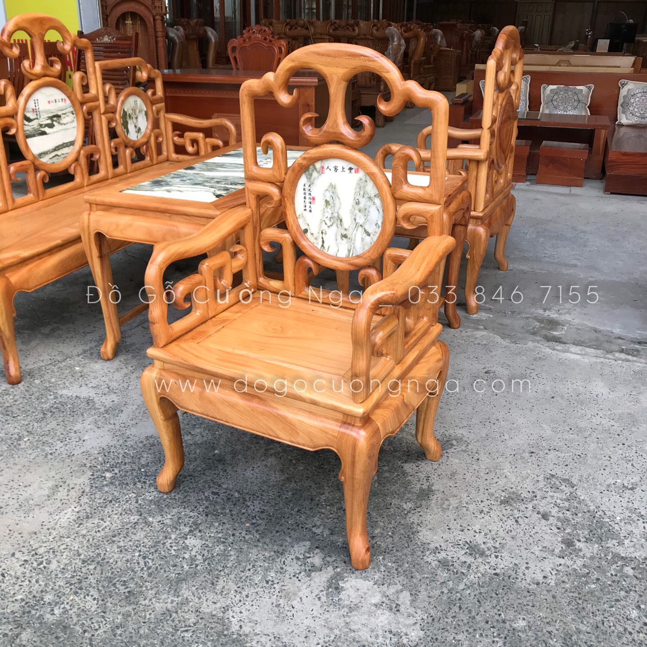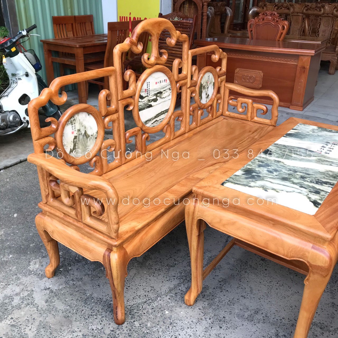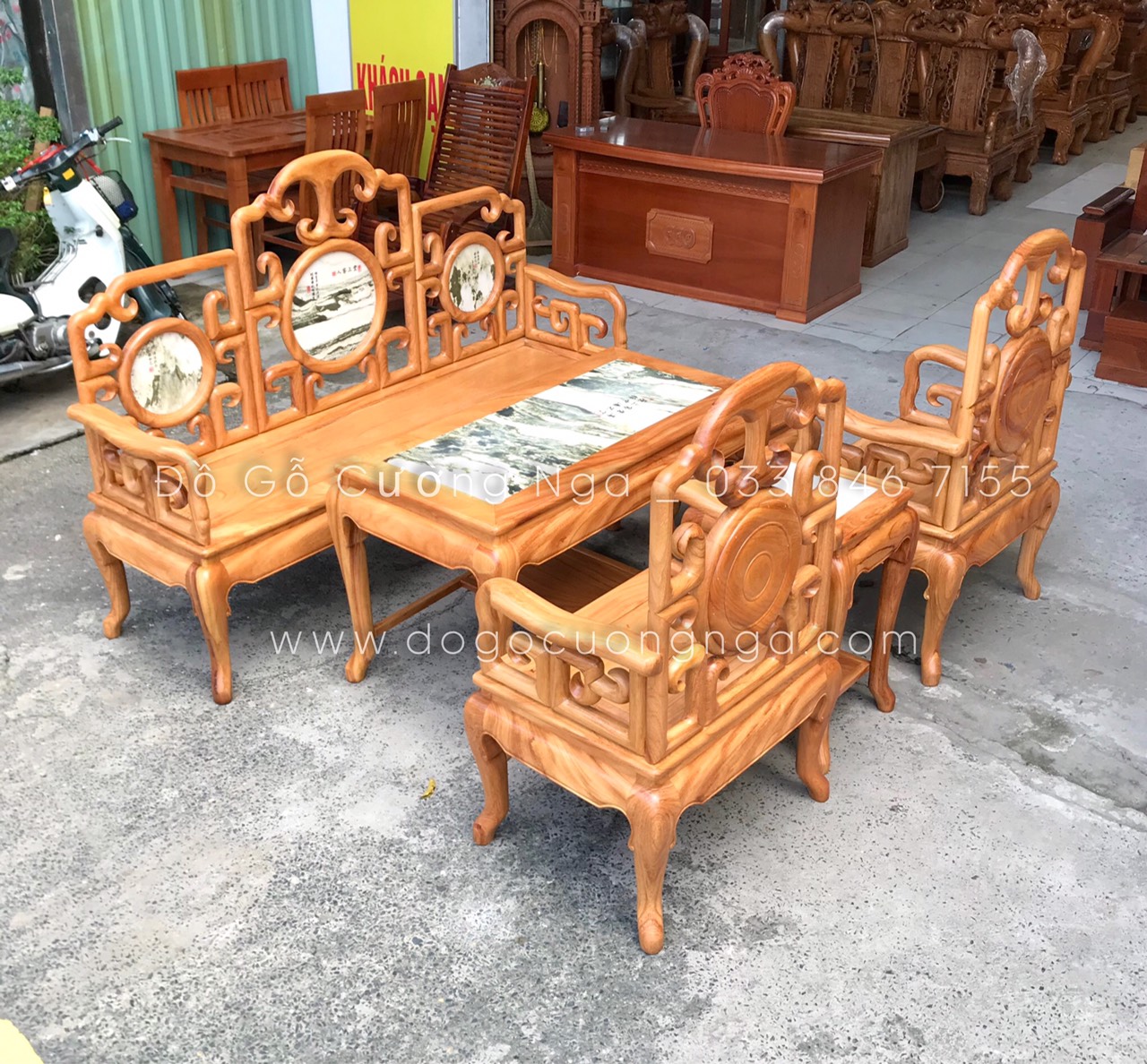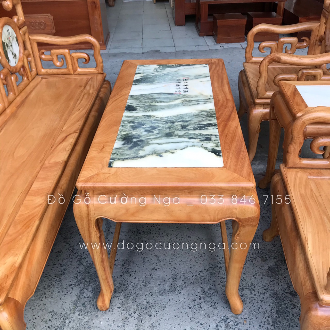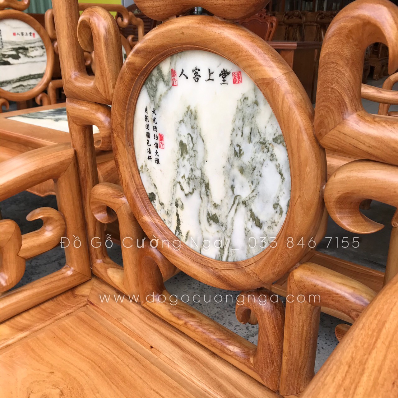 Bộ Salon gỗ Gõ Đỏ móc với sự kết hợp cùng với đá mang hơi thở cổ điển mang đến vẻ đẹp sang trọng và cũng không kém phần quý phái , sang trọng đã tạo nên một sự hoàn hảo và chịu lực vô cùng tốt . Bộ bàn ghế với thiết kế đơn giản , nhẹ nhàng nhưng cũng không kém phần công phu và tinh tế .