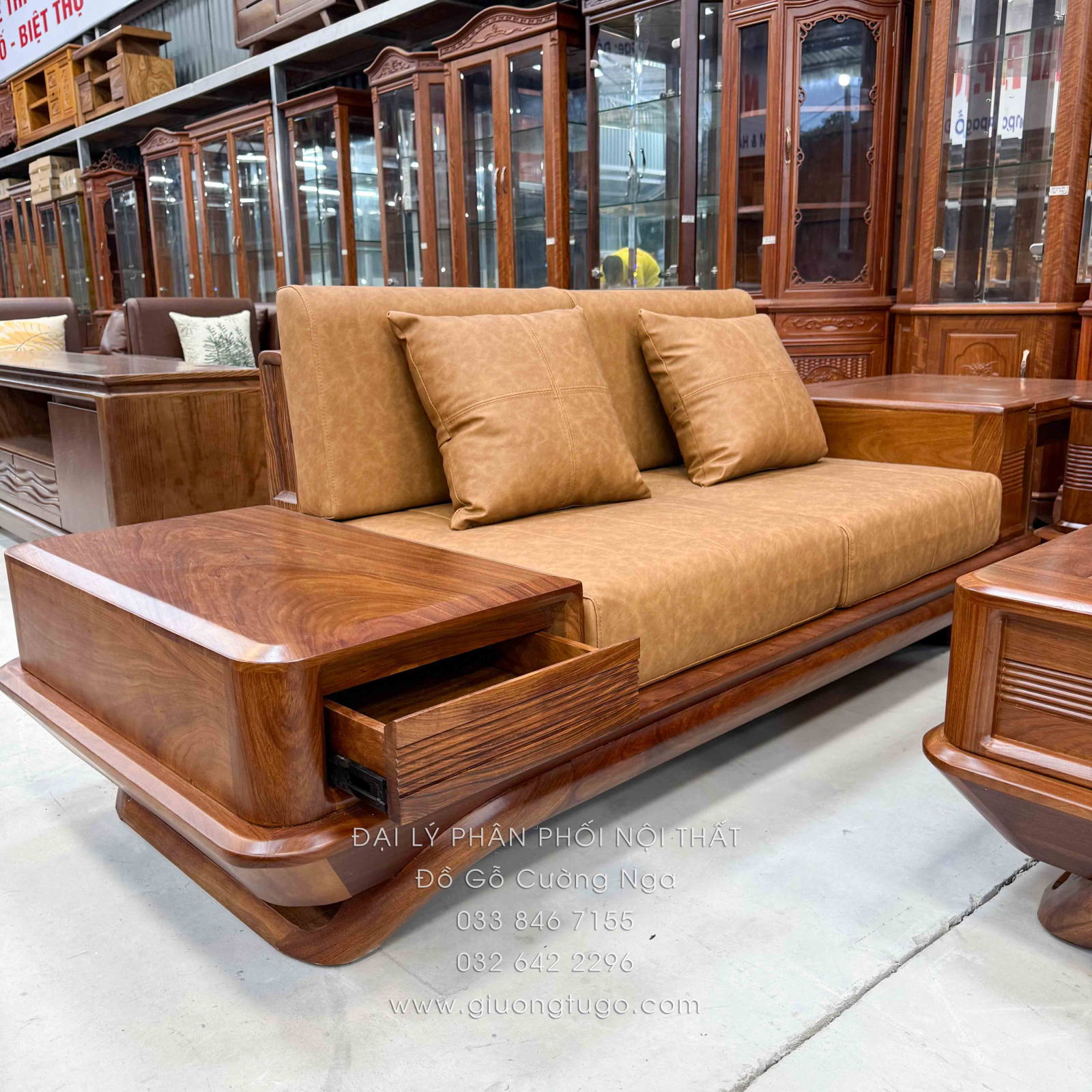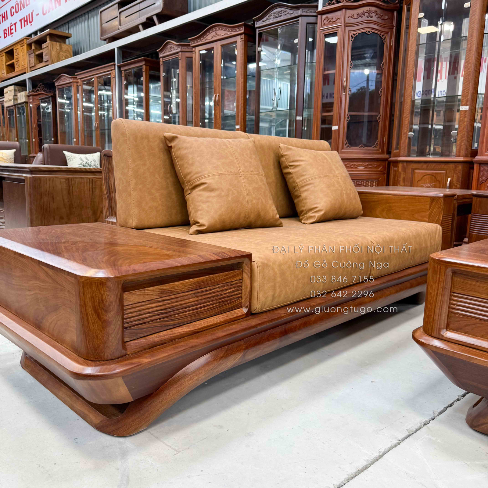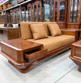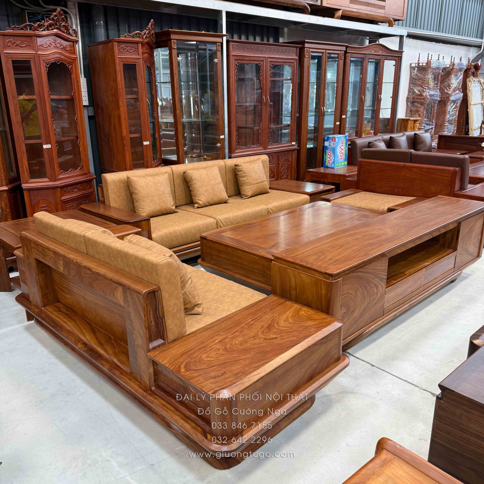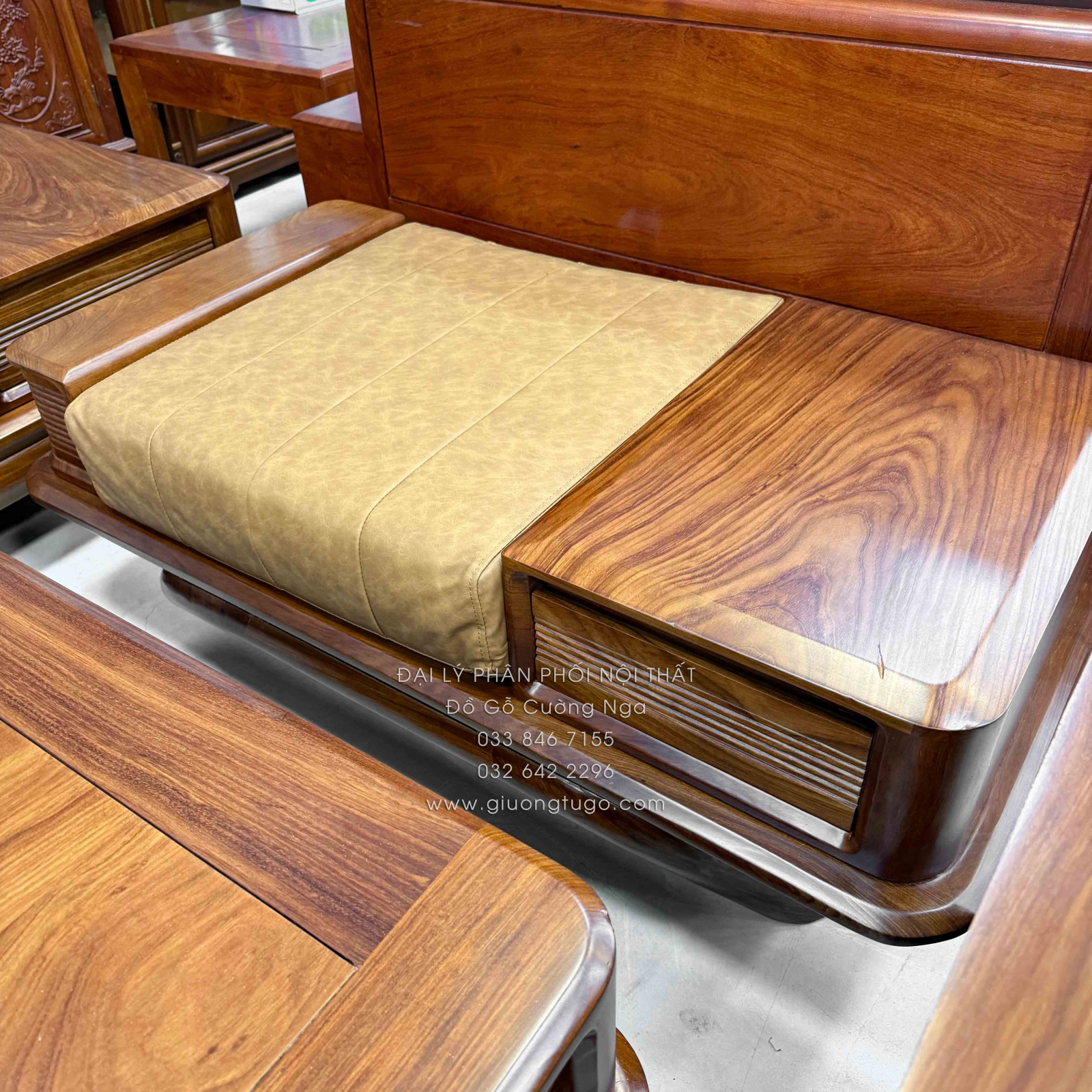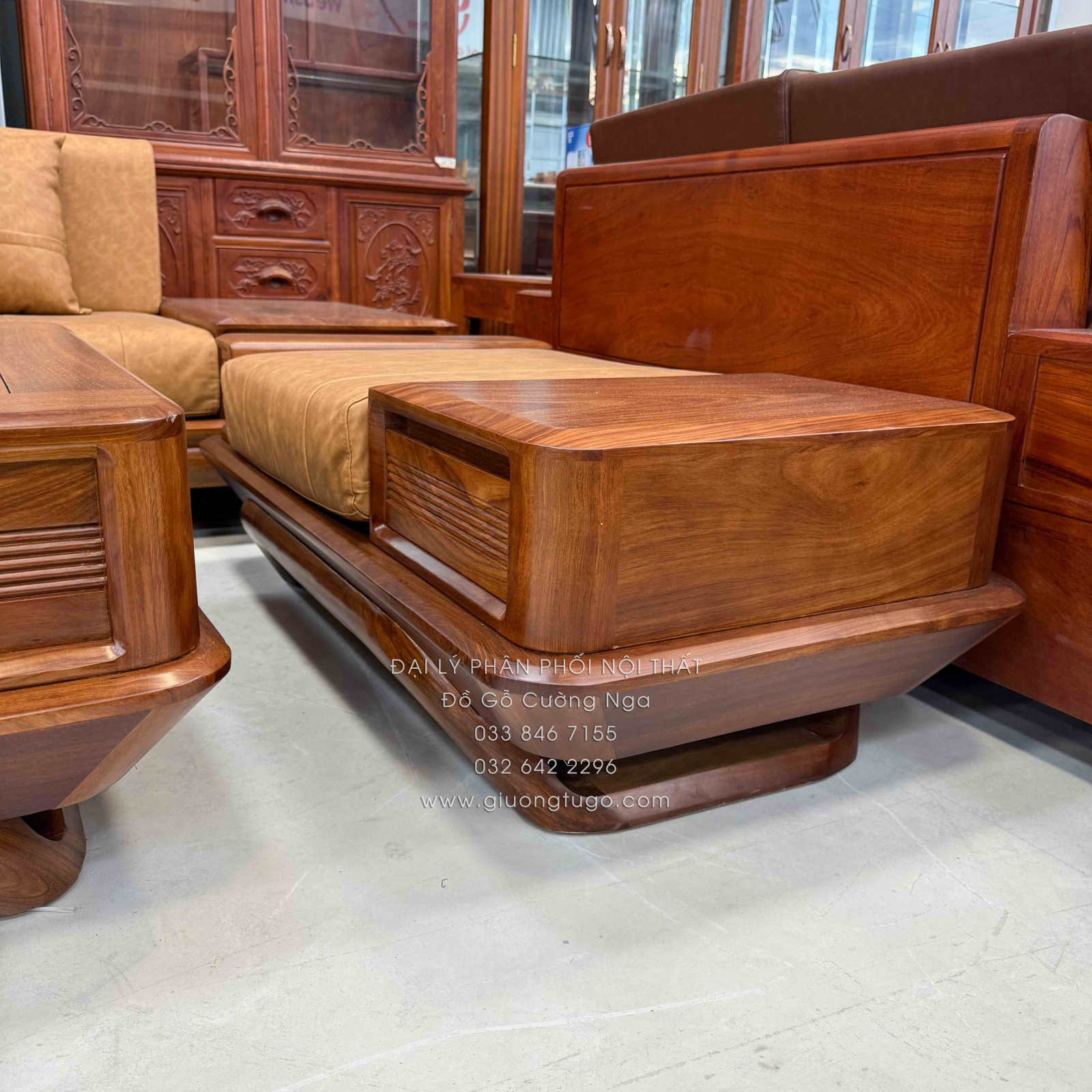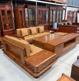 Thông tin chi tiết Bộ Sofa Gỗ Hương Vàng 2 Văng Chân Thuyền 3m45x2m75 Cao Cấp