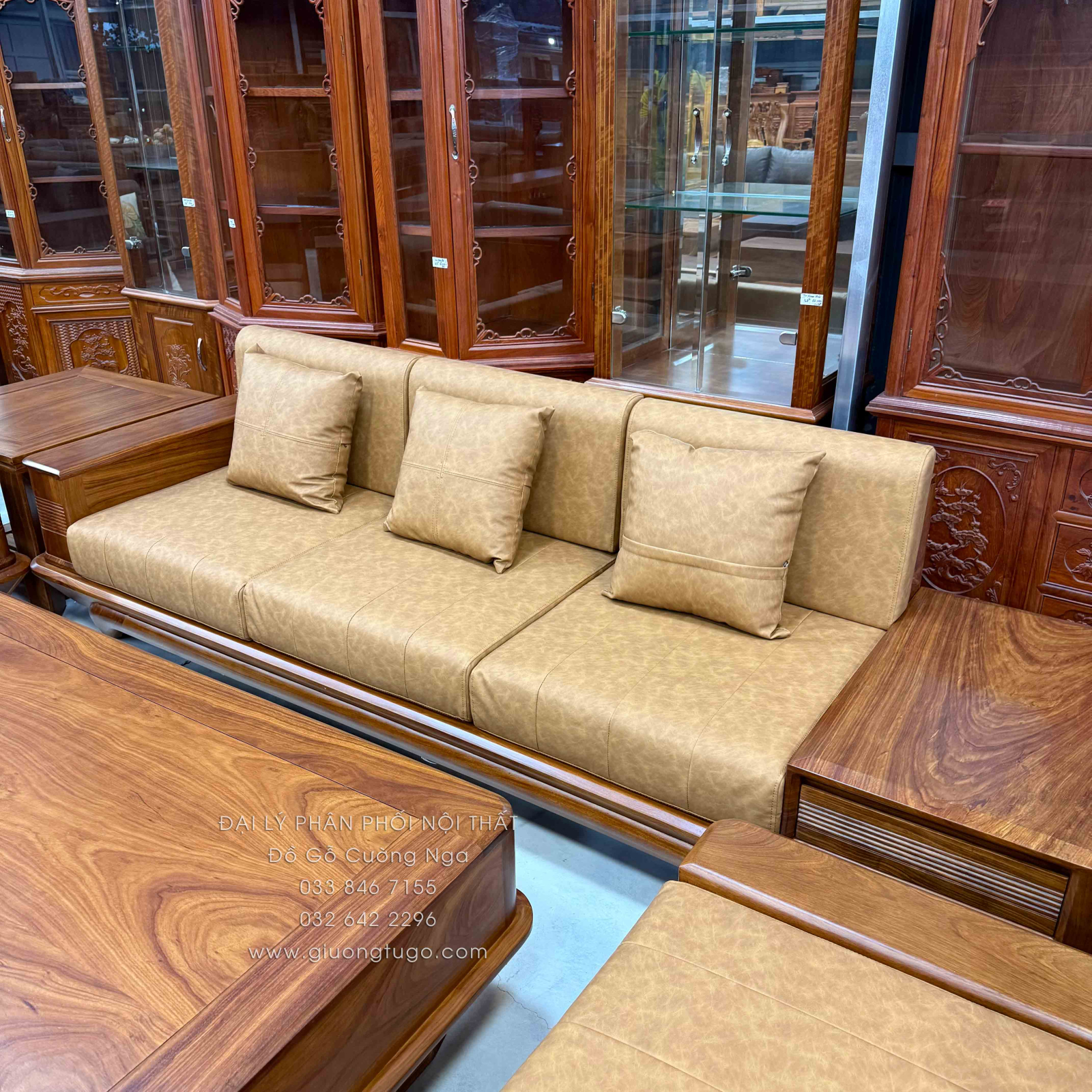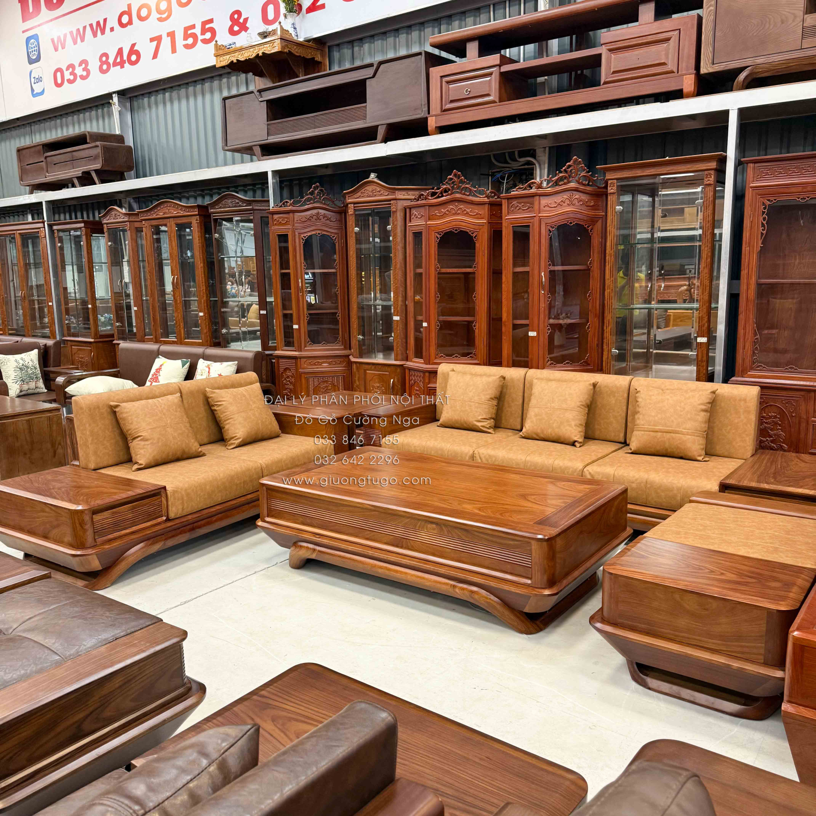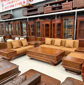Bộ Sofa Gỗ Hương Vàng 2 Văng Chân Thuyền 3m45x2m75 Cao Cấp
