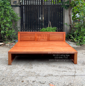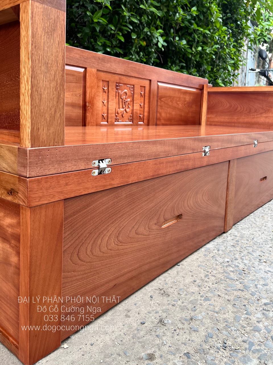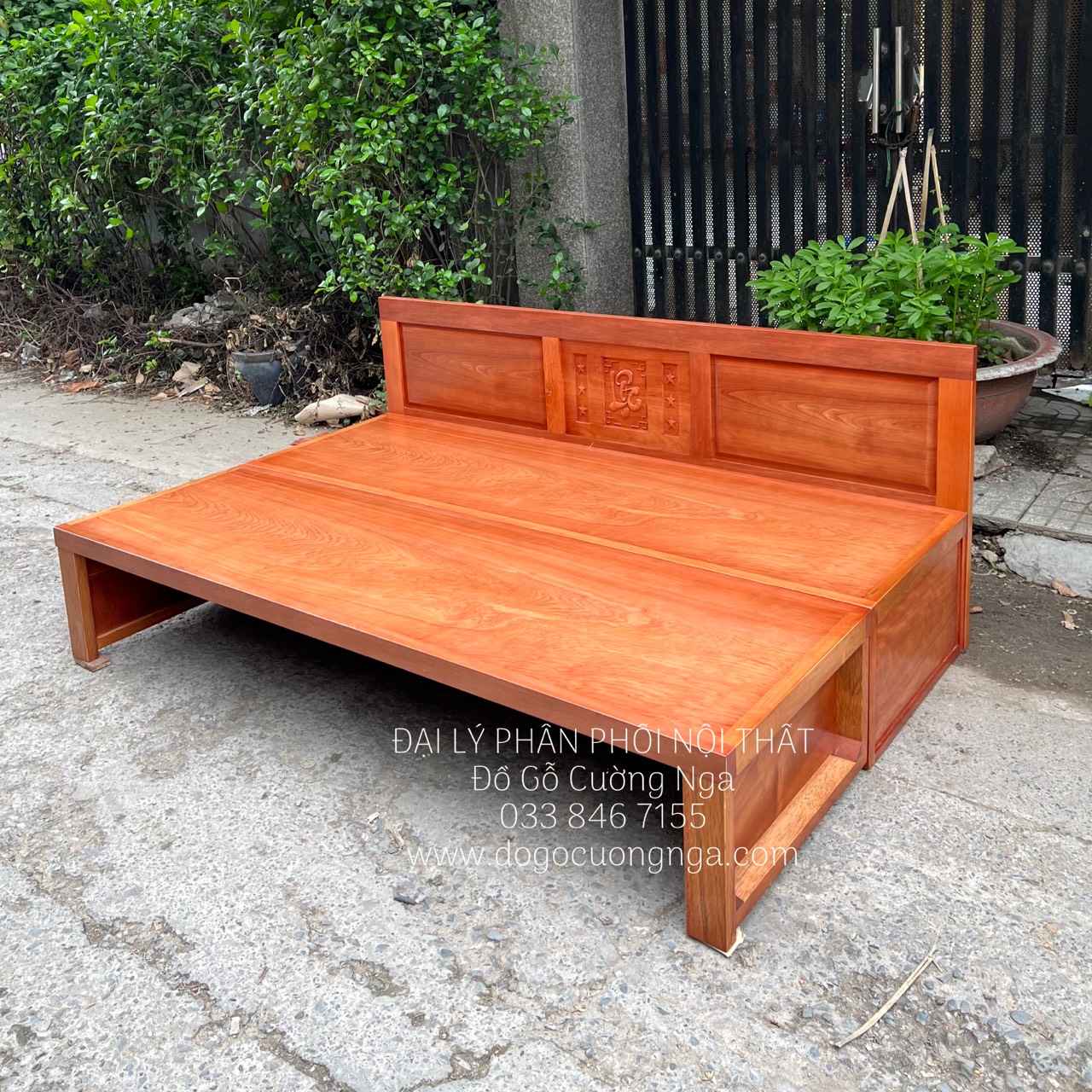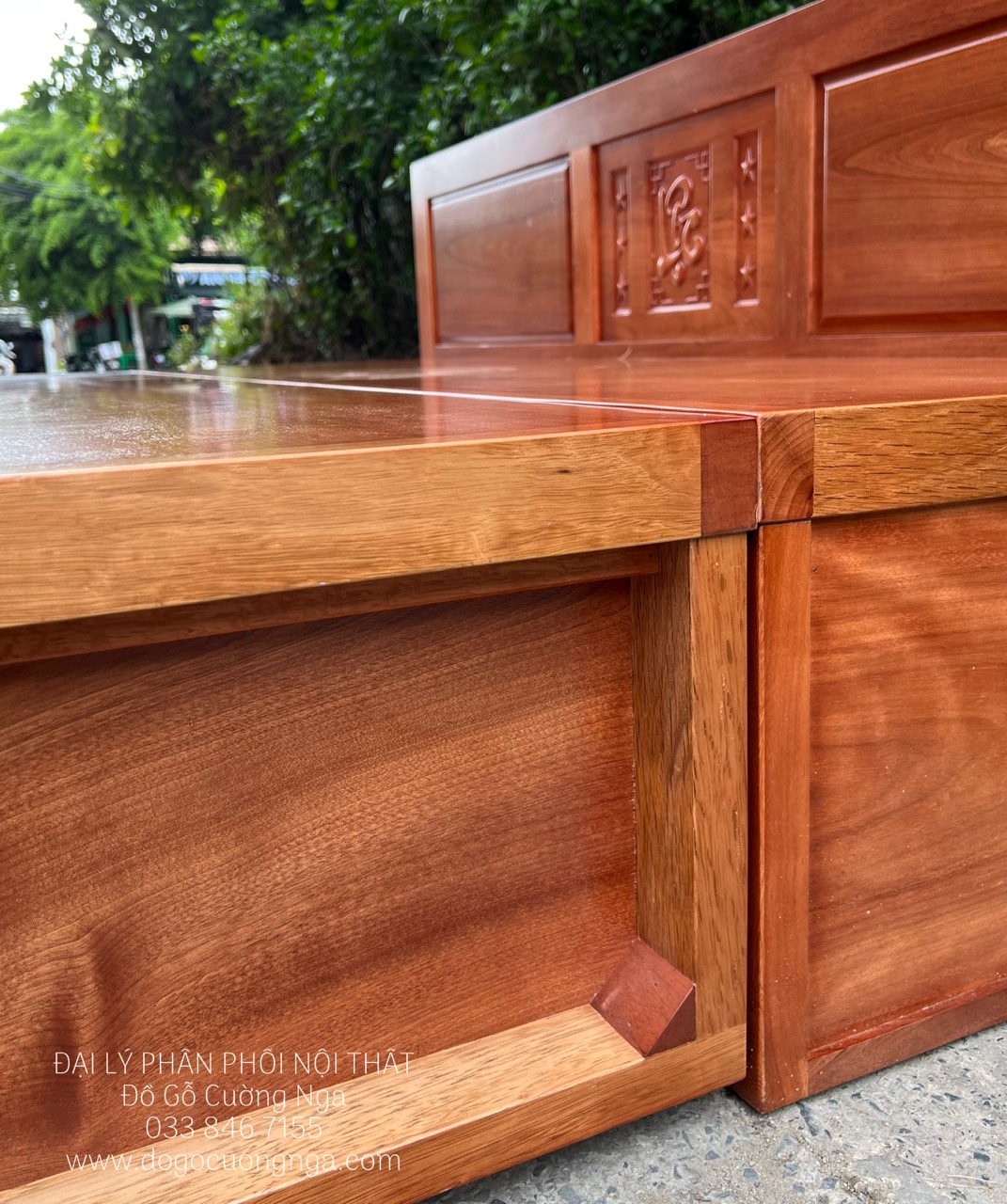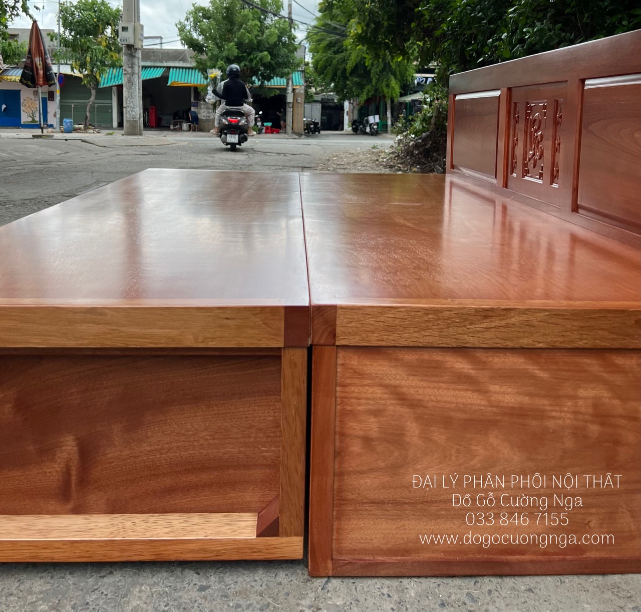 Chi tiết giường gấp gỗ xoan đào 2 ngăn kéo chân cao
