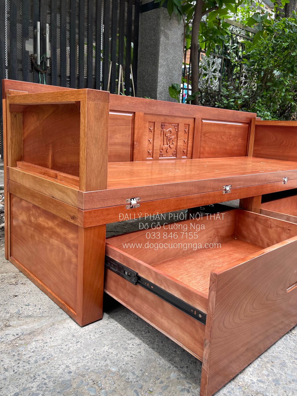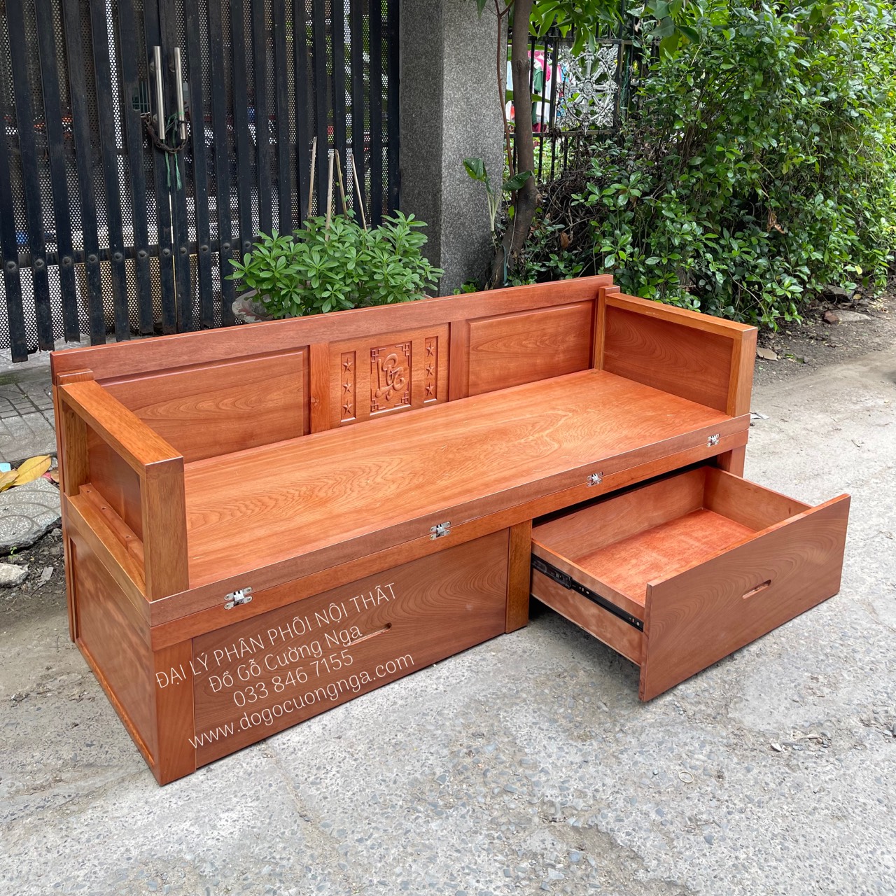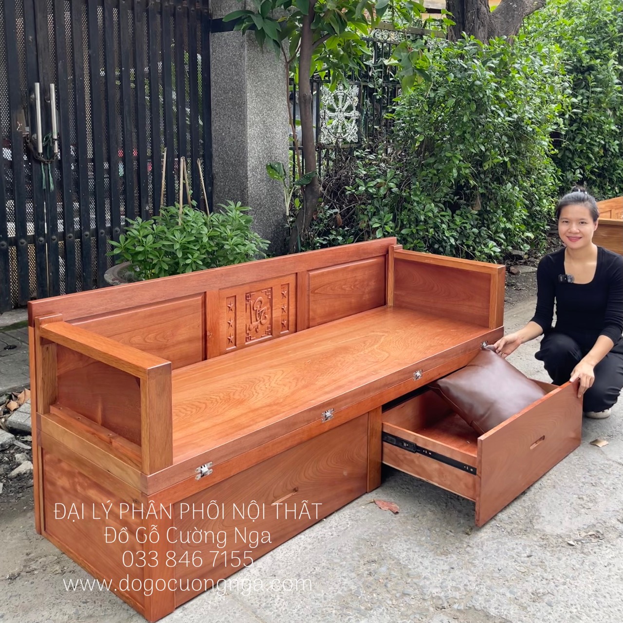 Ghế Kéo Thành Giường Gỗ Xoan Đào Có Ngăn Kéo