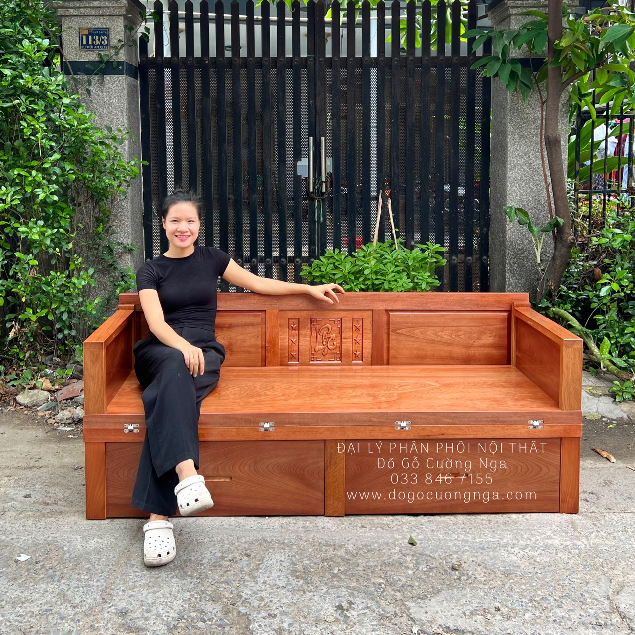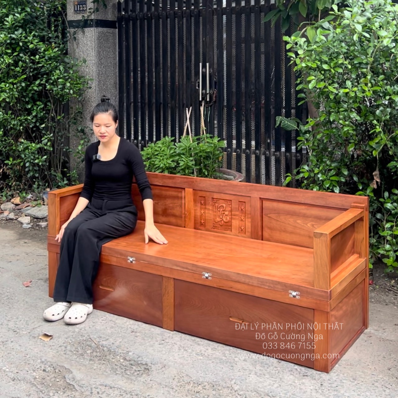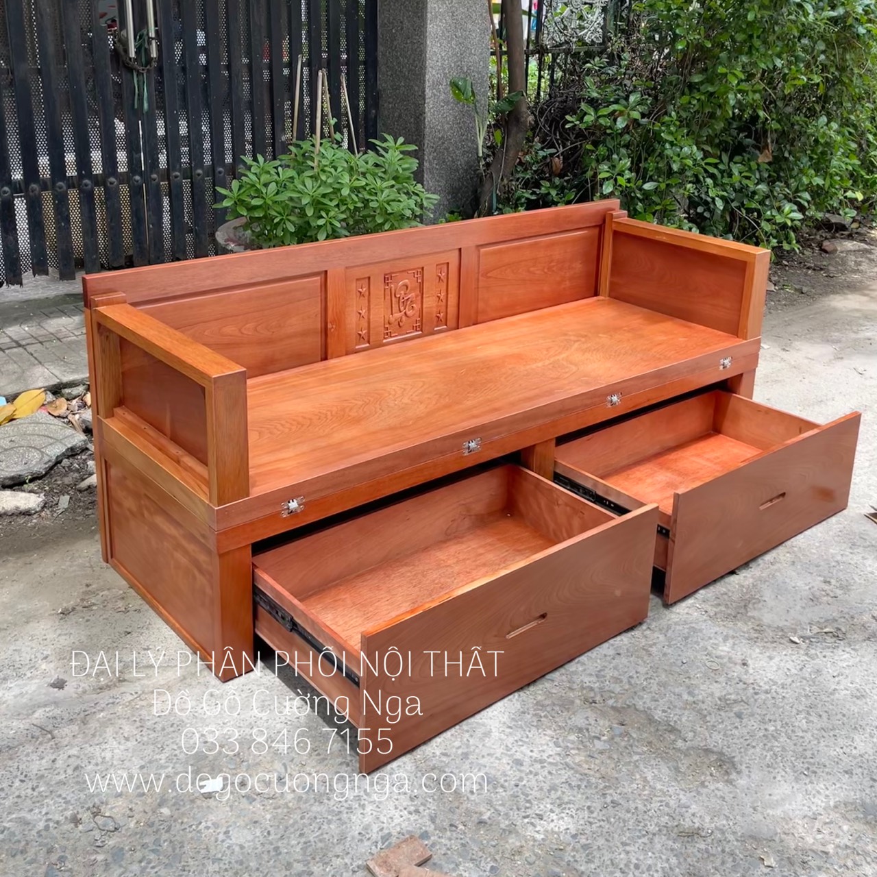 Ghế Kéo Thành Giường Gỗ Xoan Đào Có Ngăn Kéo