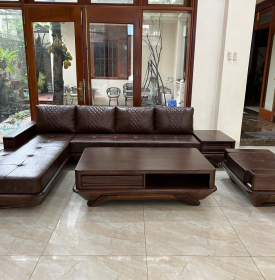 Ghế sofa gỗ óc chó cao cấp góc L lớn
