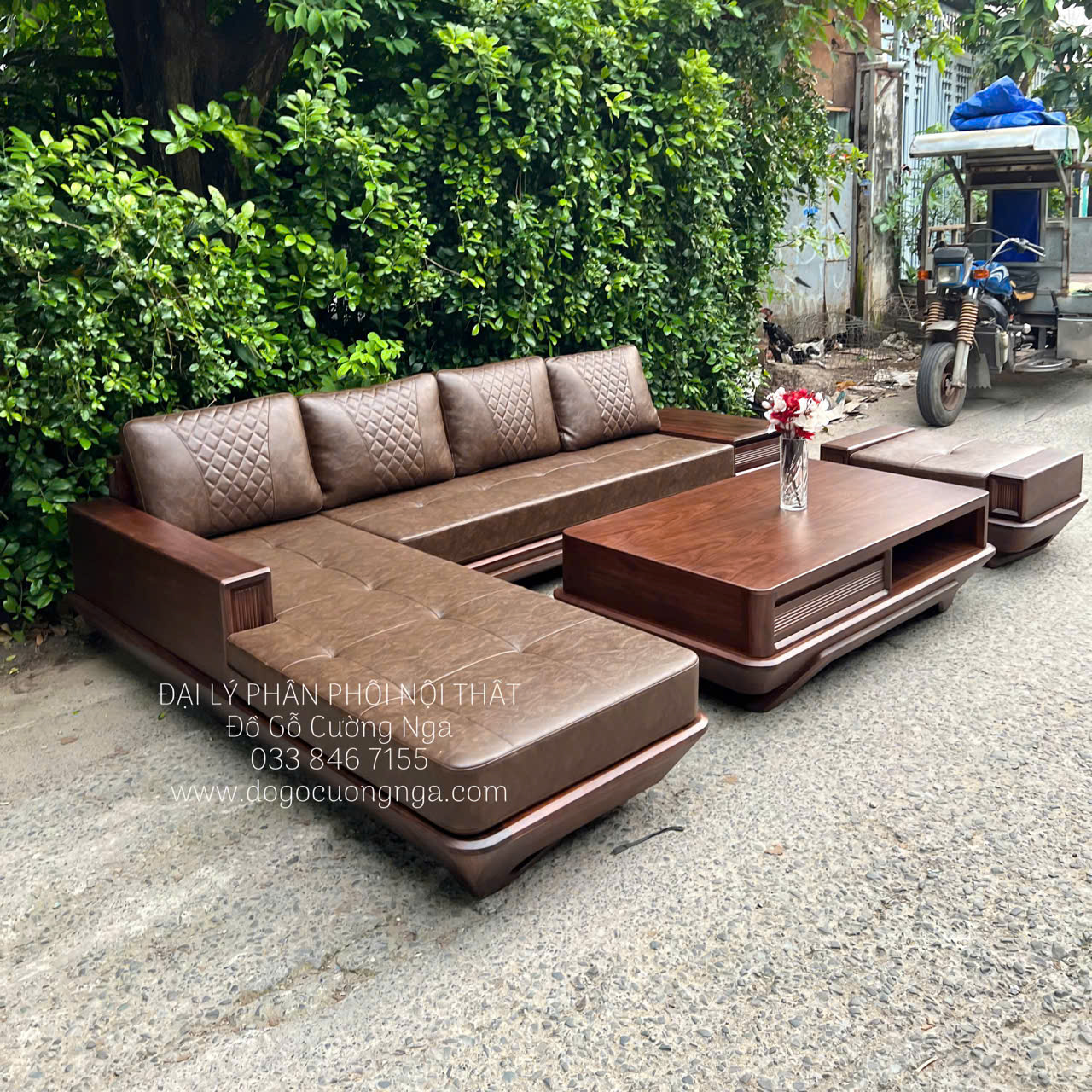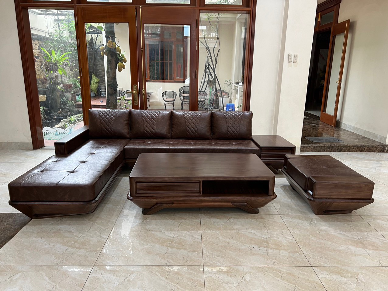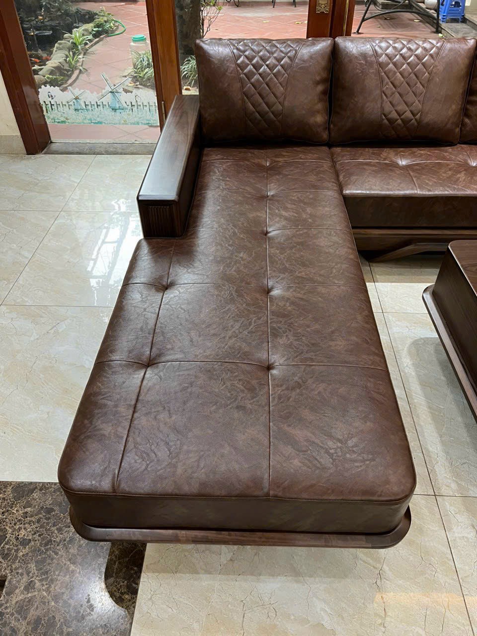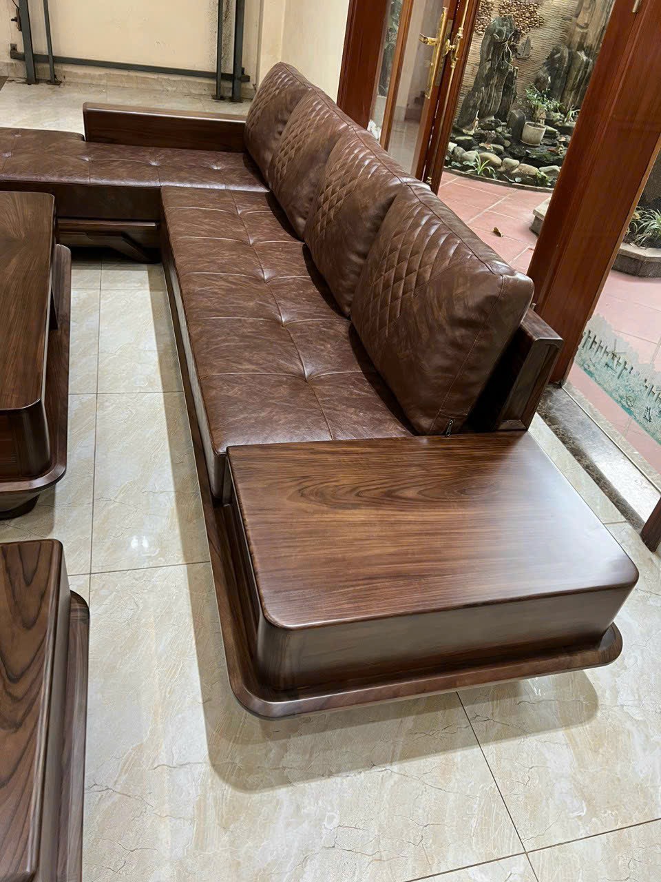 Ghế Sofa Gỗ Óc Chó Góc L 3m15 X 2m15 Kèm Nệm Da Cao Cấp