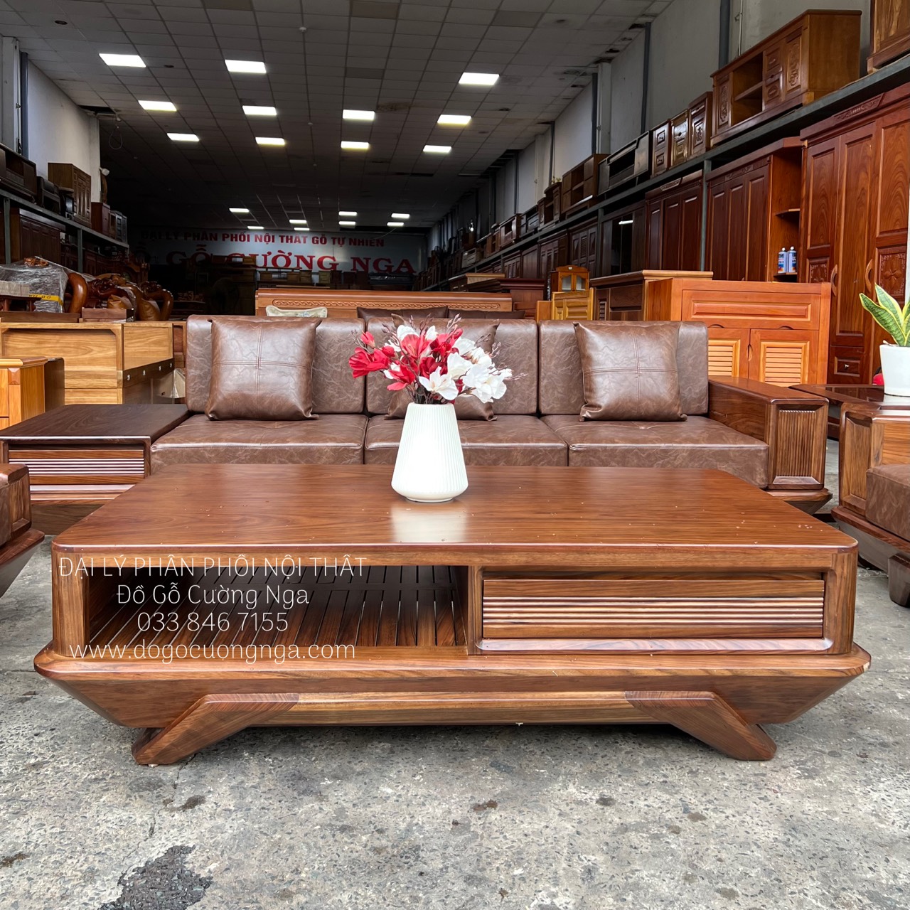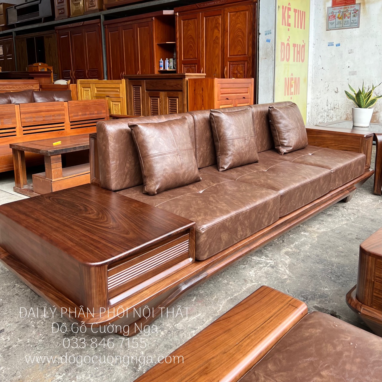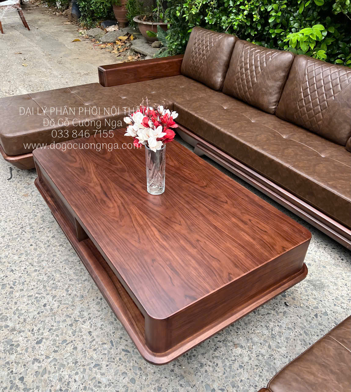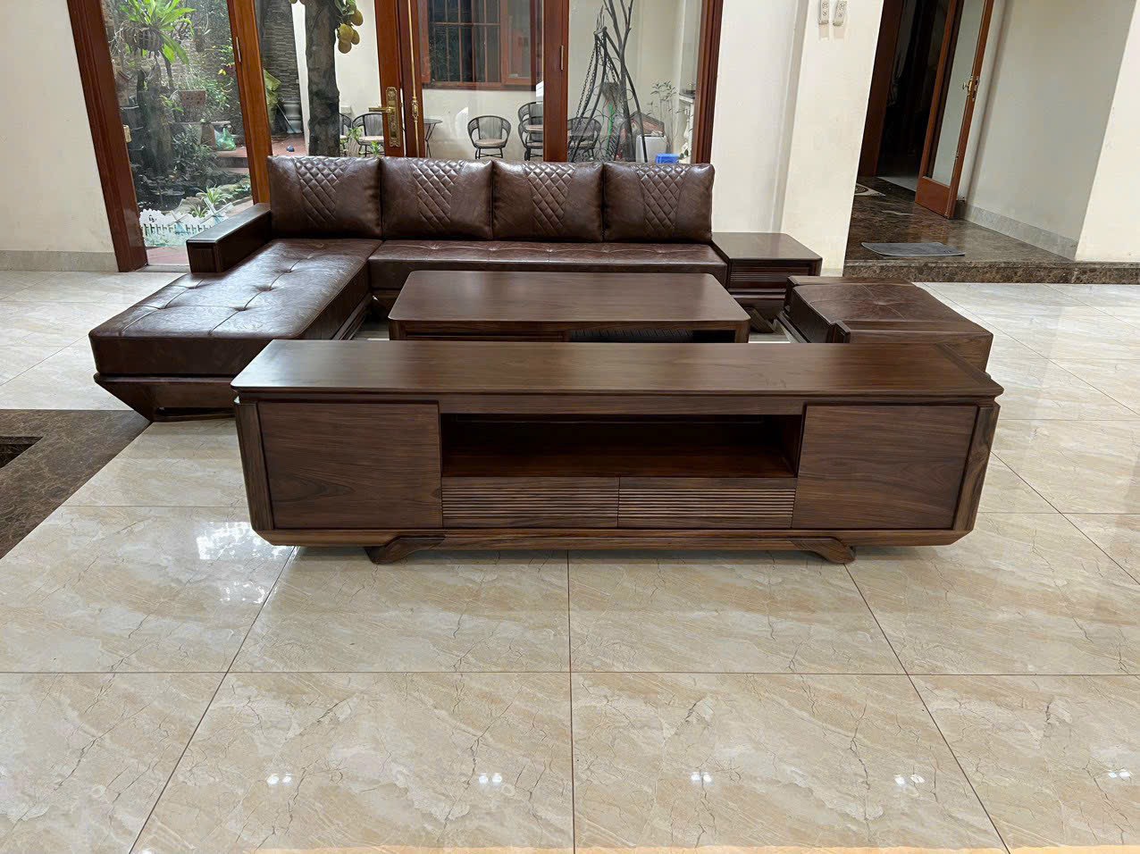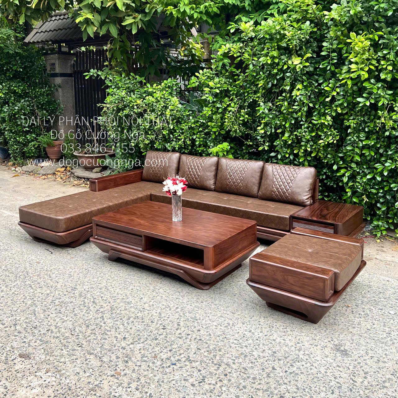 Ghế Sofa Gỗ Óc Chó Góc L 3m15 X 2m15 Kèm Nệm Da Cao Cấp