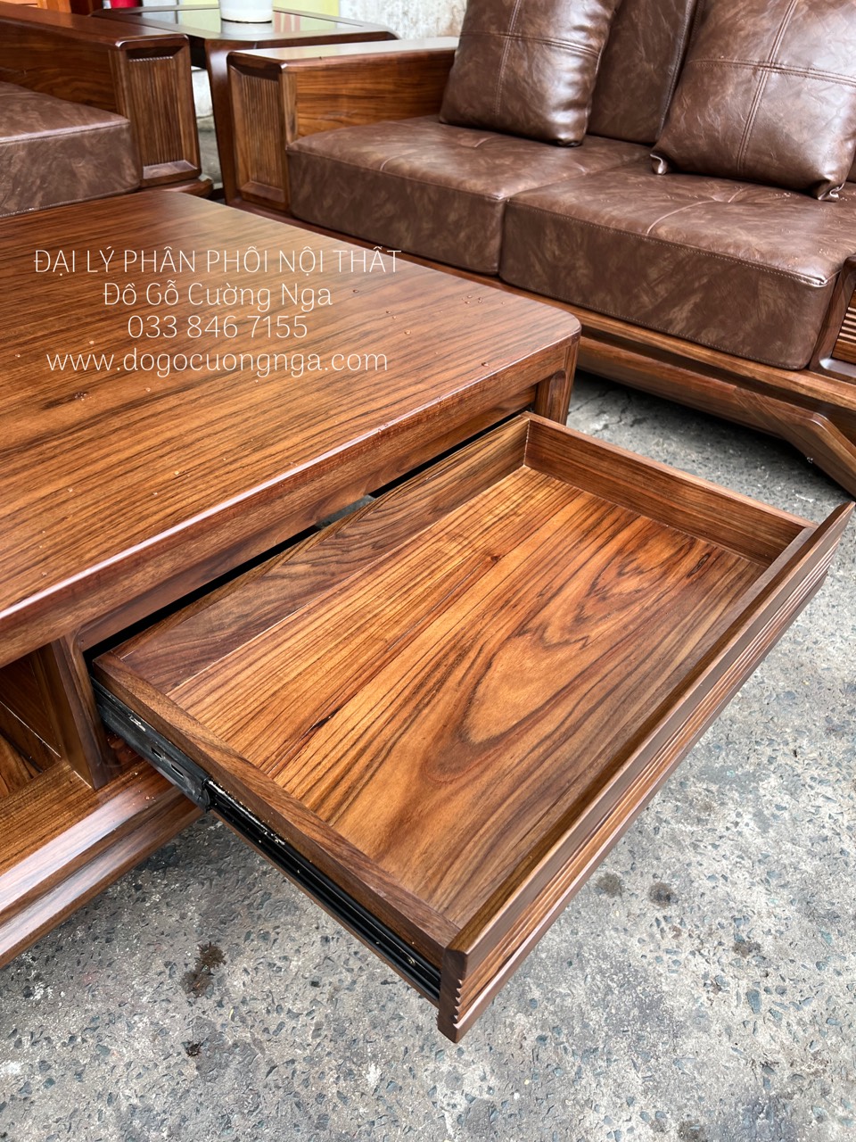 Chi tiết bàn sofa gỗ cao cấp kèm kính