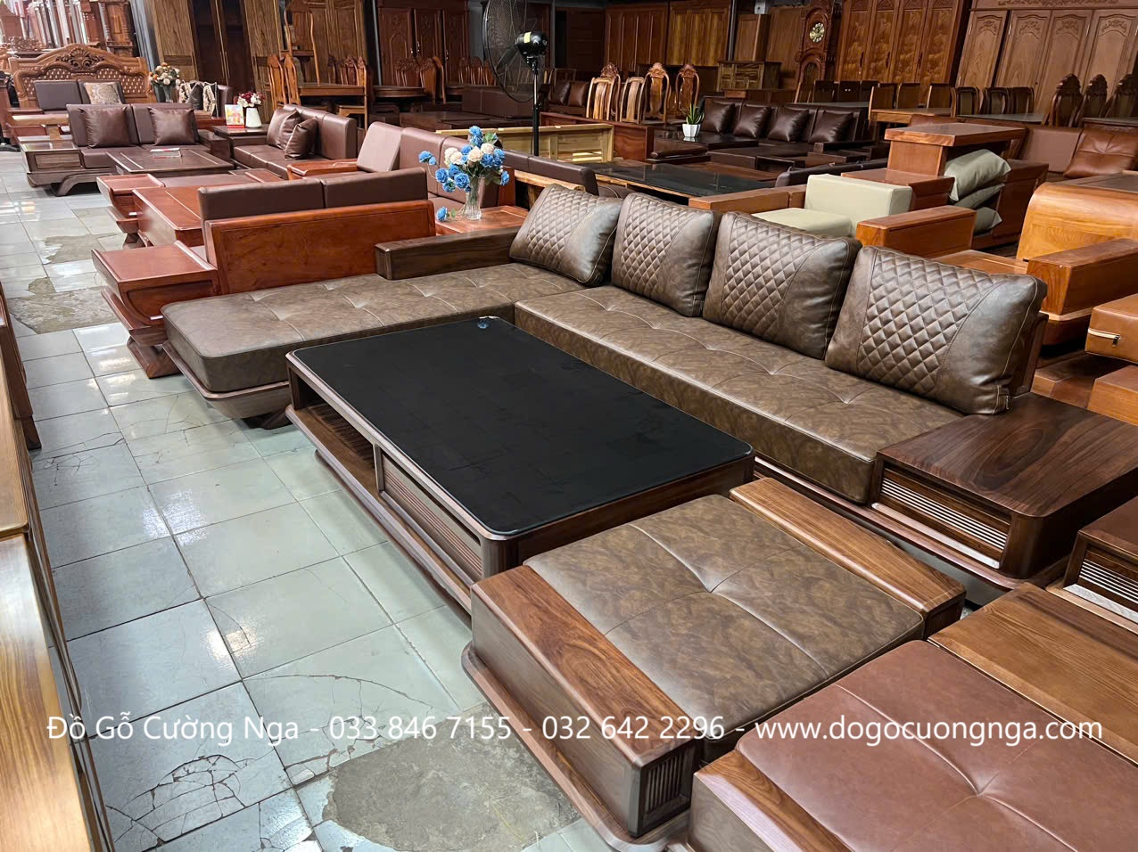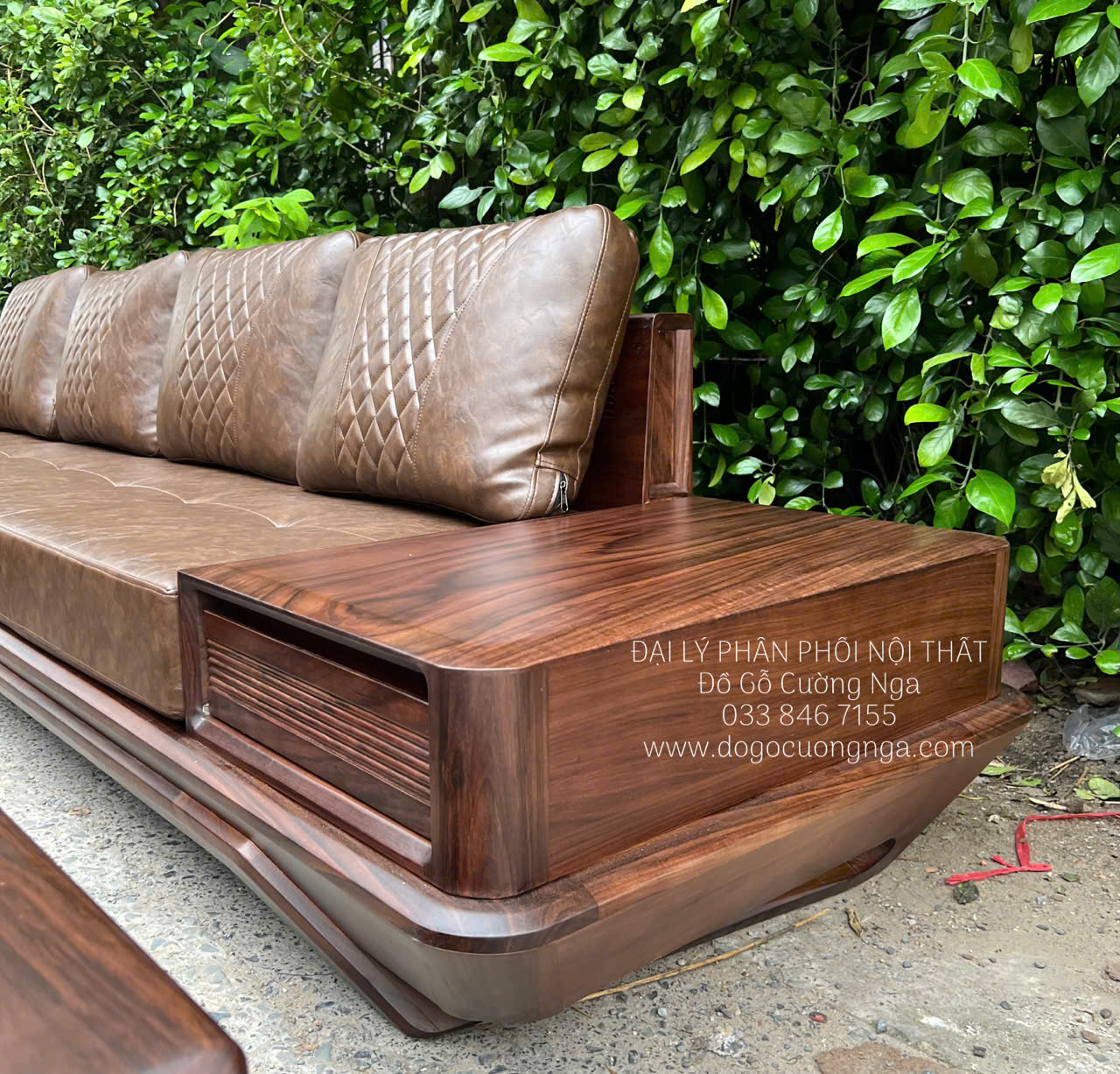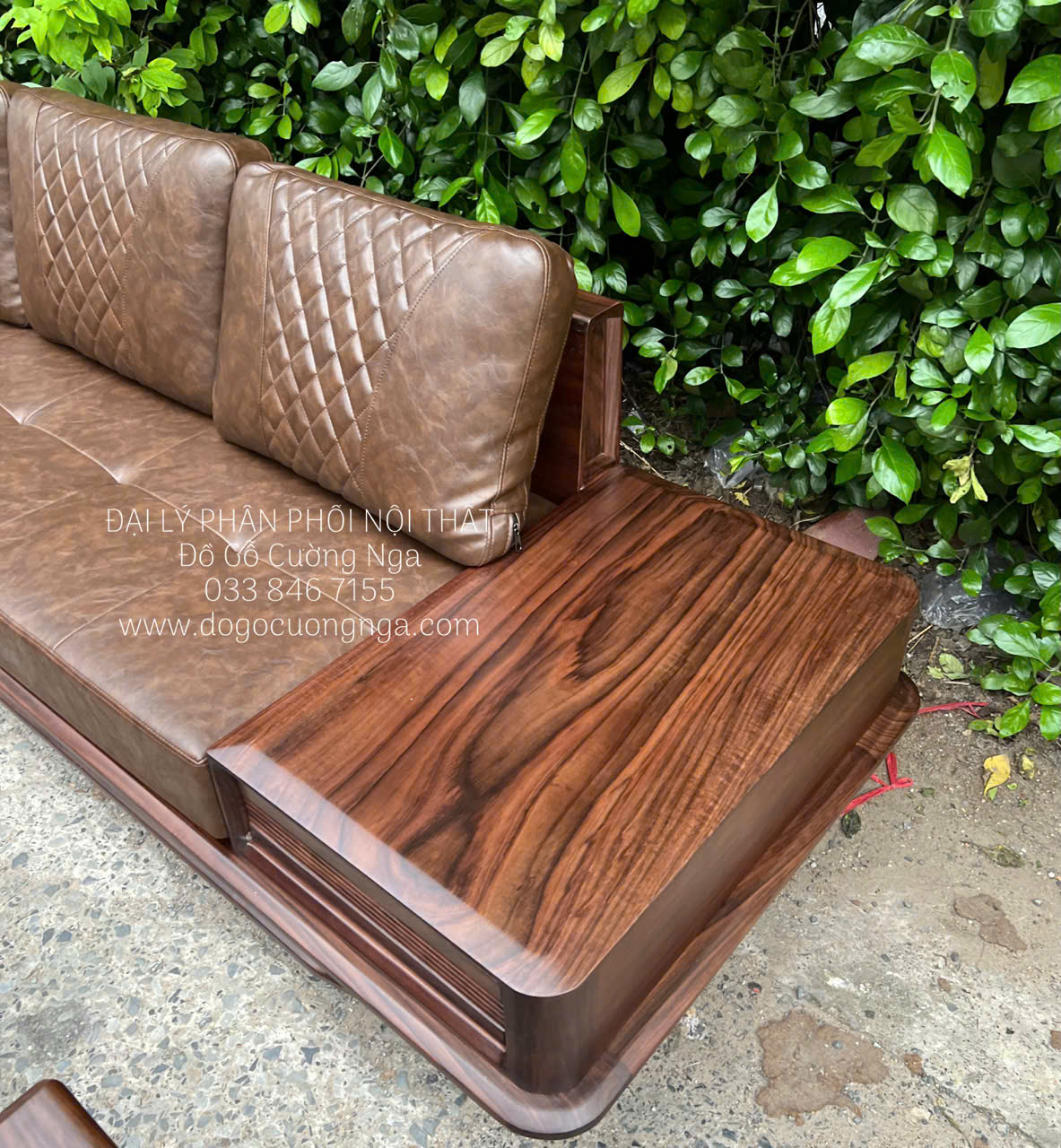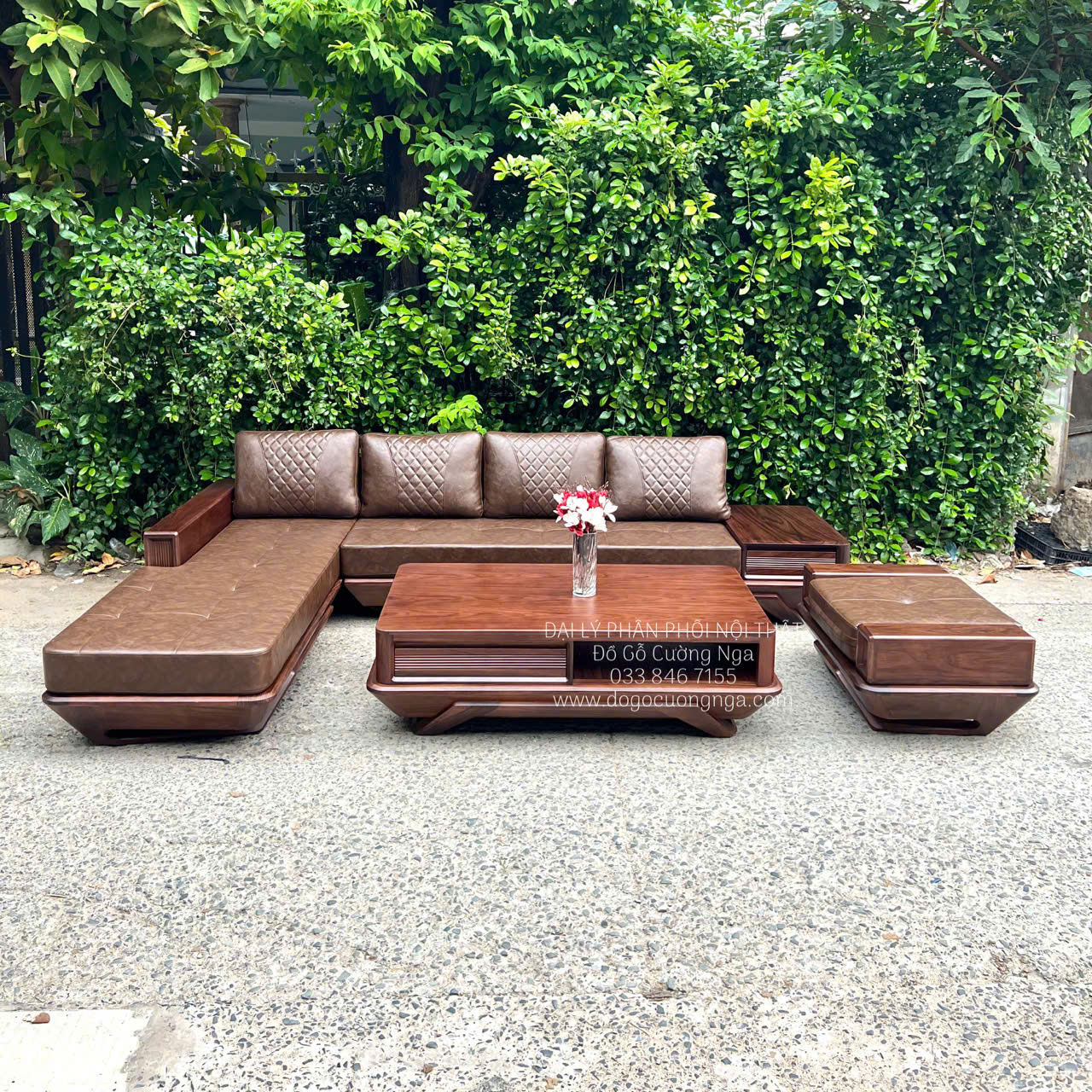 Sofa gỗ óc chó góc L lớn 3m15 x 2m15 hiện đại đẳng cấp tại Đồ Gỗ Cường Nga là sự lựa chọn hoàn hảo cho những ai tìm kiếm sự sang trọng và tiện nghi cho không gian phòng khách của mình.