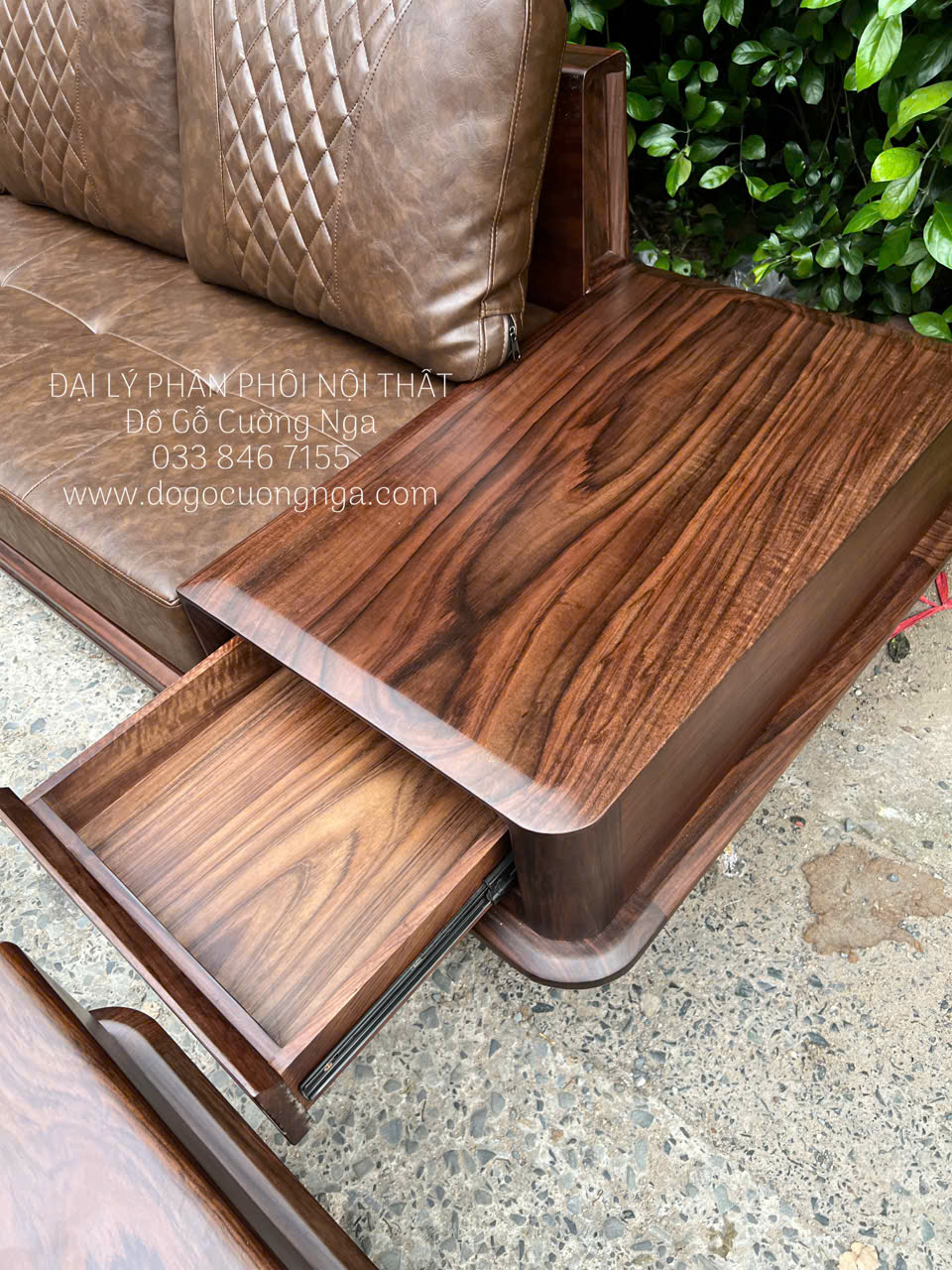 Tạo điểm nhấn đẳng cấp cho phòng khách với chất liệu gỗ óc chó cao cấp và thiết kế hiện đại, sofa góc L này không chỉ là nơi tiếp khách mà còn là biểu tượng của sự sang trọng và đẳng cấp.