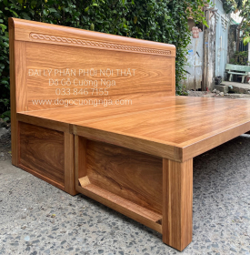 Giường Gấp Gỗ Xoan Đào 2 Ngăn Kéo Kèm Bàn (Có Kính) & Đôn Gỗ Sồi Bền Đẹp