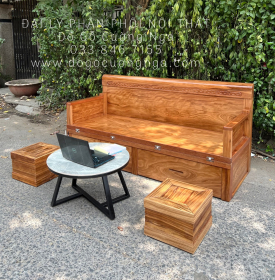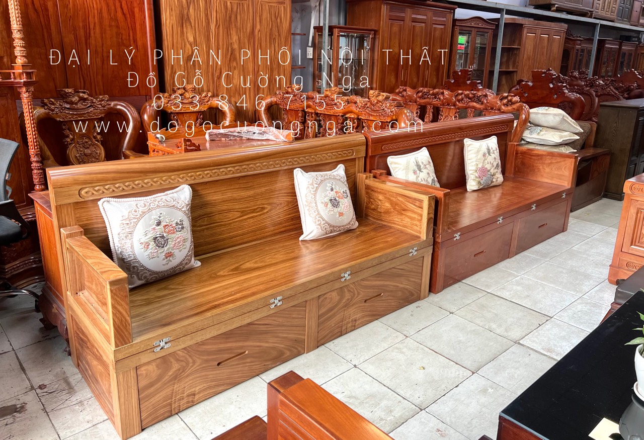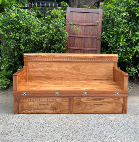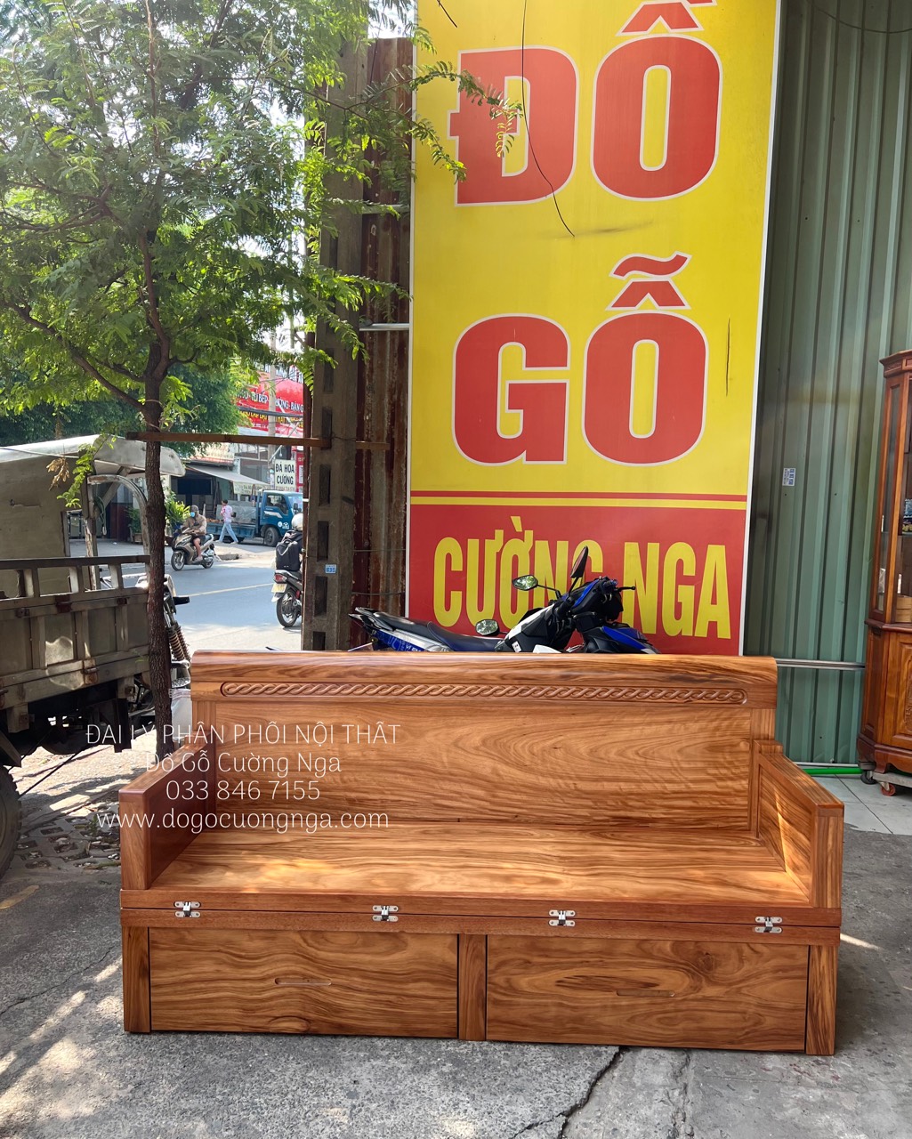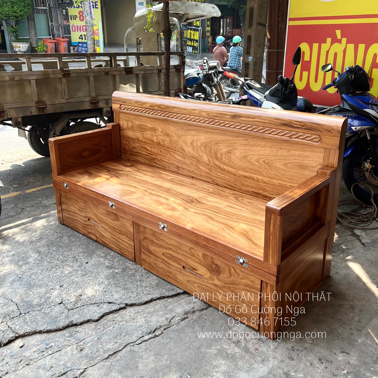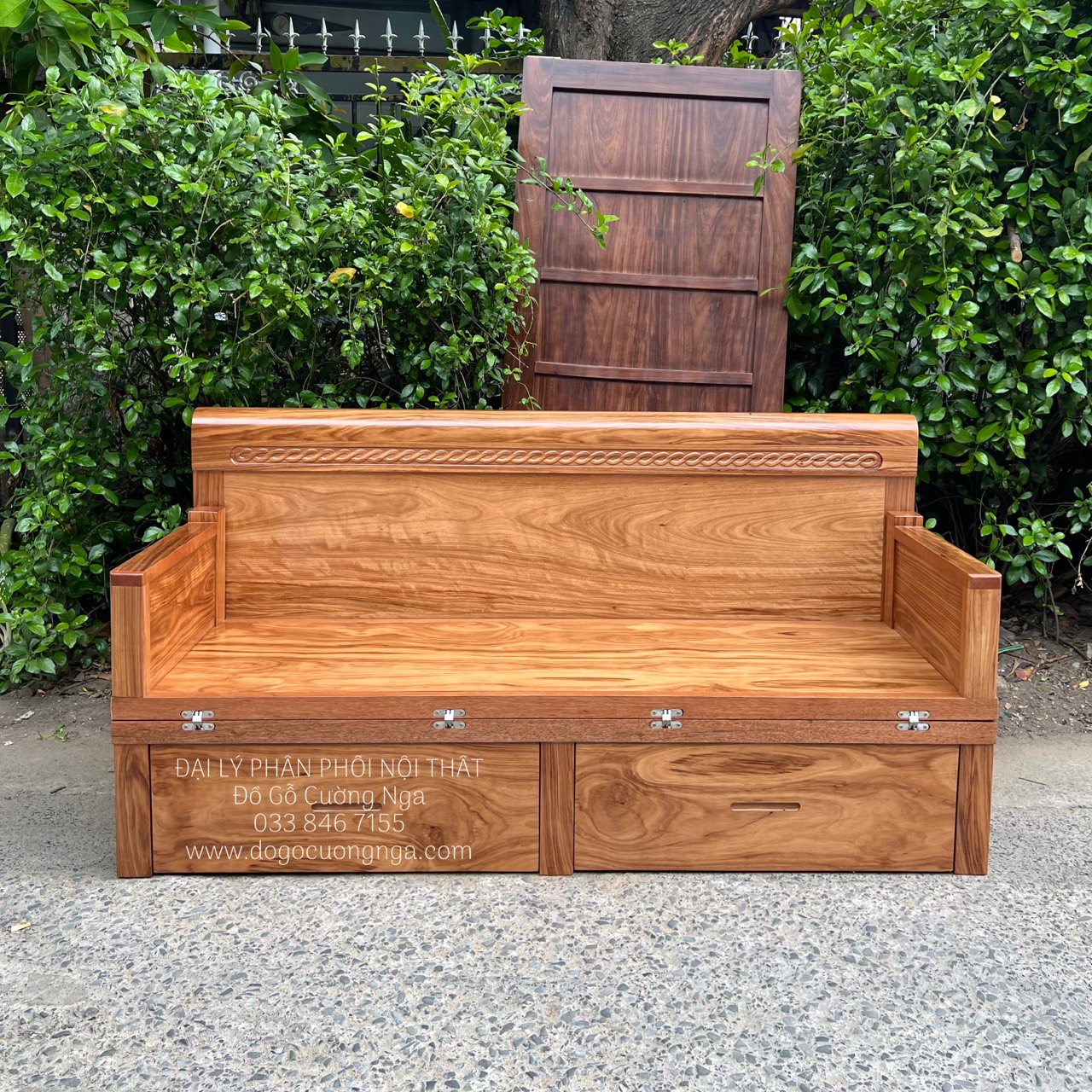 Sofa giường gấp gọn gỗ hương xám 2 ngăn kéo