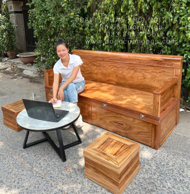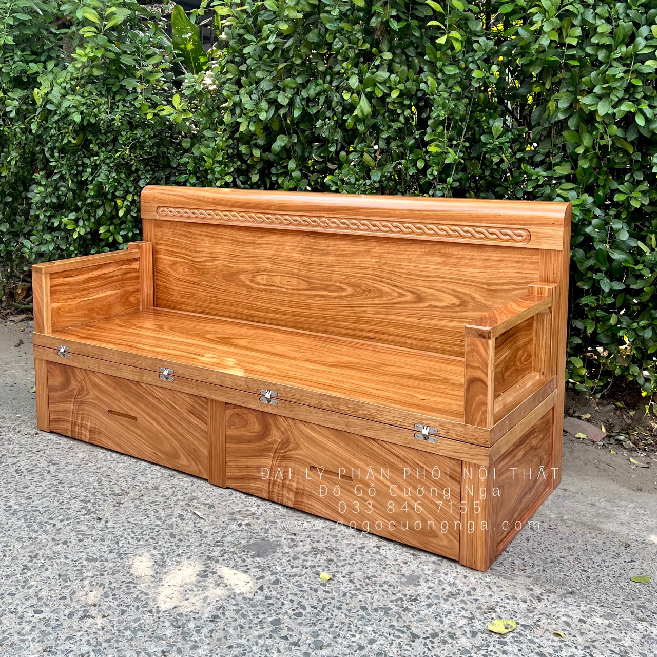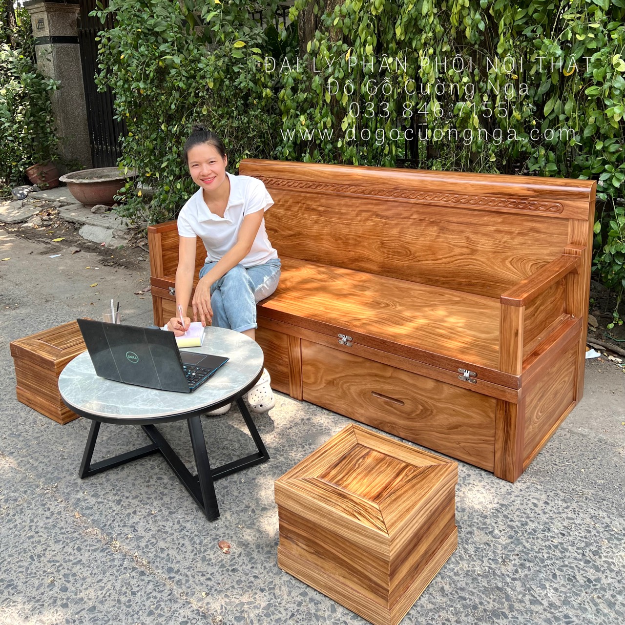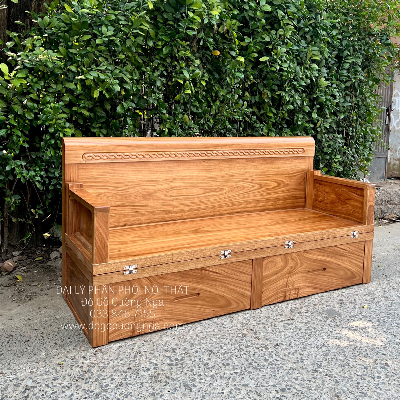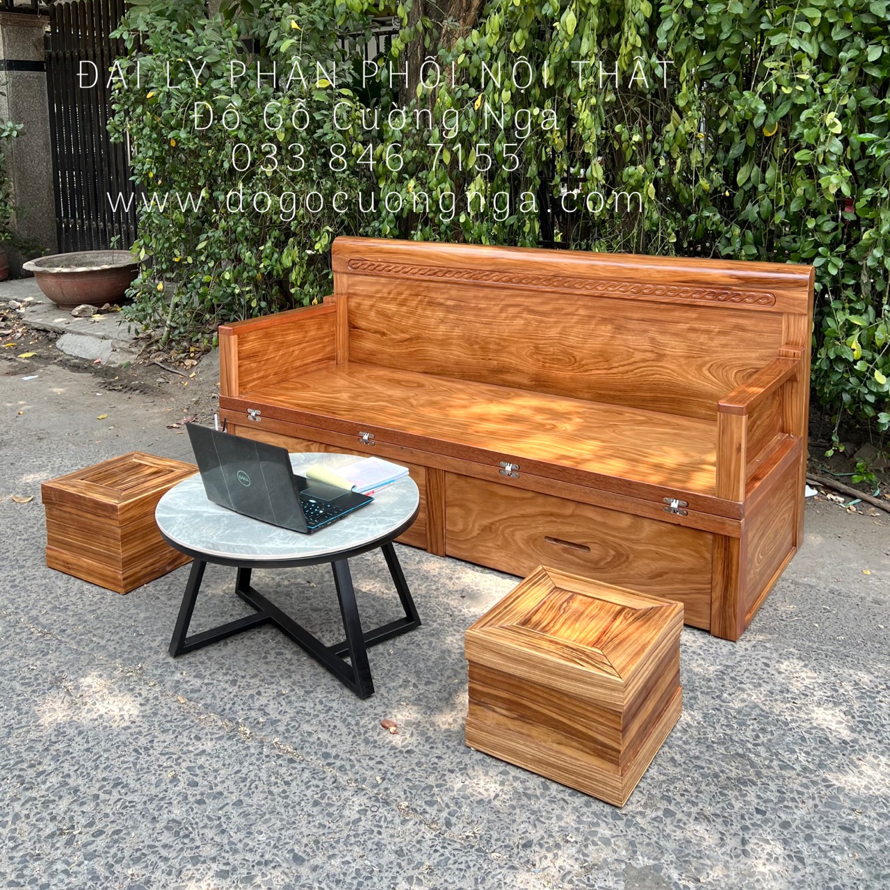 Sofa giường gấp gọn gỗ hương xám 2 ngăn kéo