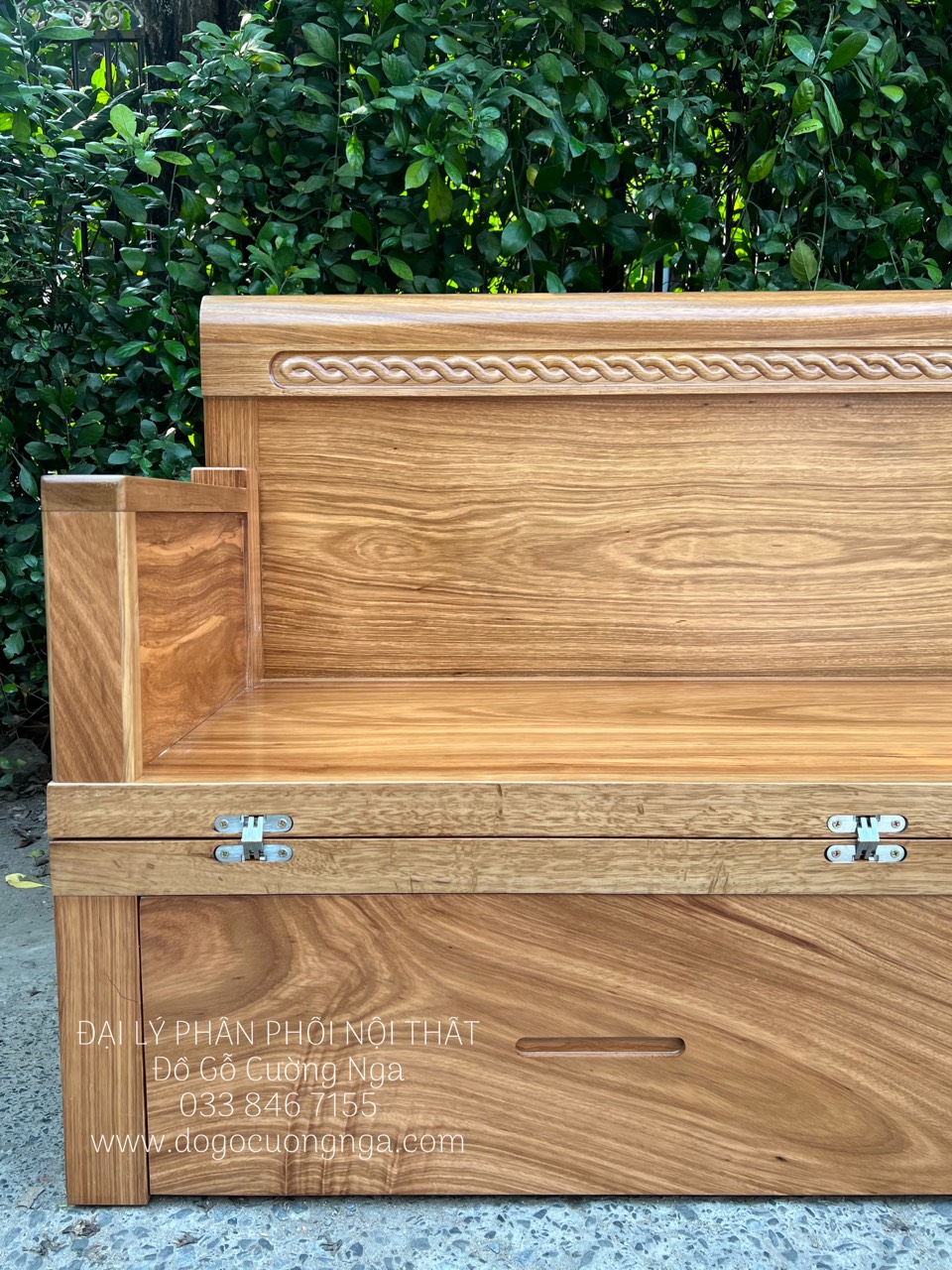 Giường Gấp Đa Năng Gỗ Hương Xám 2 Ngăn Kéo Kèm Bàn Trà Đôn Ngồi