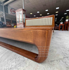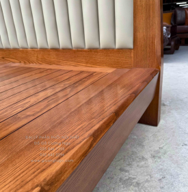 Giường Ngủ Kiểu Nhật Gỗ Sồi Nga Lau Màu Óc Chó Mẫu Chân Quỳ Bọc Nệm