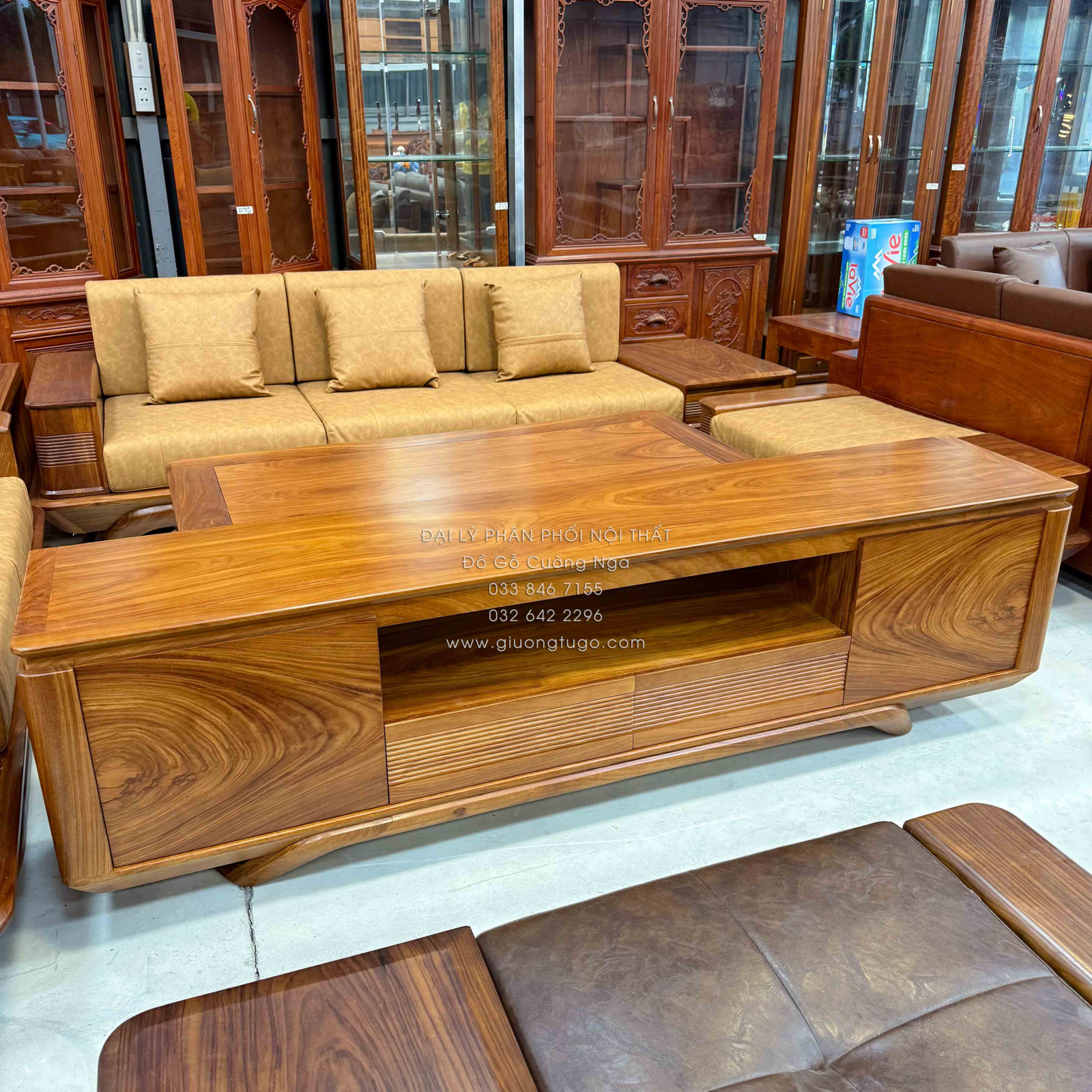 Thông tin chi tiết Kệ Tivi Gỗ Hương Vàng Chân Choãi Hiện Đại