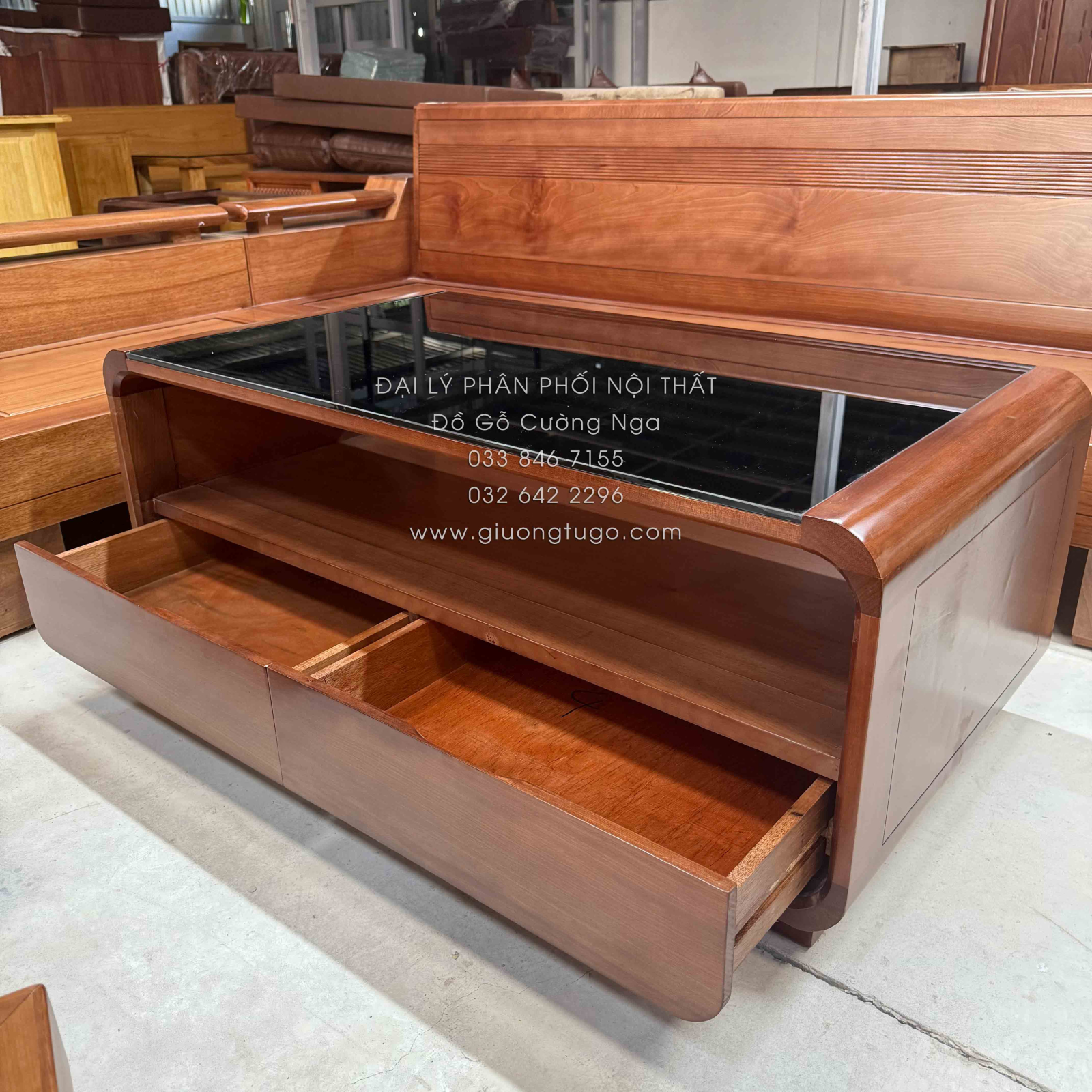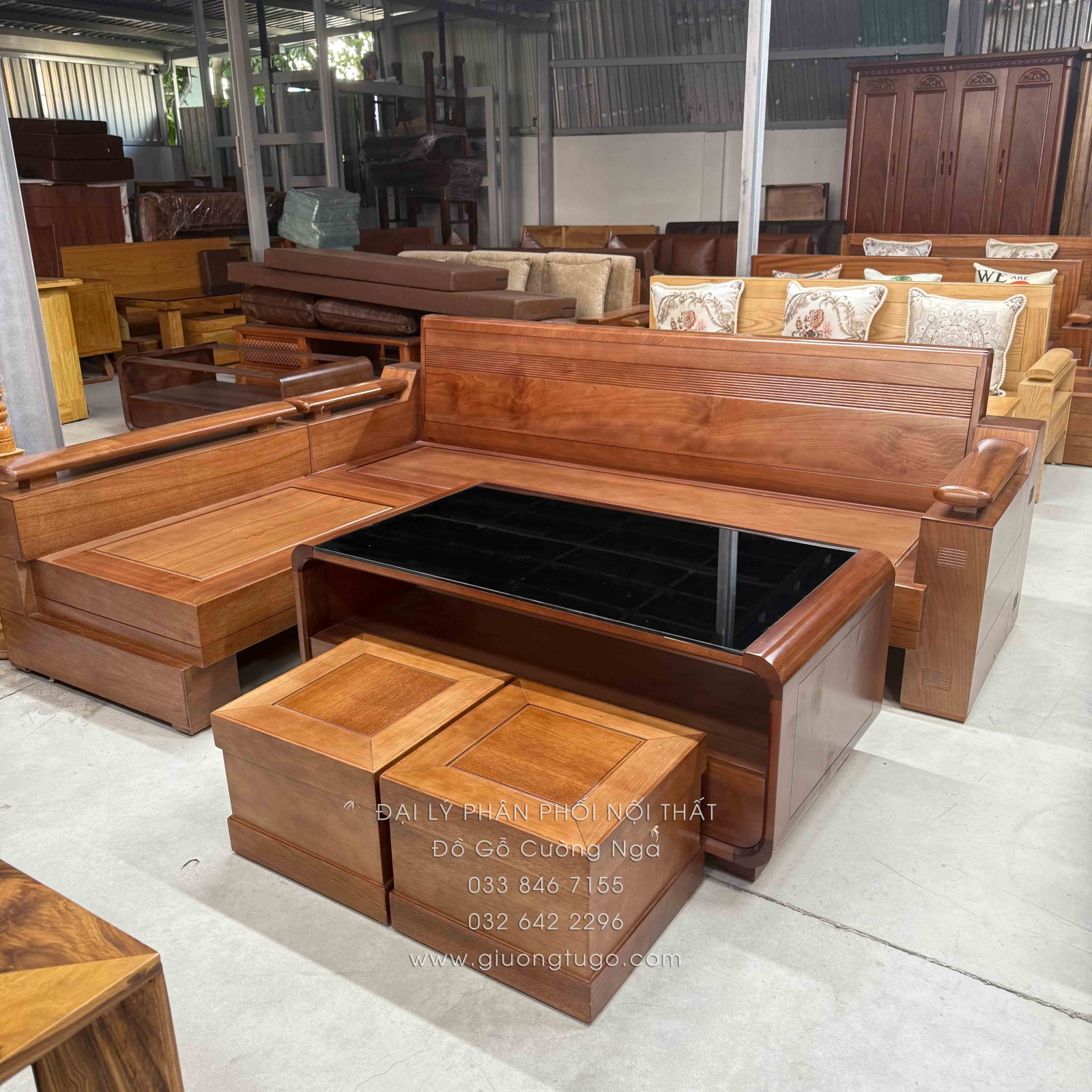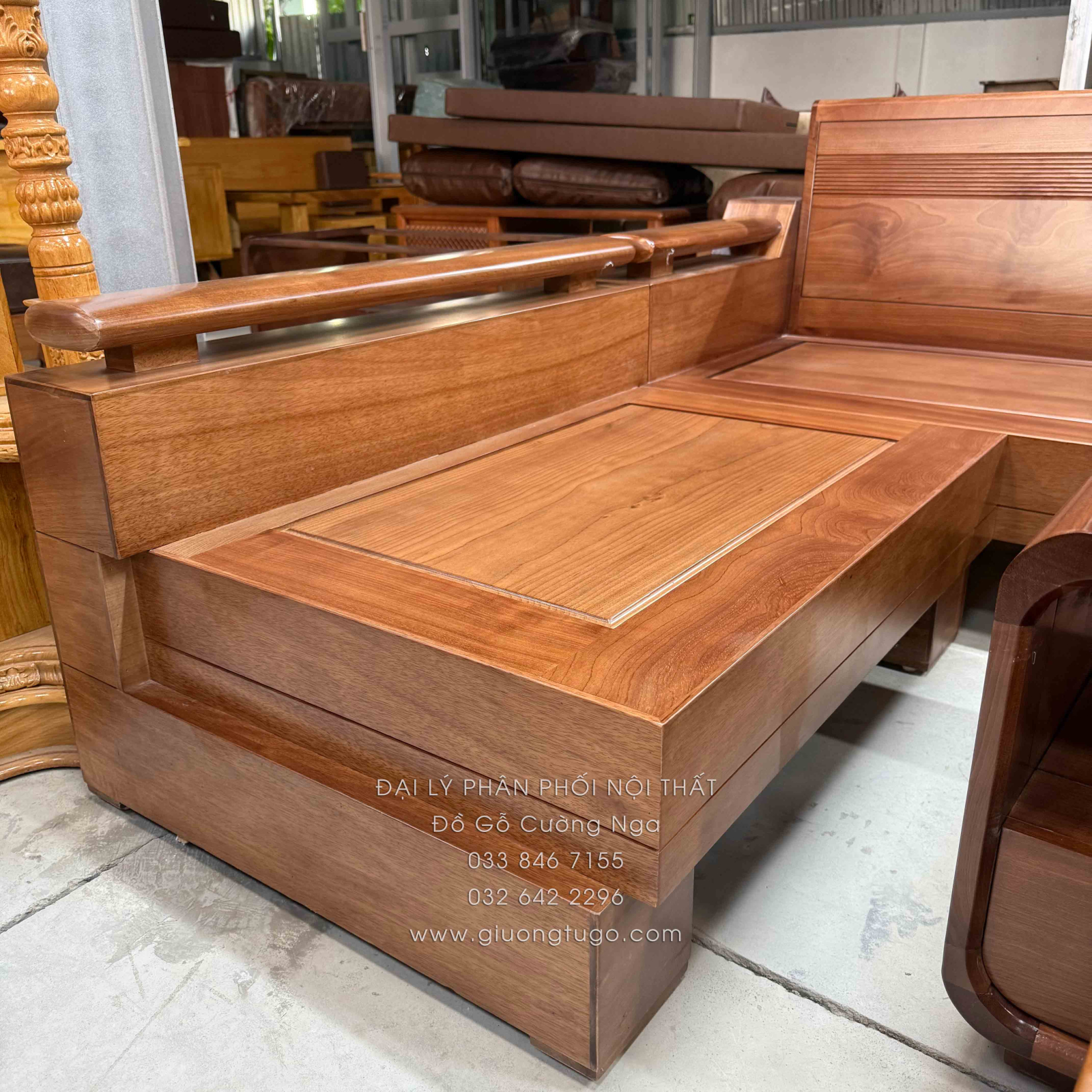 Sofa Gỗ Đinh Hương Góc L Tựa Soi 2m1x1m6 Kết Hợp Bàn Boom