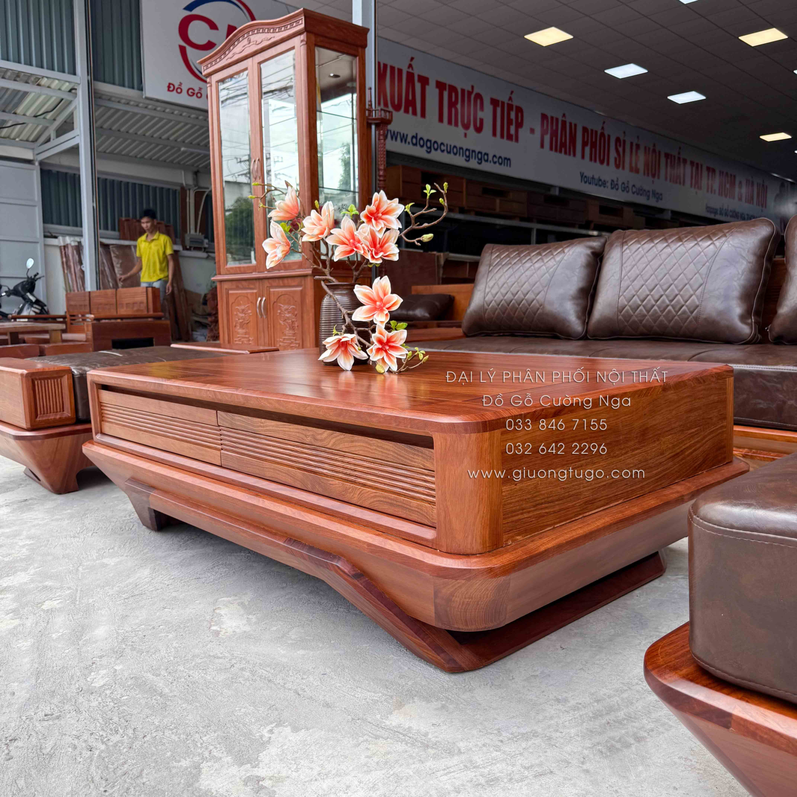 Sofa Gỗ Hương Vàng Góc L Chân Thuyền 3m25 x 2m15 Cao Cấp