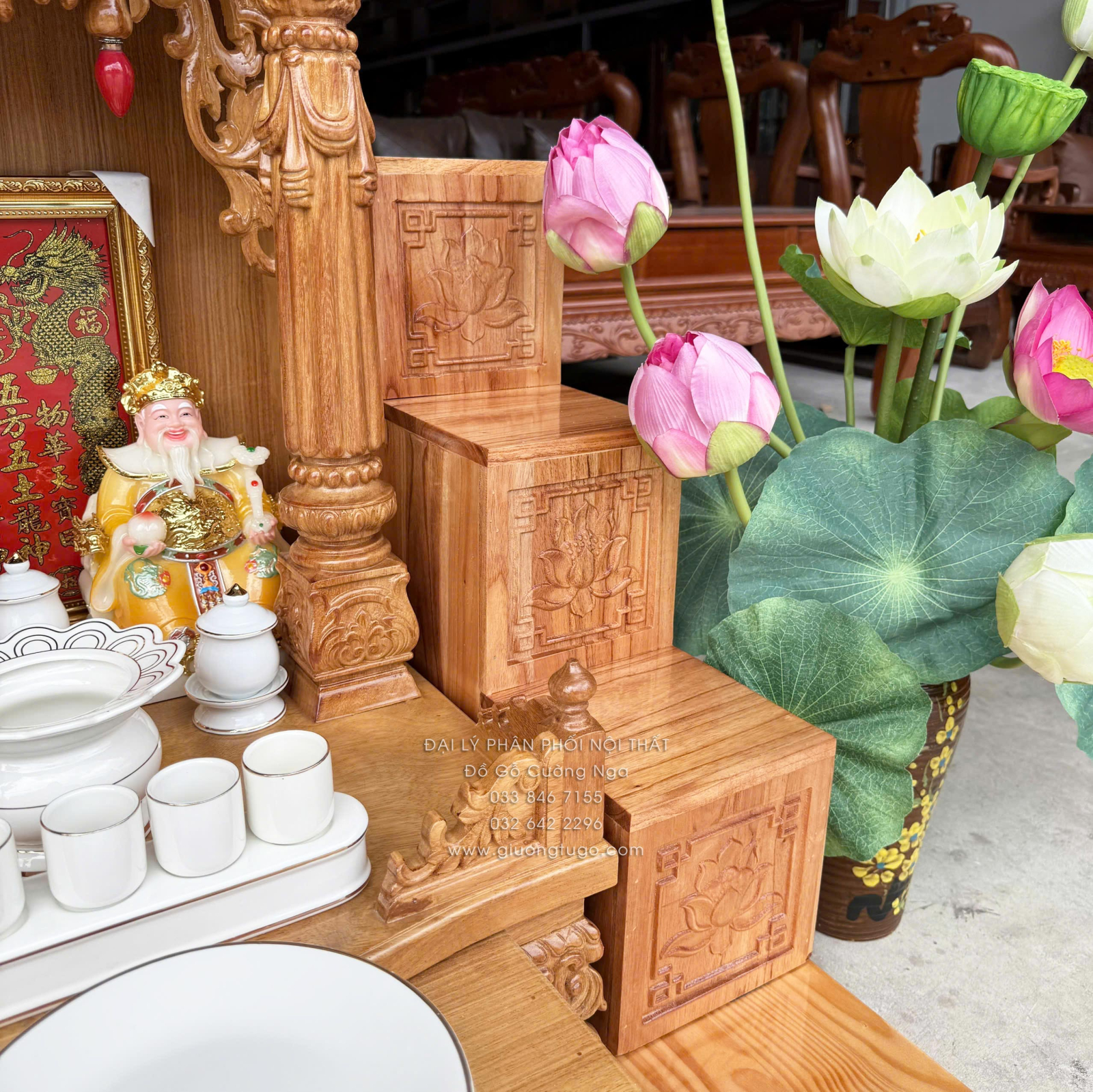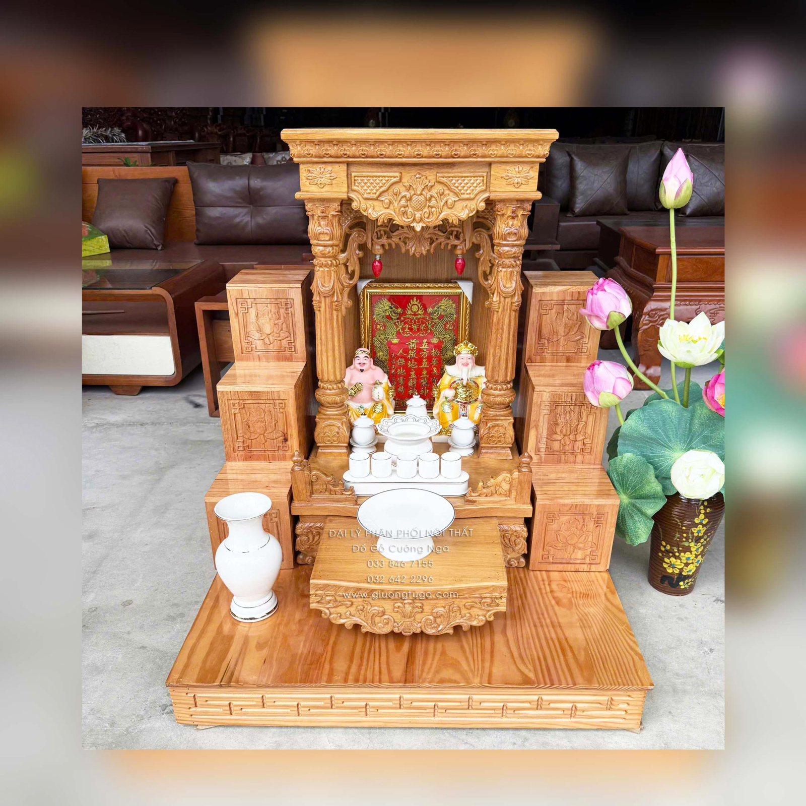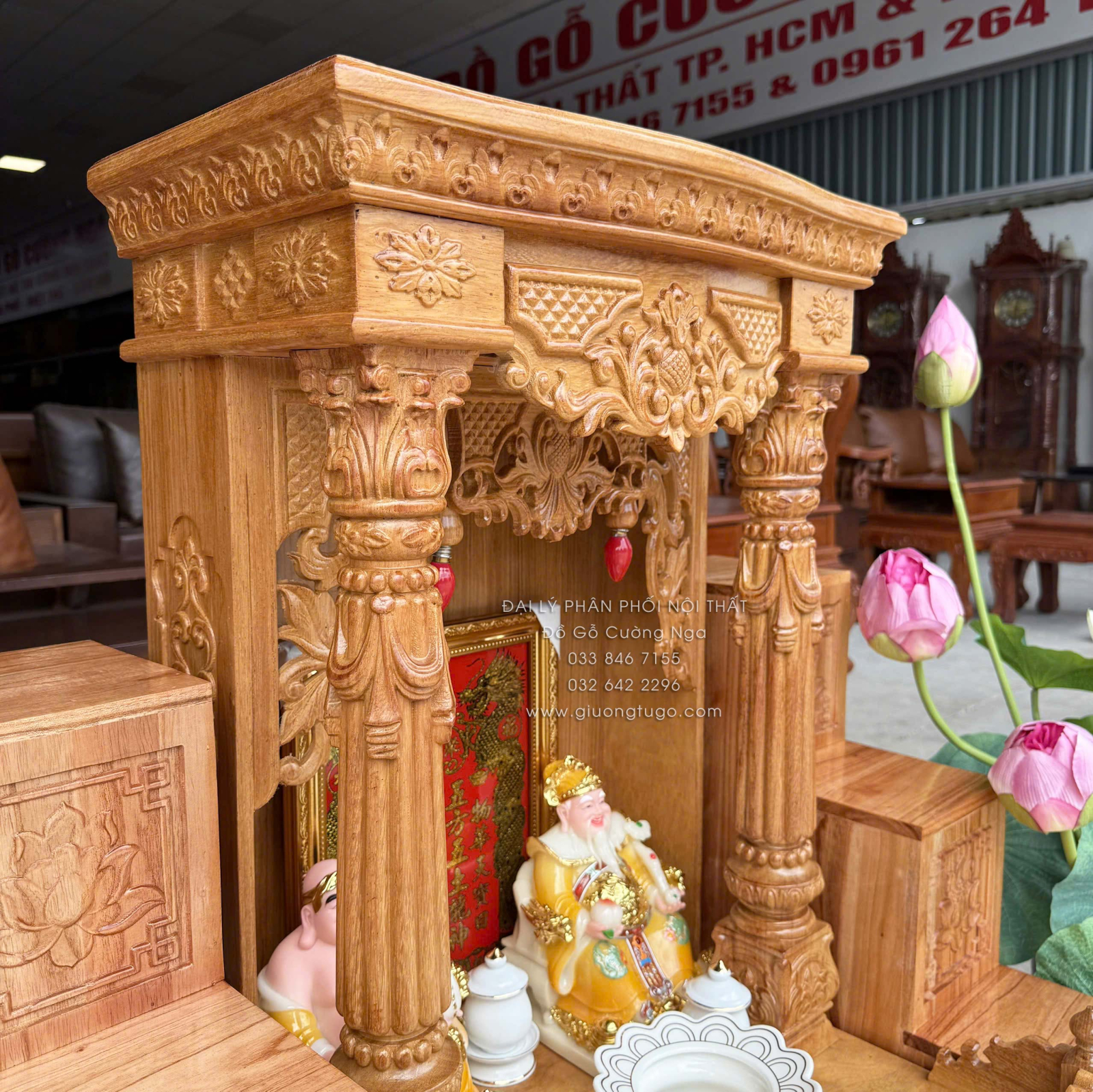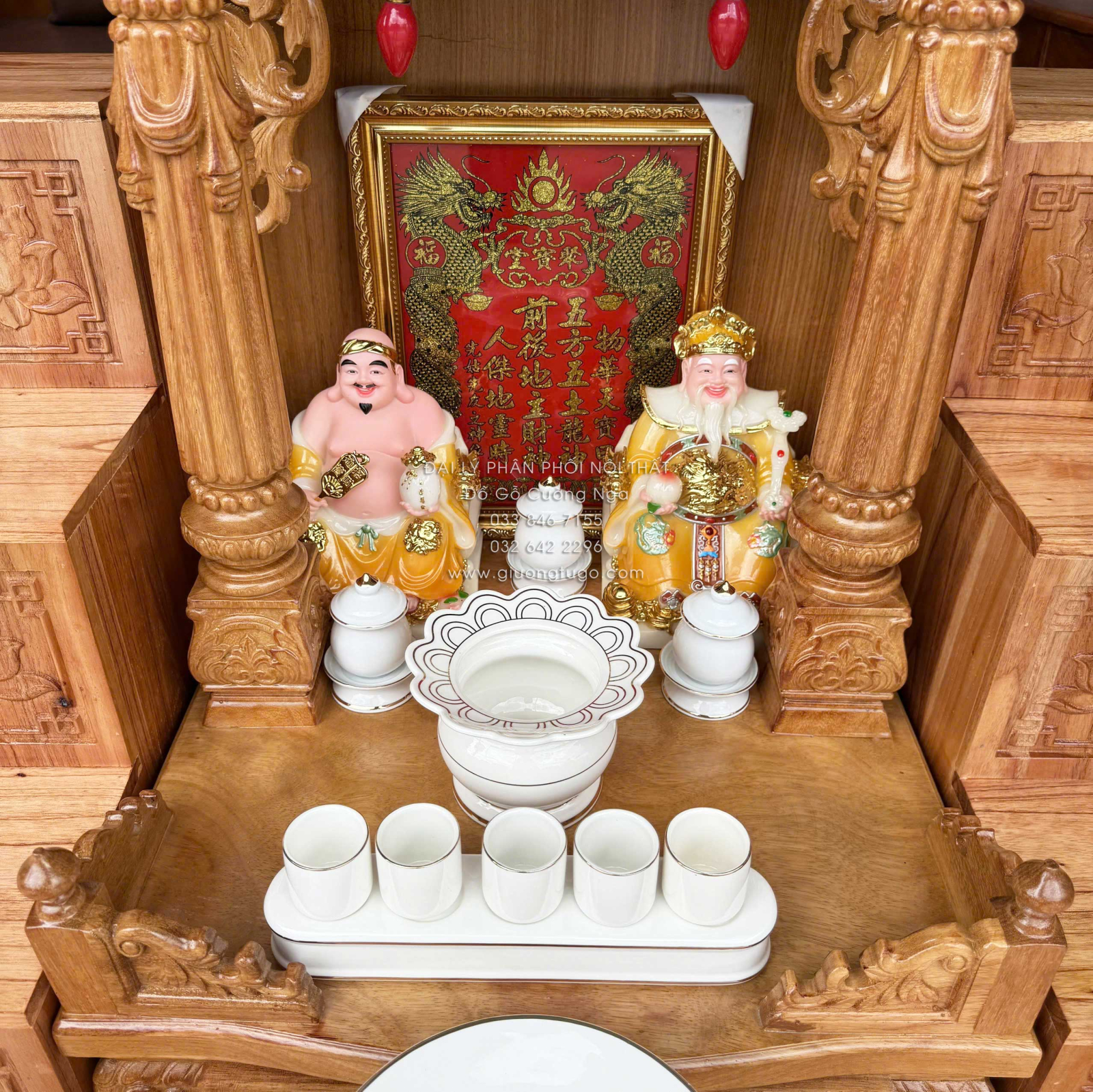Trọn Bộ Bàn Thờ Ông Địa - Thần Tài Gỗ Gõ Đỏ Tân Cổ Điển 6 Món