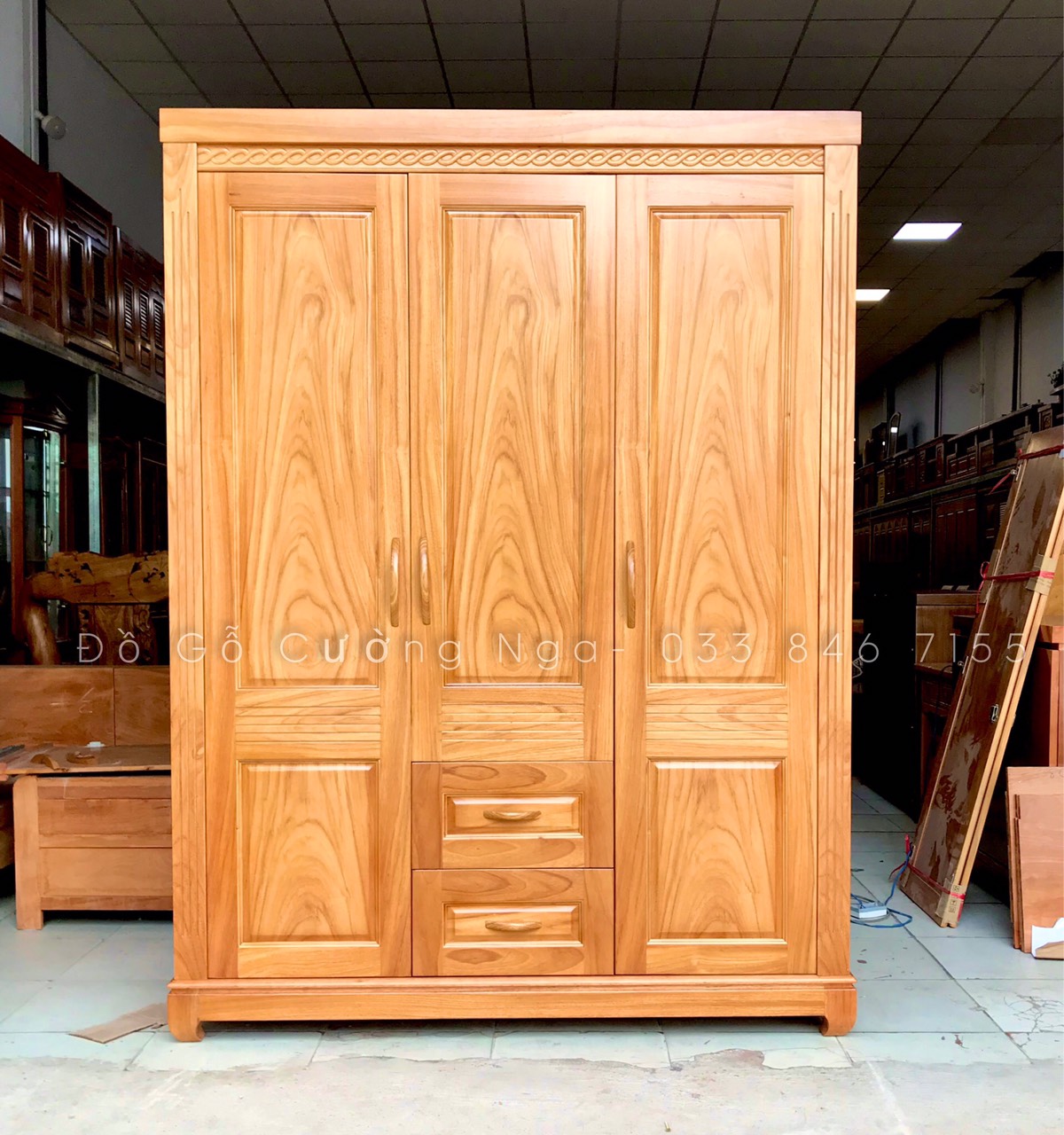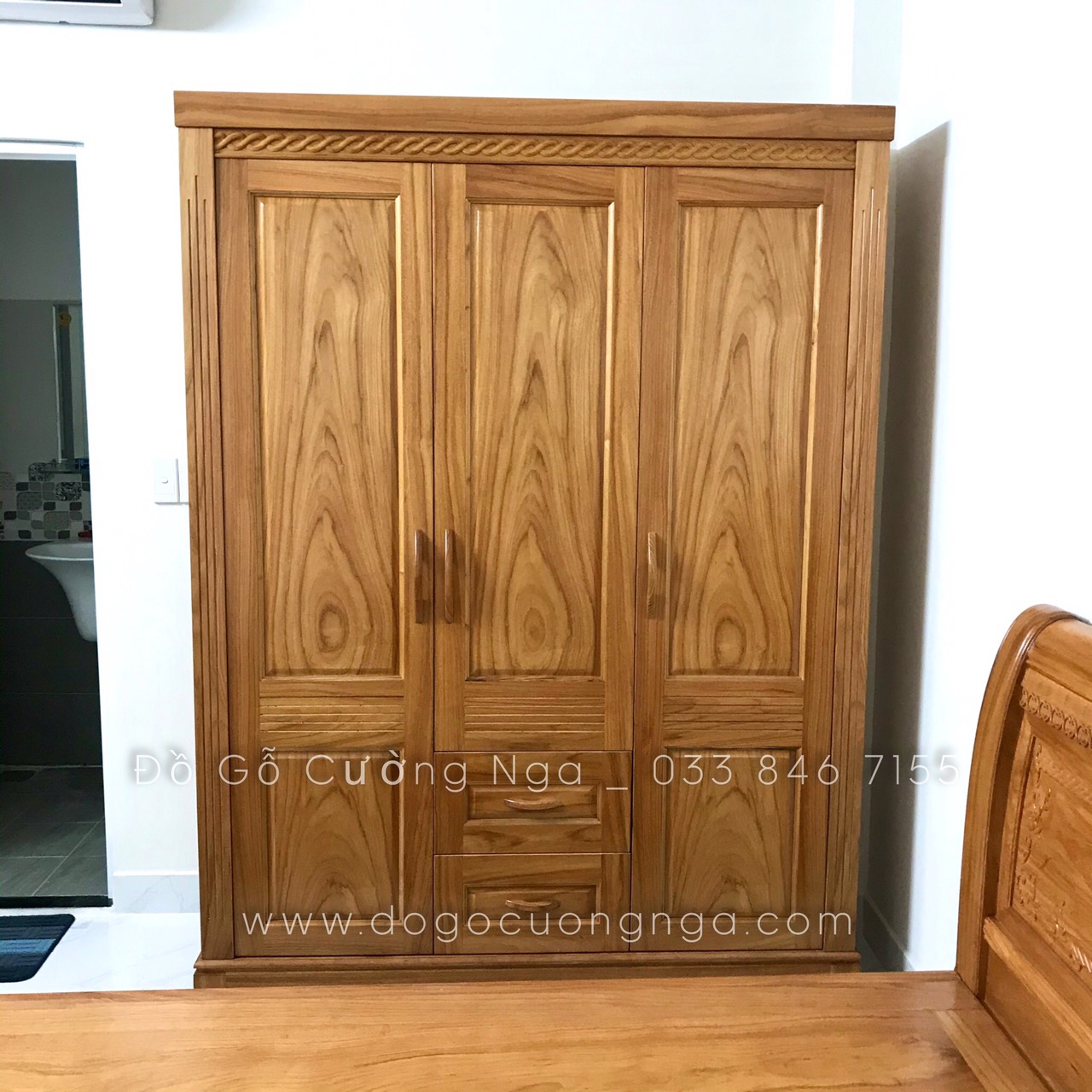 Tủ quần áo gỗ gõ đỏ 3 cánh cao cấp