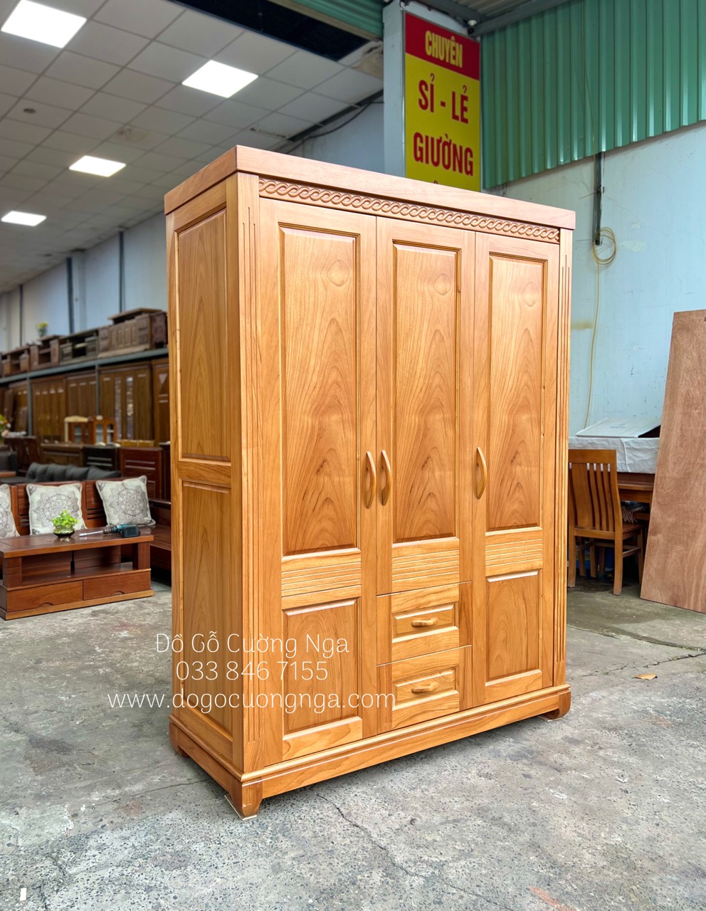 Tủ áo gỗ gõ đỏ 3 cánh - 1m6 mẫu hiện đại