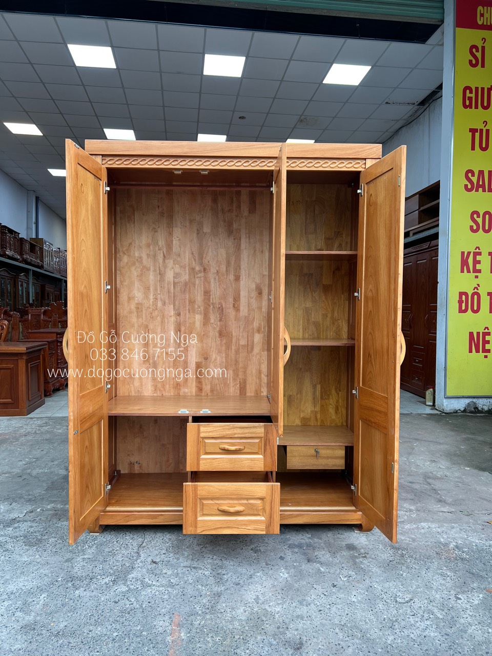 Chi tiết tủ áo gỗ gõ đỏ 3 cánh 1m6