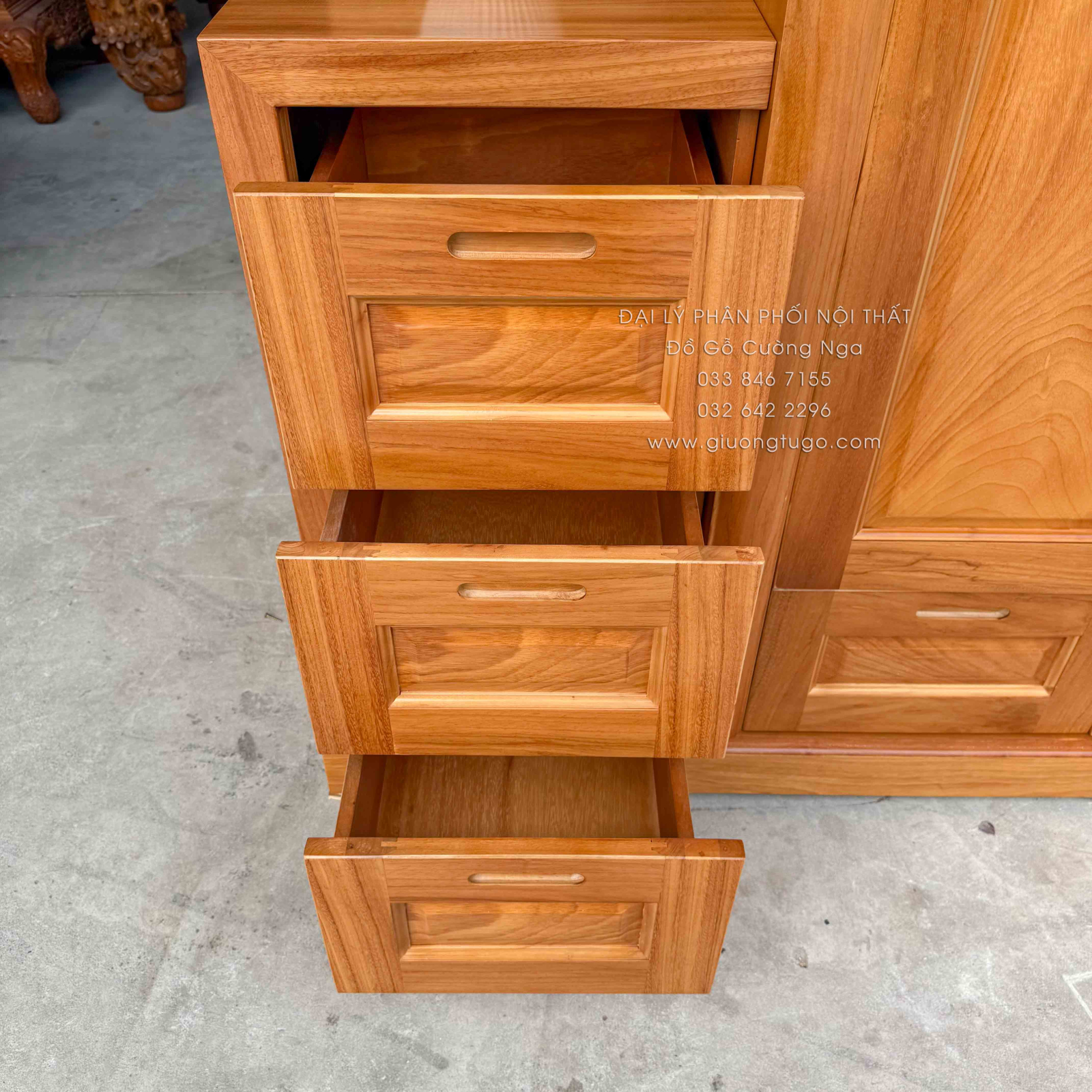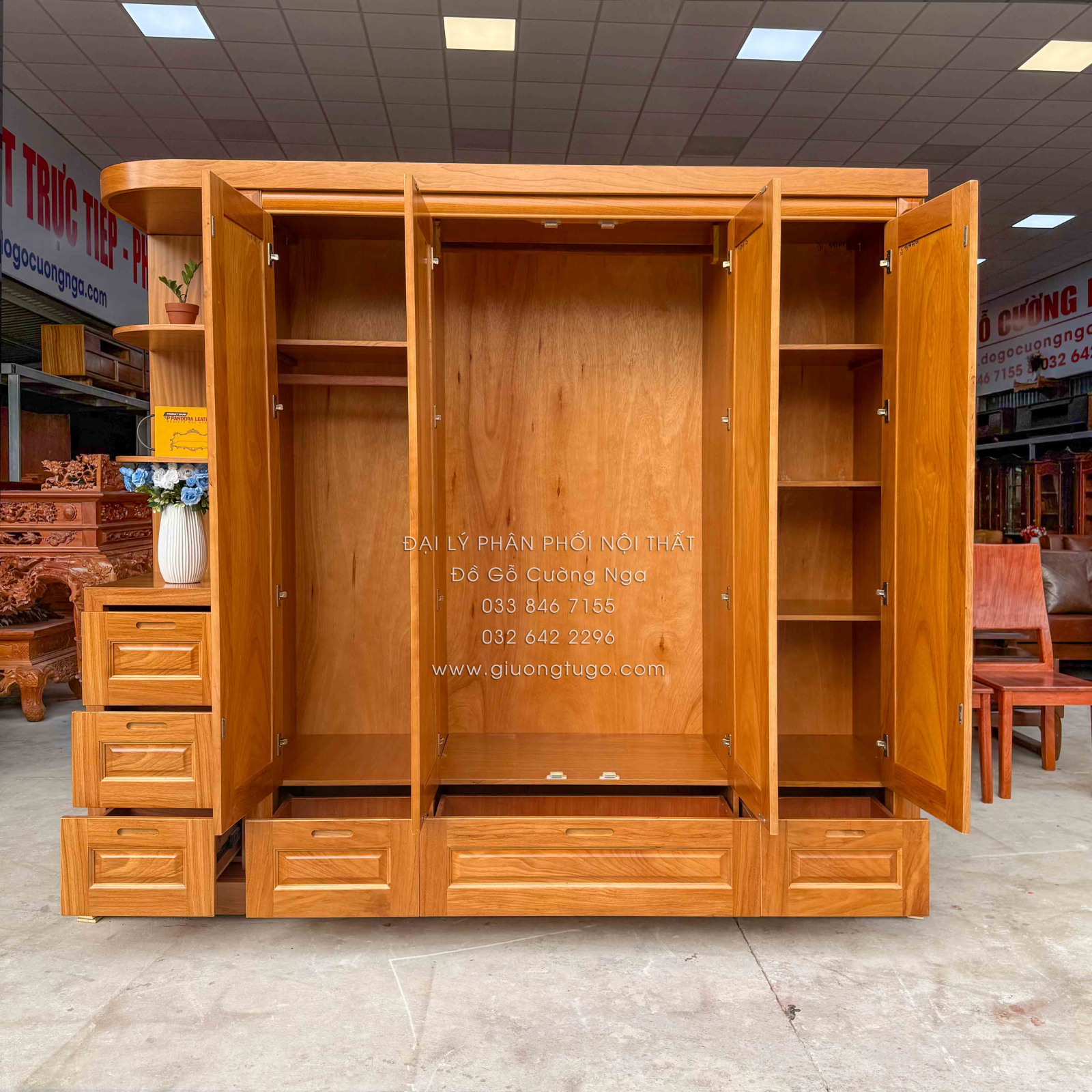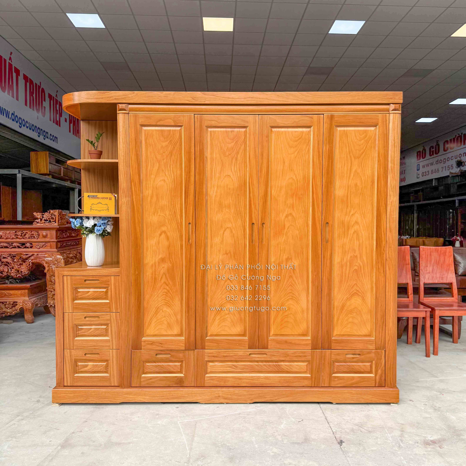 Tủ Áo Gỗ Gõ Đỏ 4 Cánh Kèm Góc Trang Trí Bo Cạnh