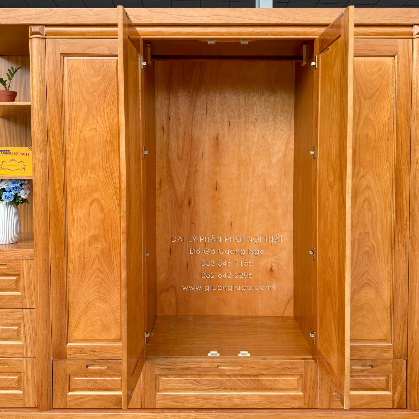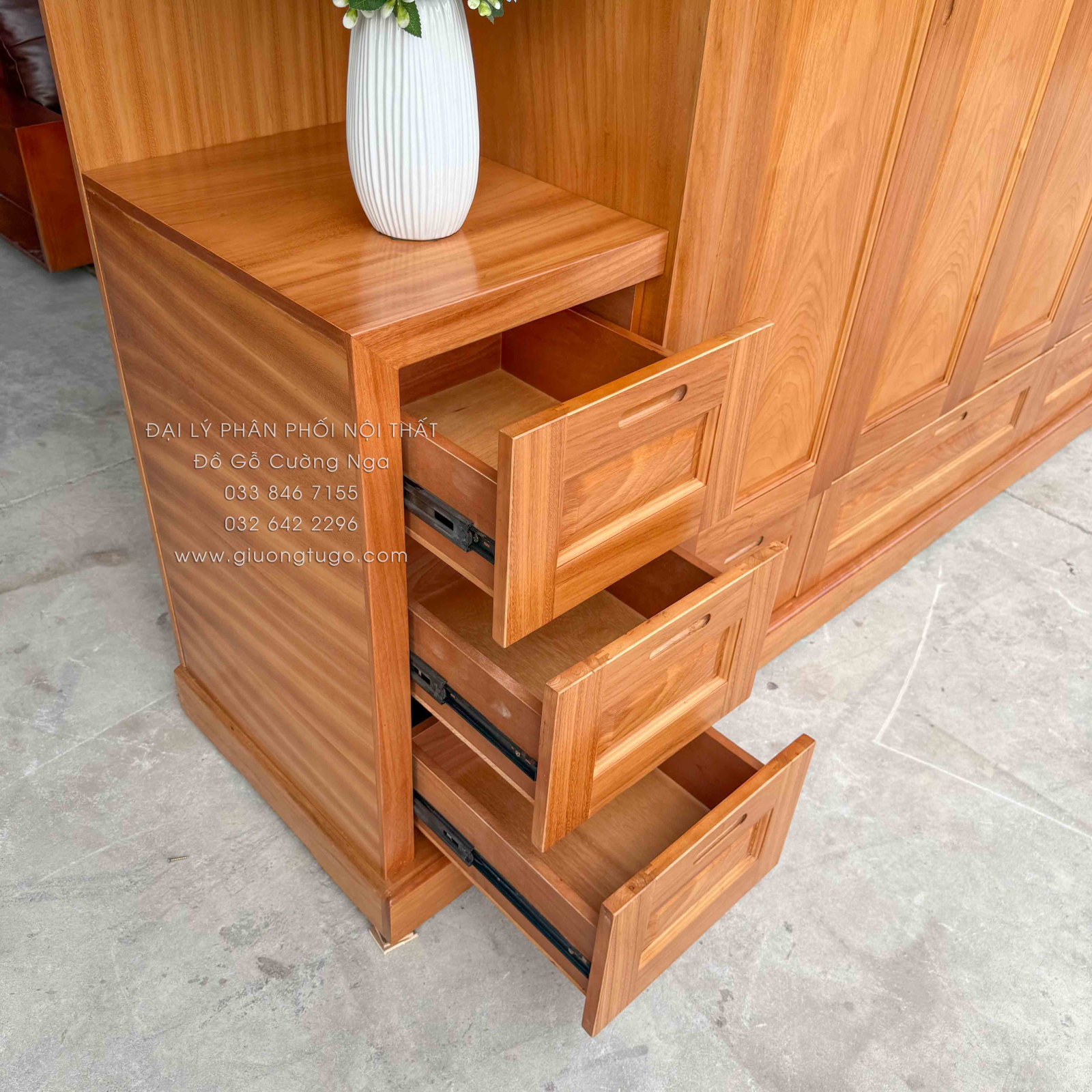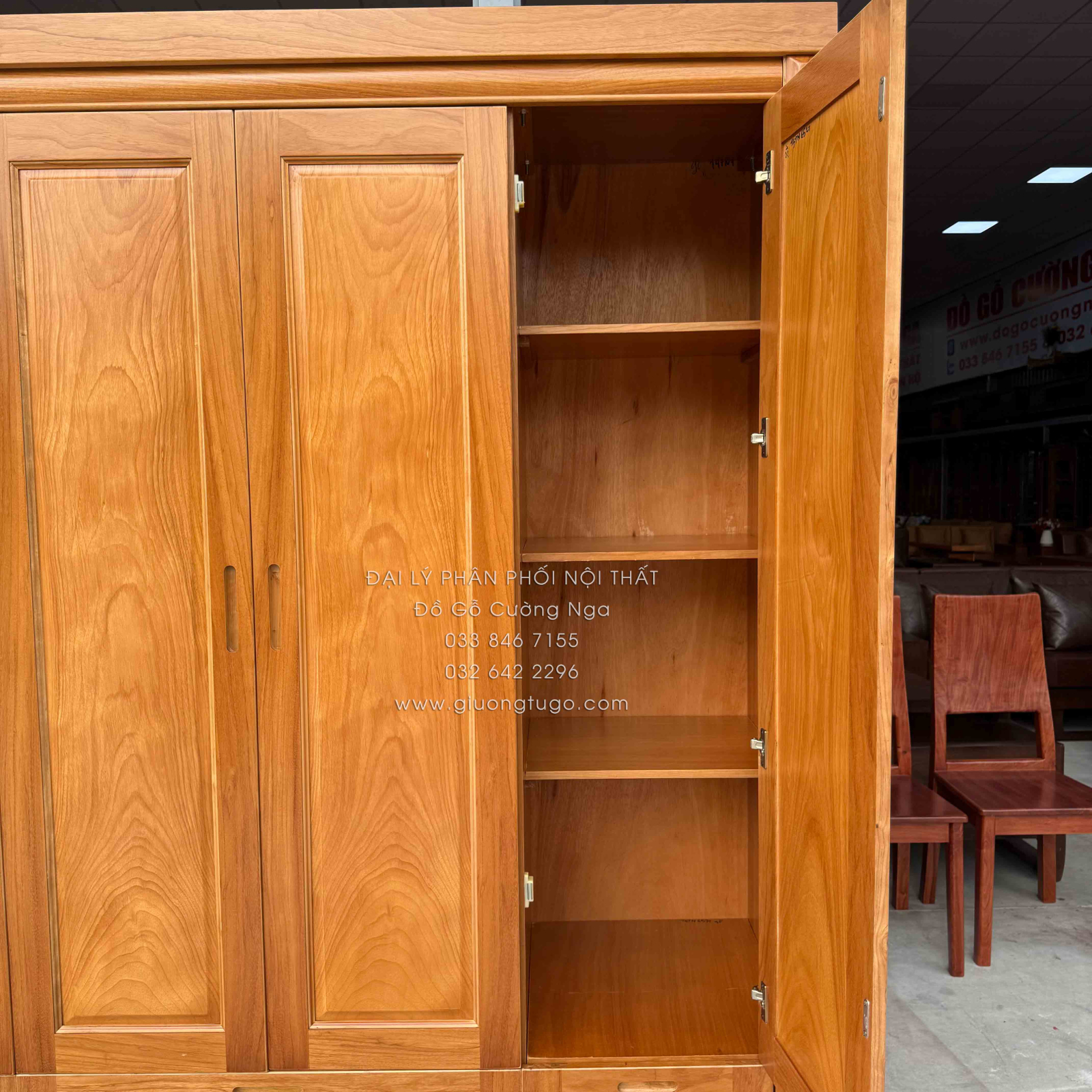 Tủ Áo Gỗ Gõ Đỏ 4 Cánh Kèm Góc Trang Trí Bo Cạnh
