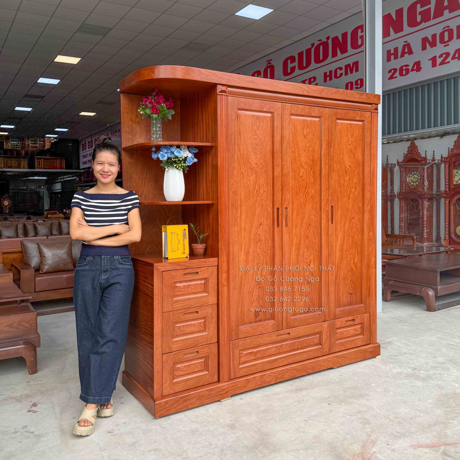 Thông tin chi tiết Tủ Áo Gỗ Hương Đá 3 Cánh Kèm Góc Trang Trí Bo Cạnh