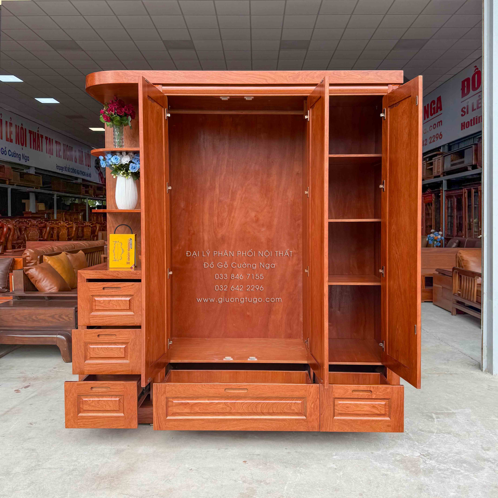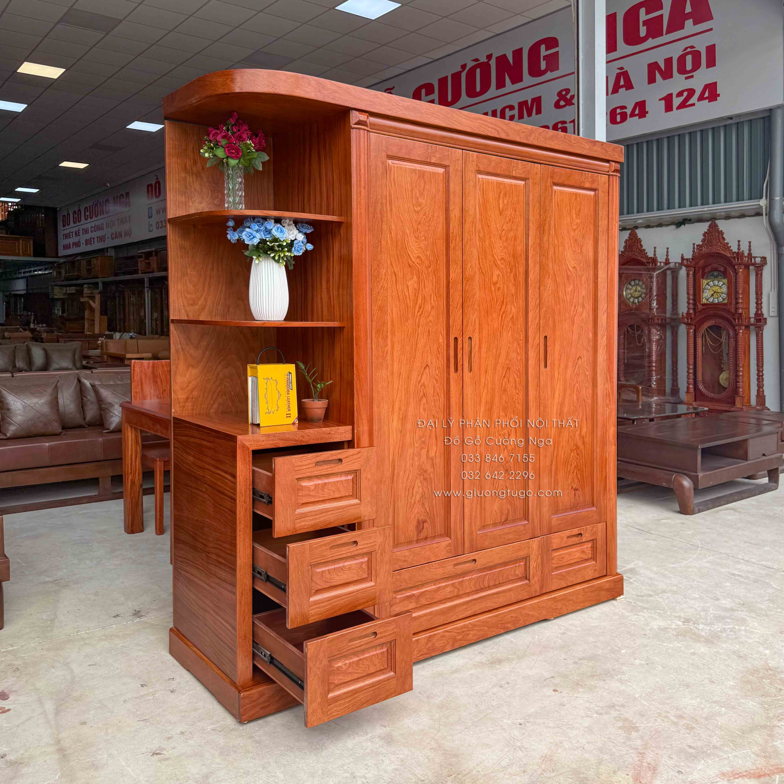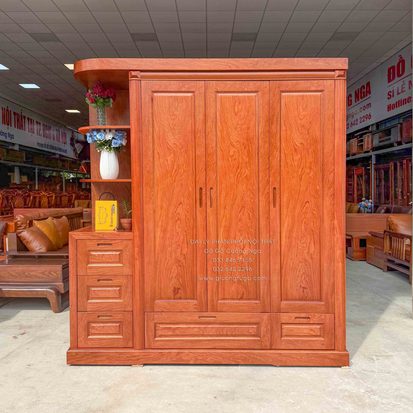 Tủ Áo Gỗ Hương Đá 3 Cánh Kèm Góc Trang Trí Bo Cạnh