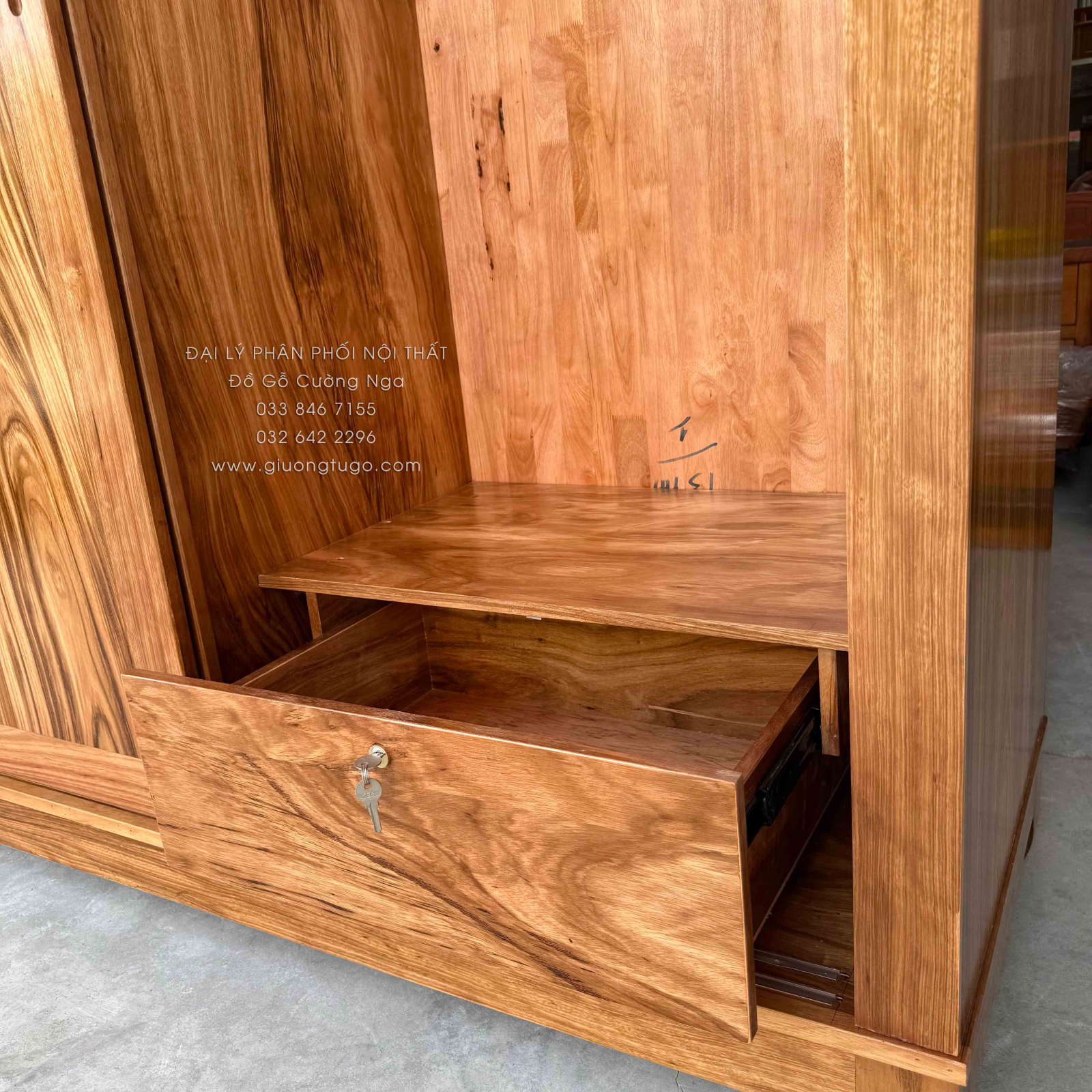Tủ Áo Gỗ Hương Xám 2 Cánh Cửa Lùa Hiện Đại
