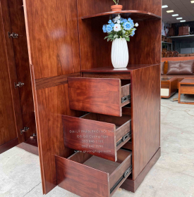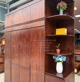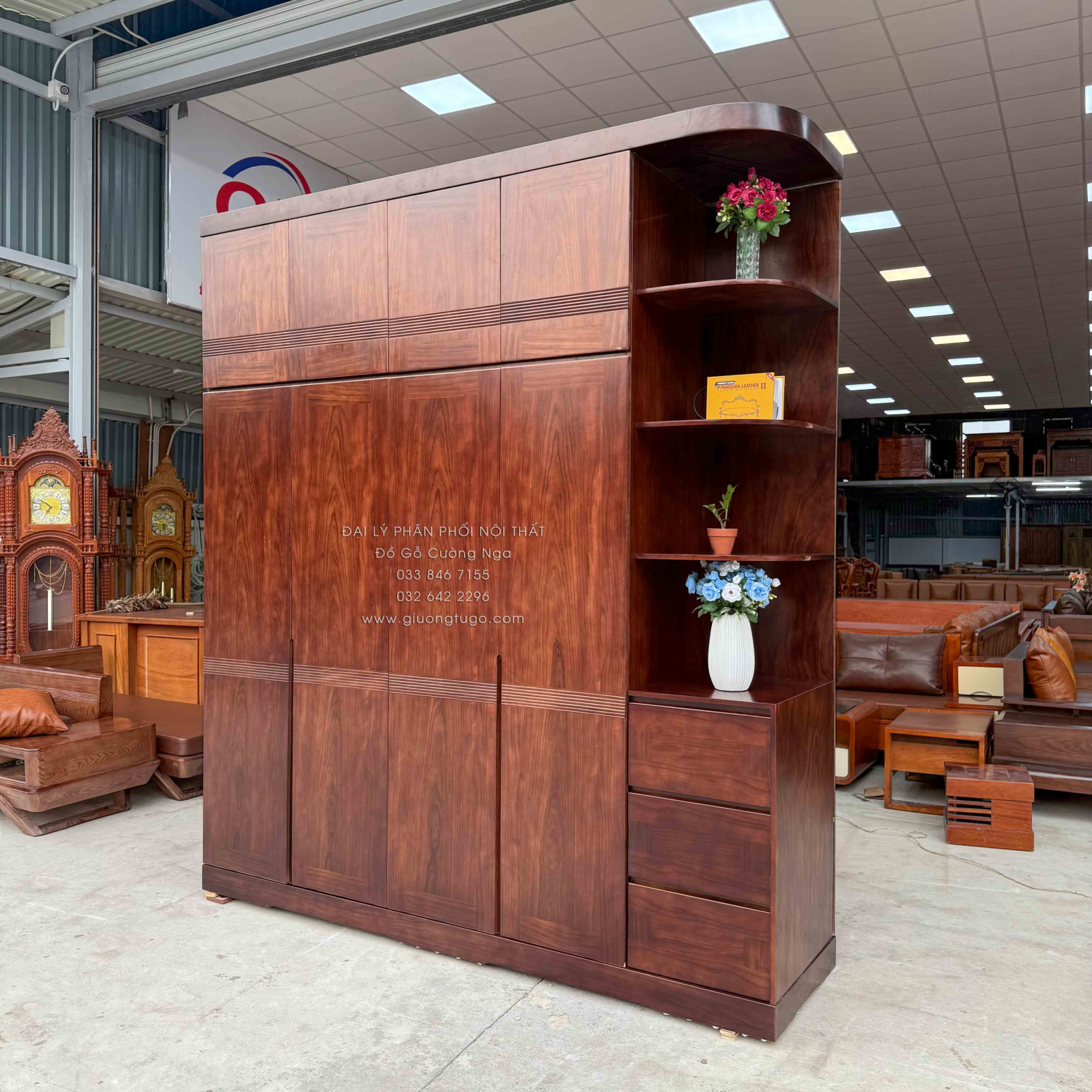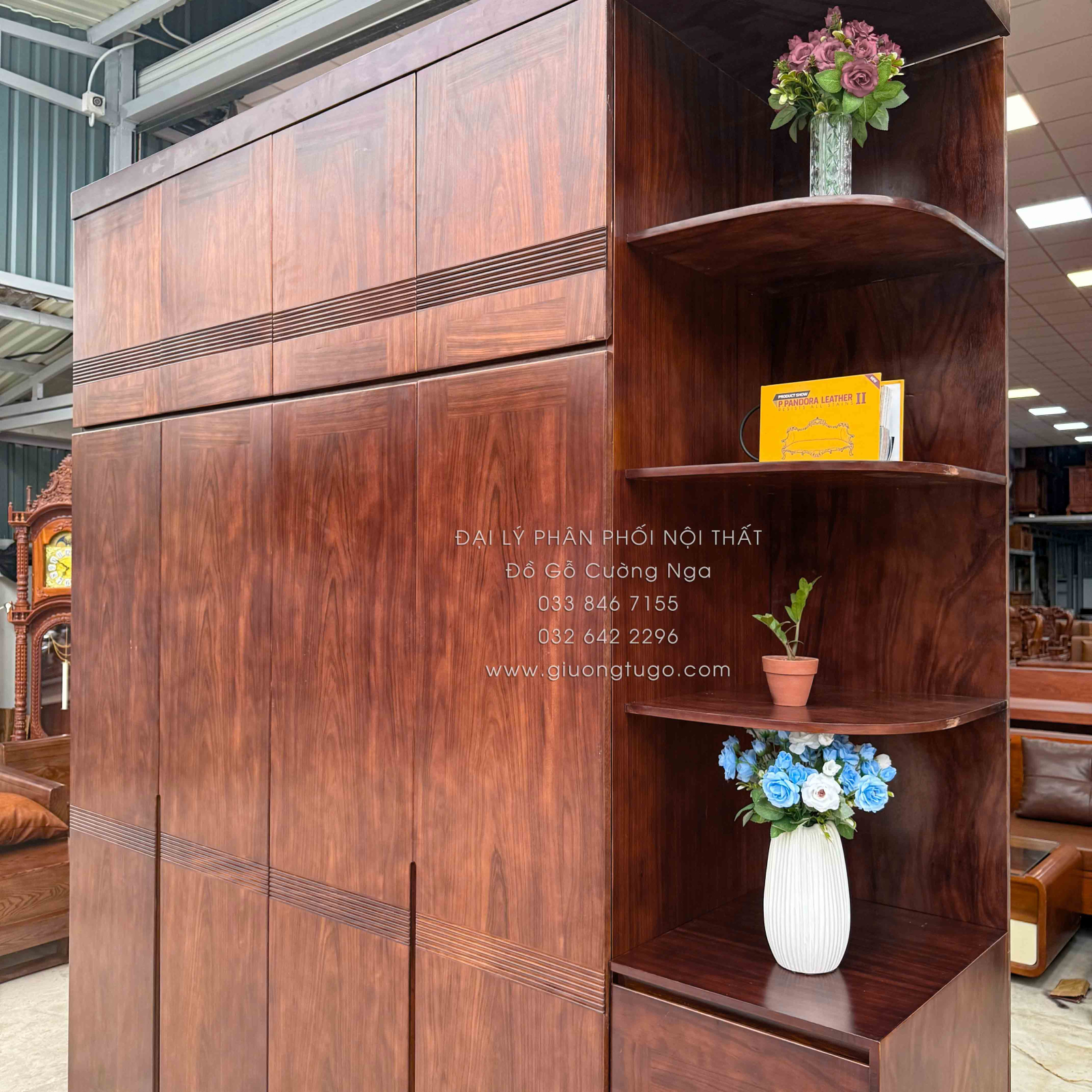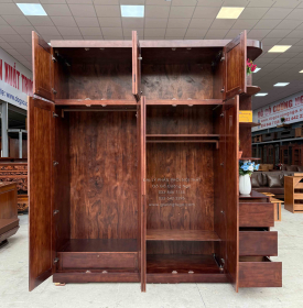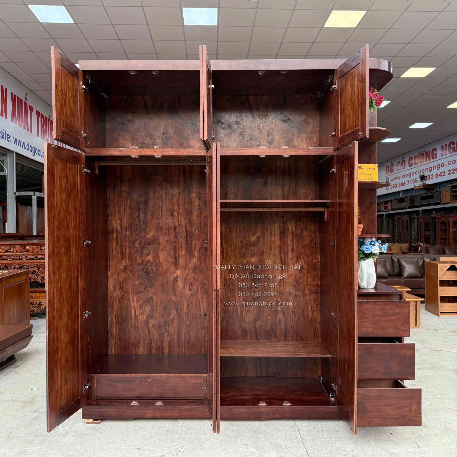 Tủ Áo Gỗ Hương Xám Màu Óc Chó 2 Tầng 4 Cánh Cánh Kèm Kệ Góc