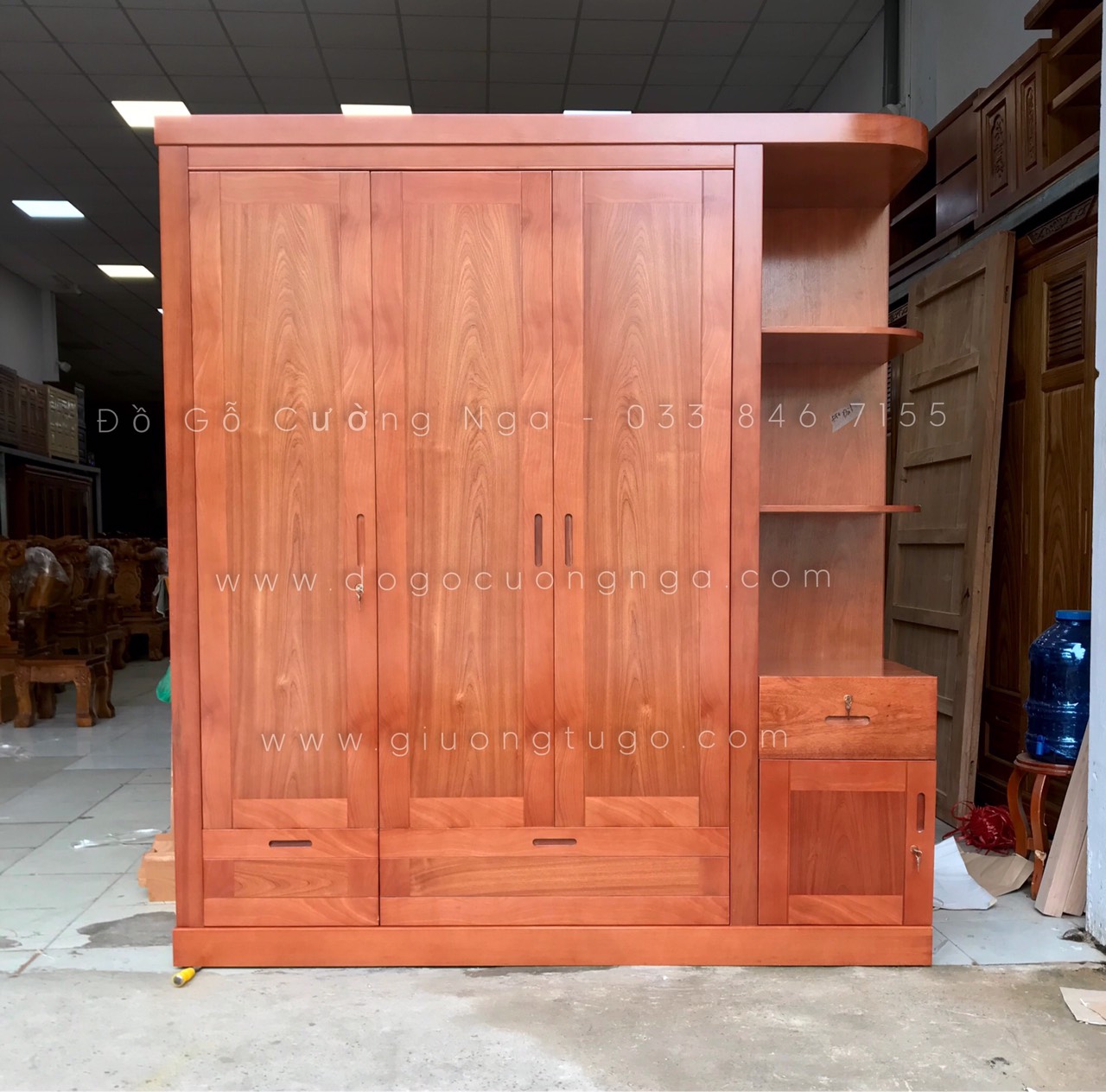 Tủ quần áo gỗ xoan đào 3 cánh kèm góc trang trí