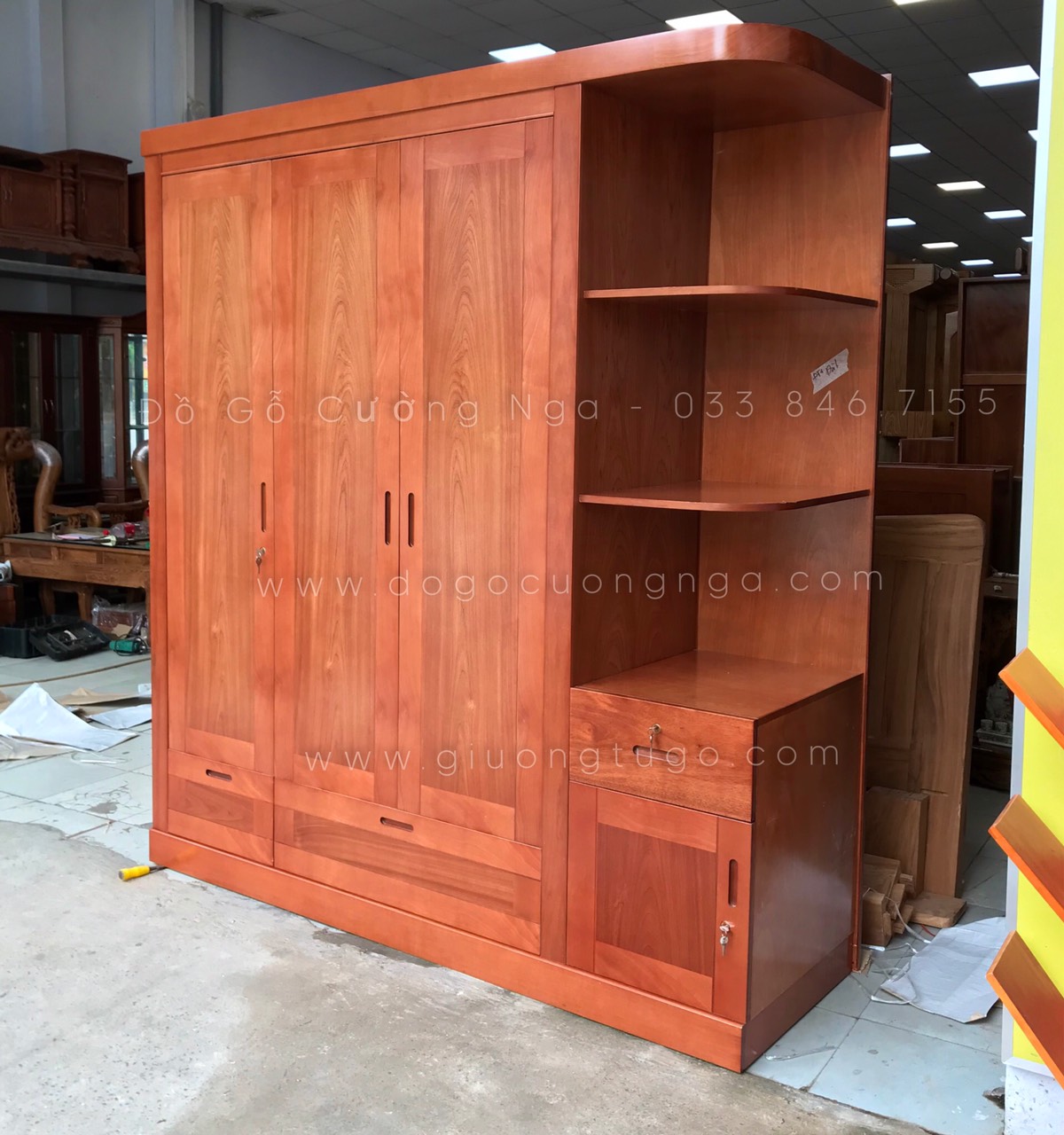 Tủ quần áo gỗ xoan đào 3 cánh kèm kệ trang trí - vế phải