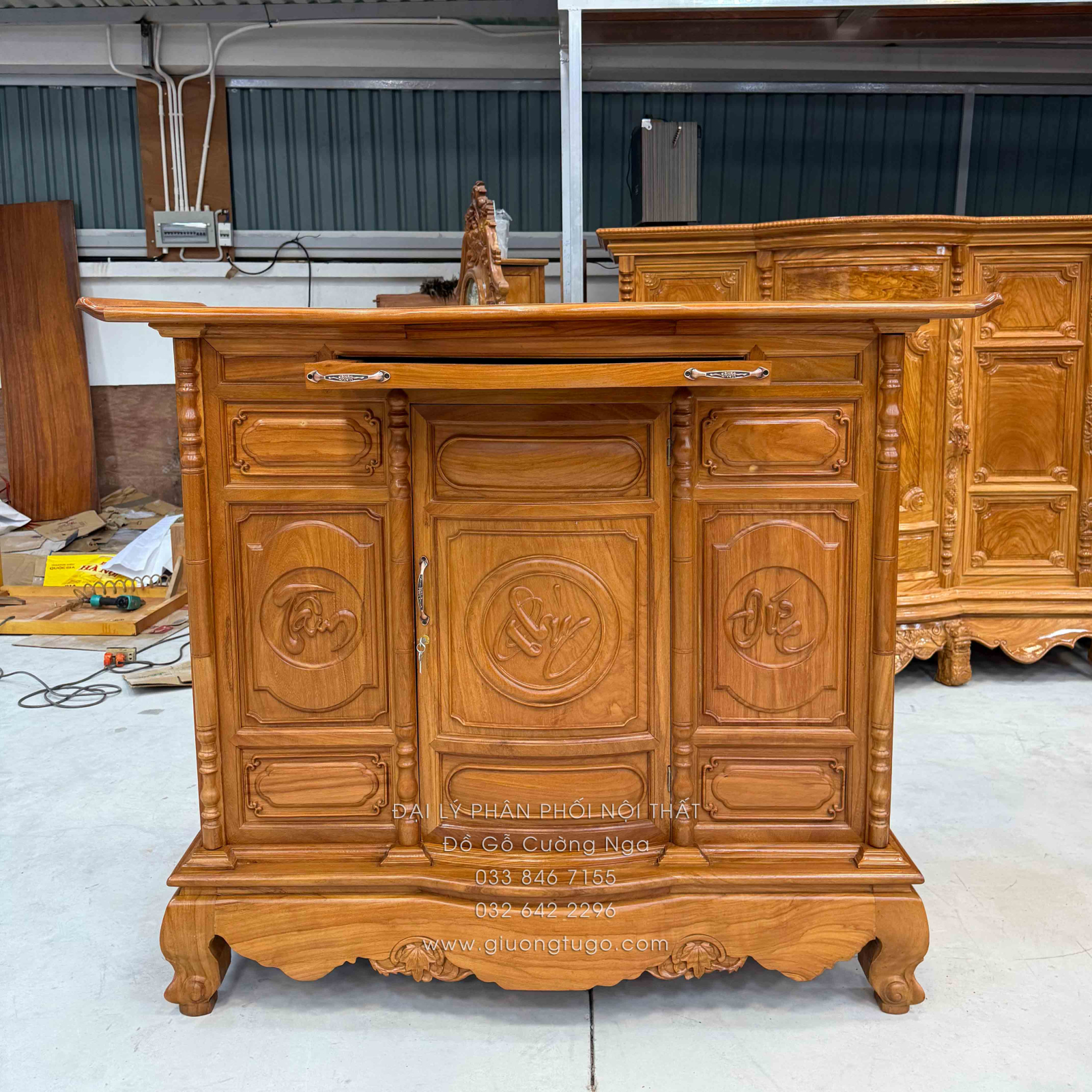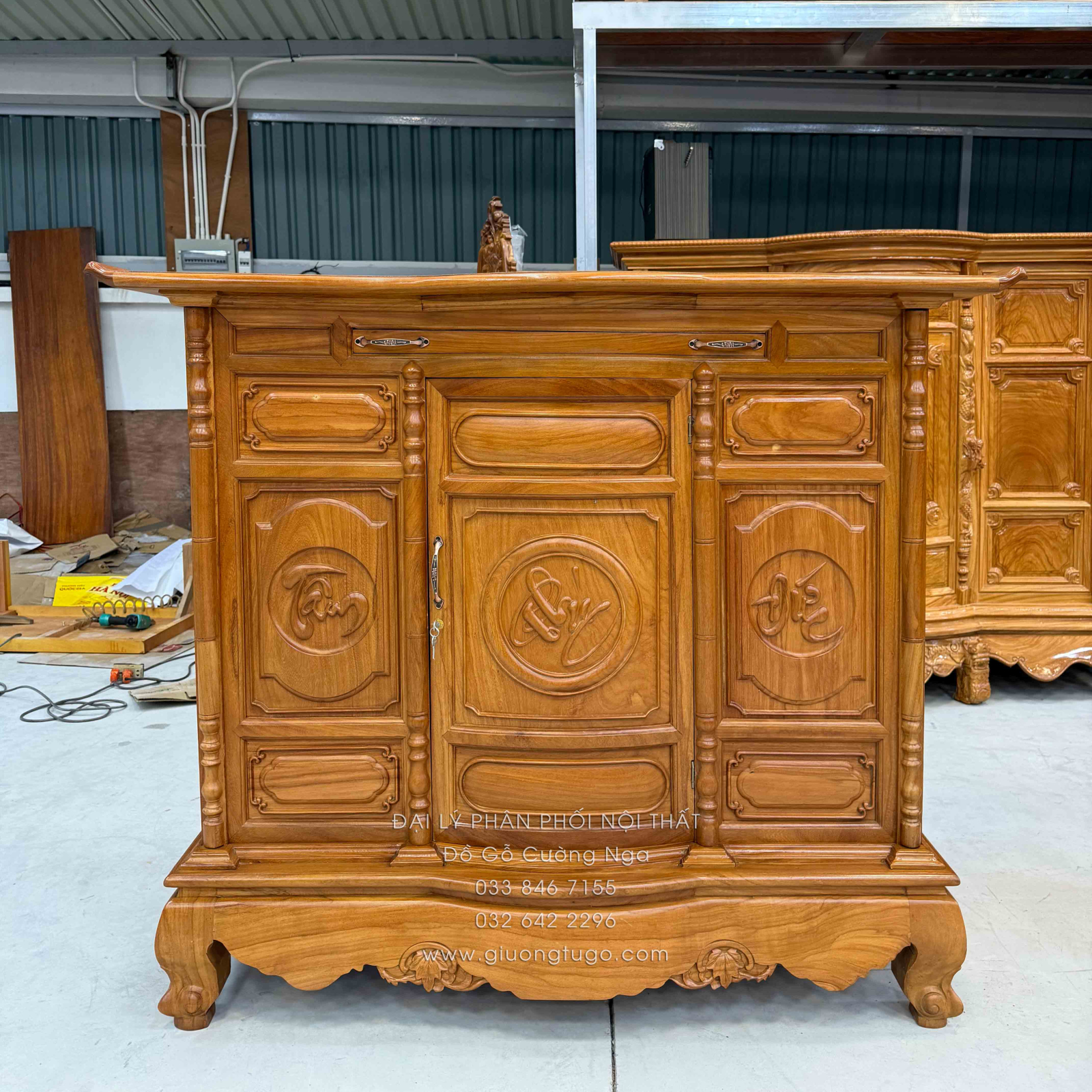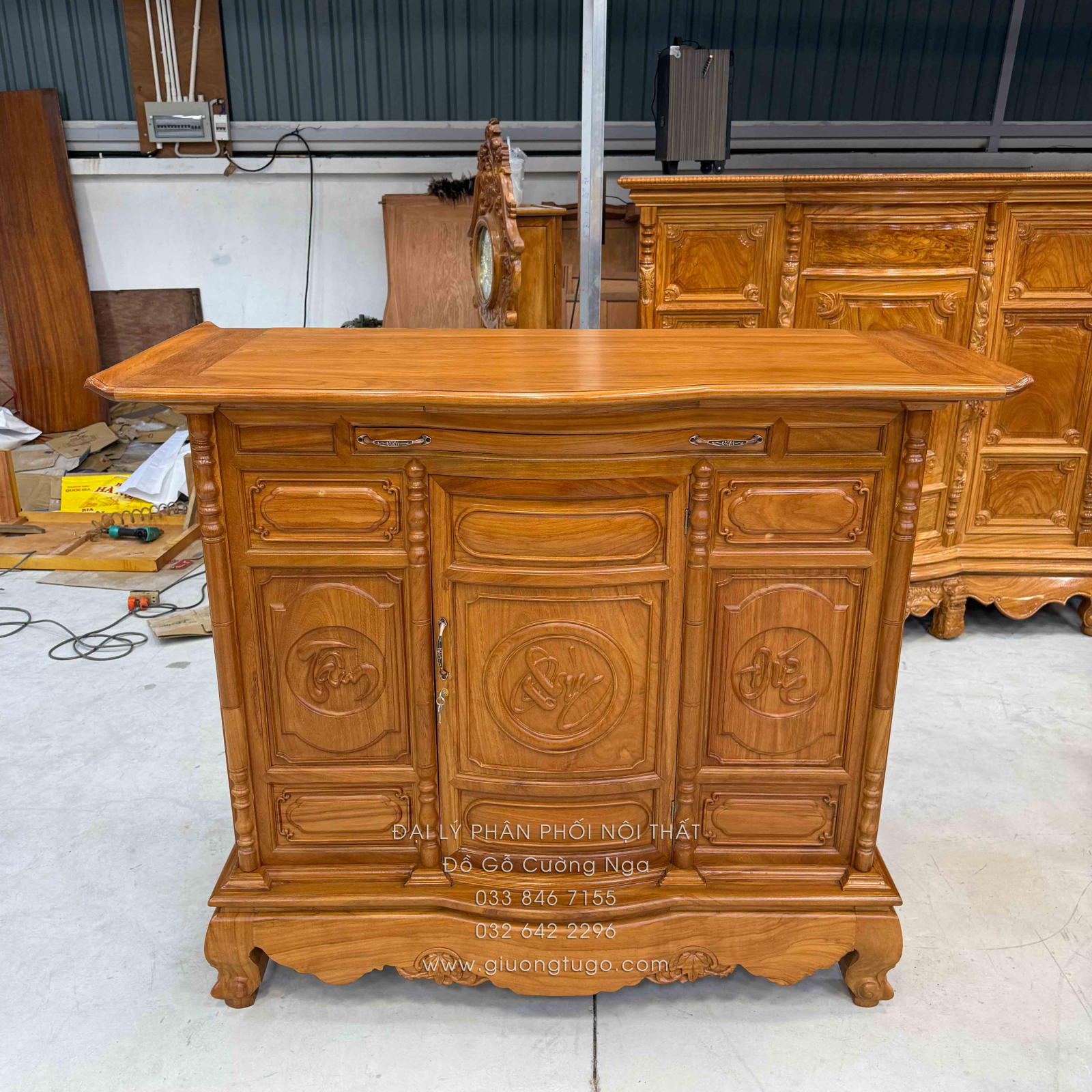 Bàn Thờ Gia Tiên Gỗ Xoan Đào Hiện Đại 1m27 Thiết Kế Trạm Sen Kèm Tủ Cơm
