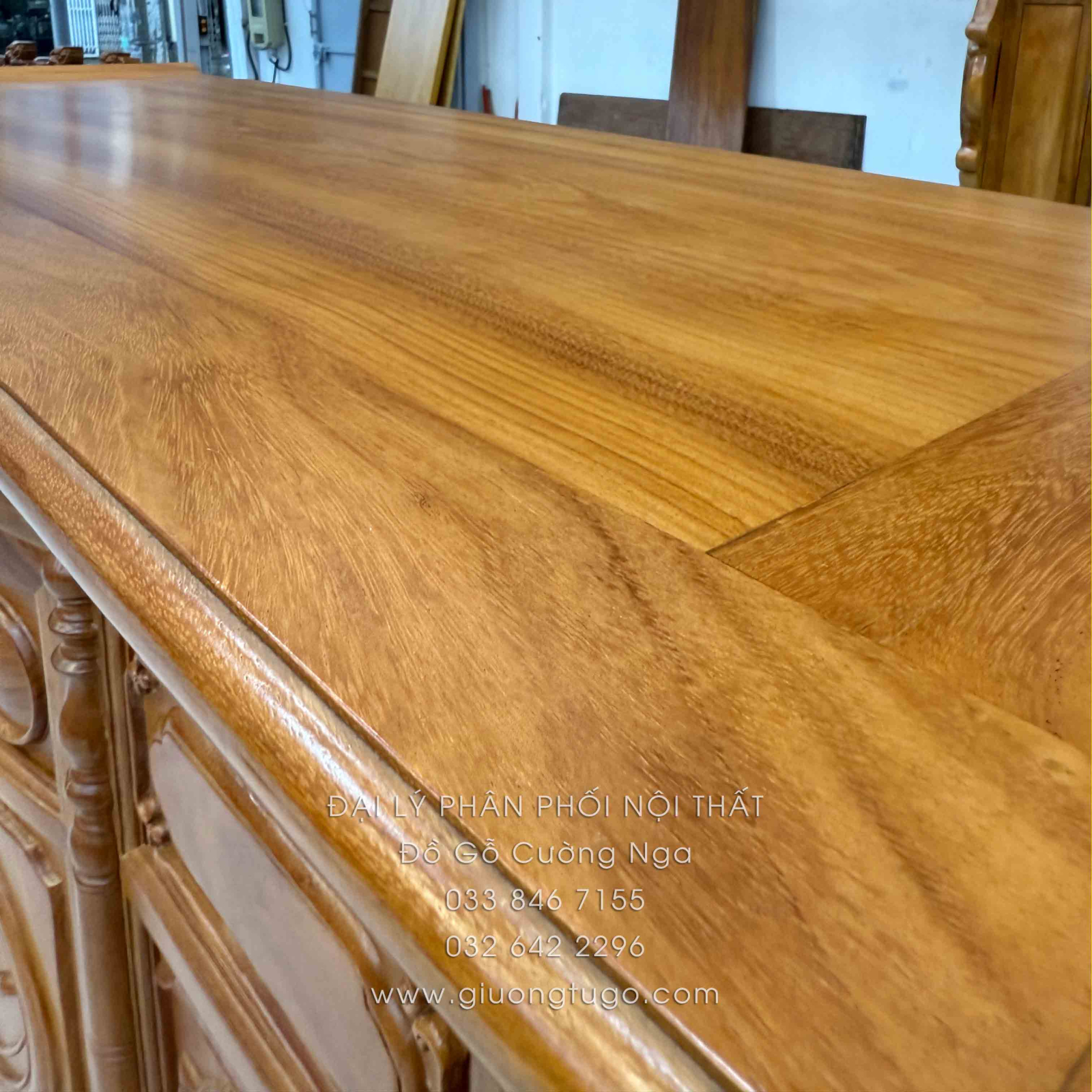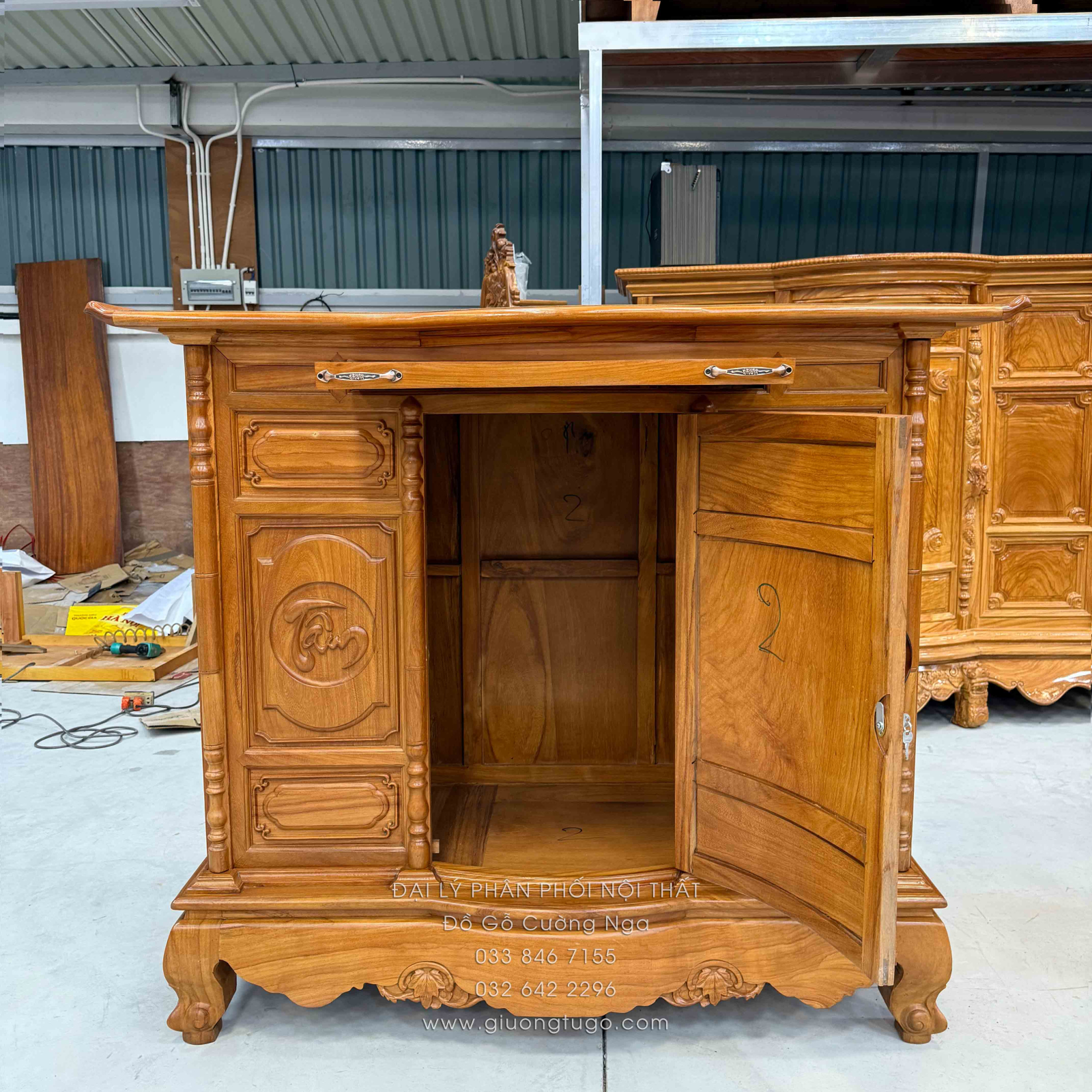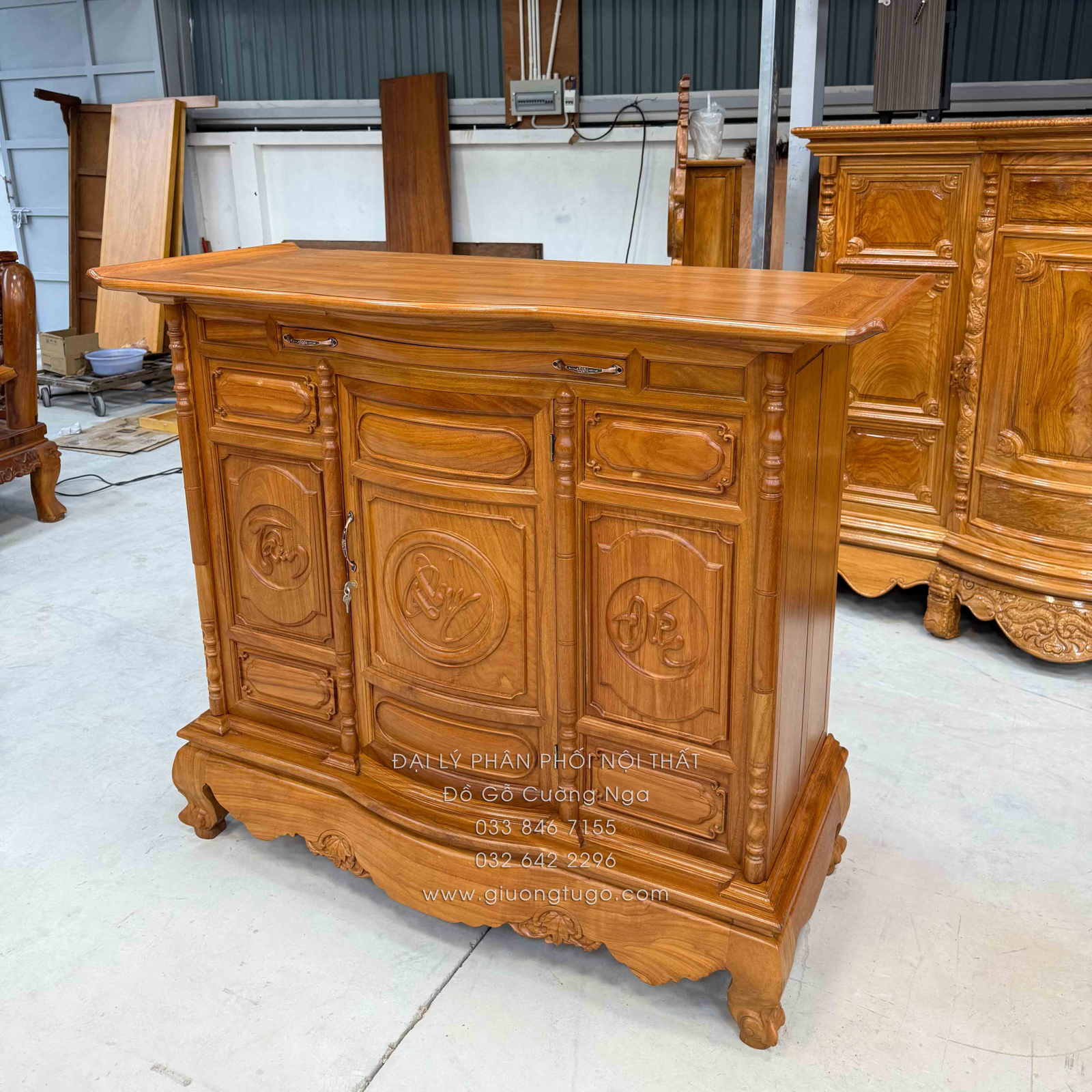 Bàn Thờ Gia Tiên Gỗ Xoan Đào Hiện Đại 1m27 Thiết Kế Trạm Sen Kèm Tủ Cơm